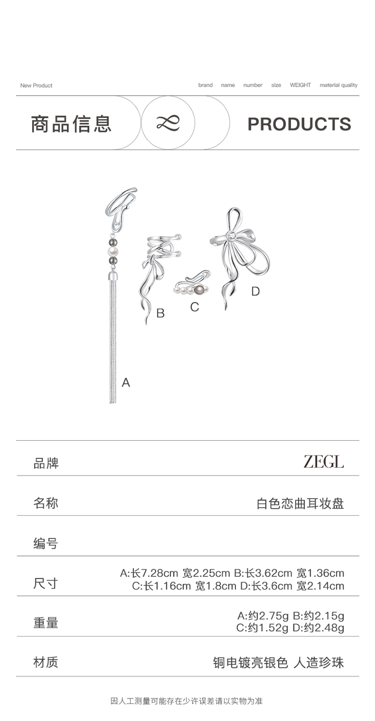 ZEGL设计师白色恋曲耳妆盘耳环女小众设计感高级2023年新款耳饰品