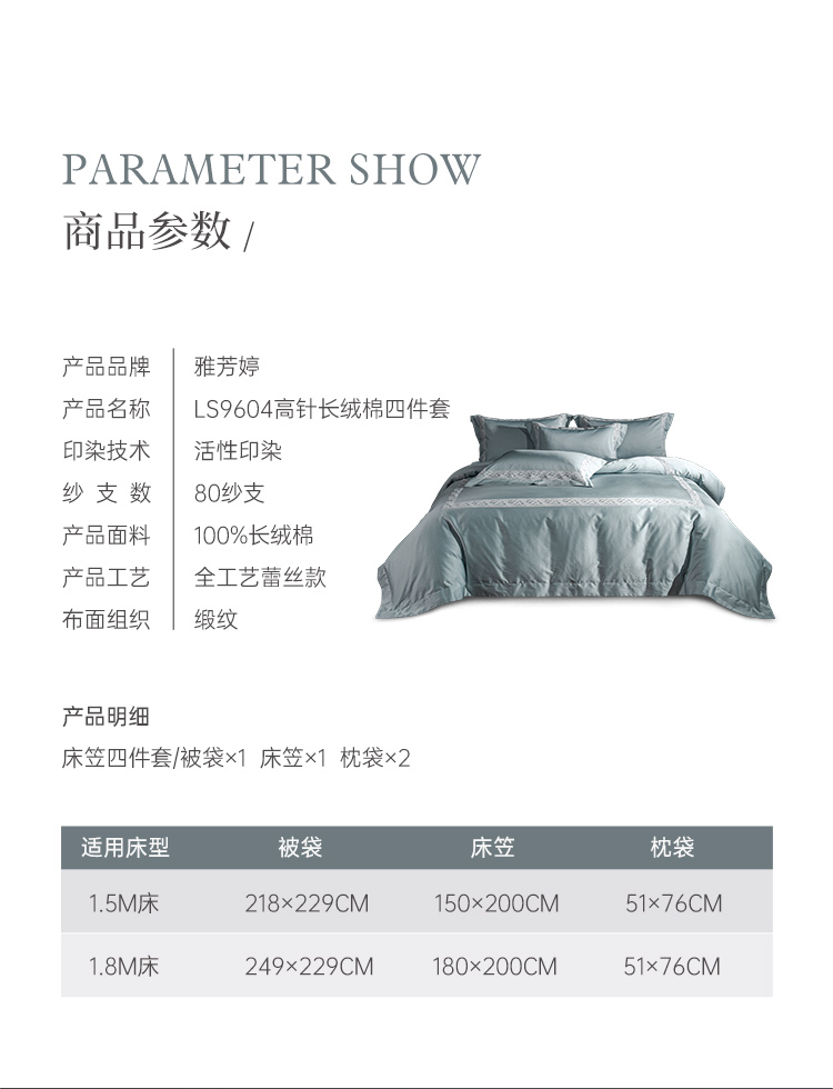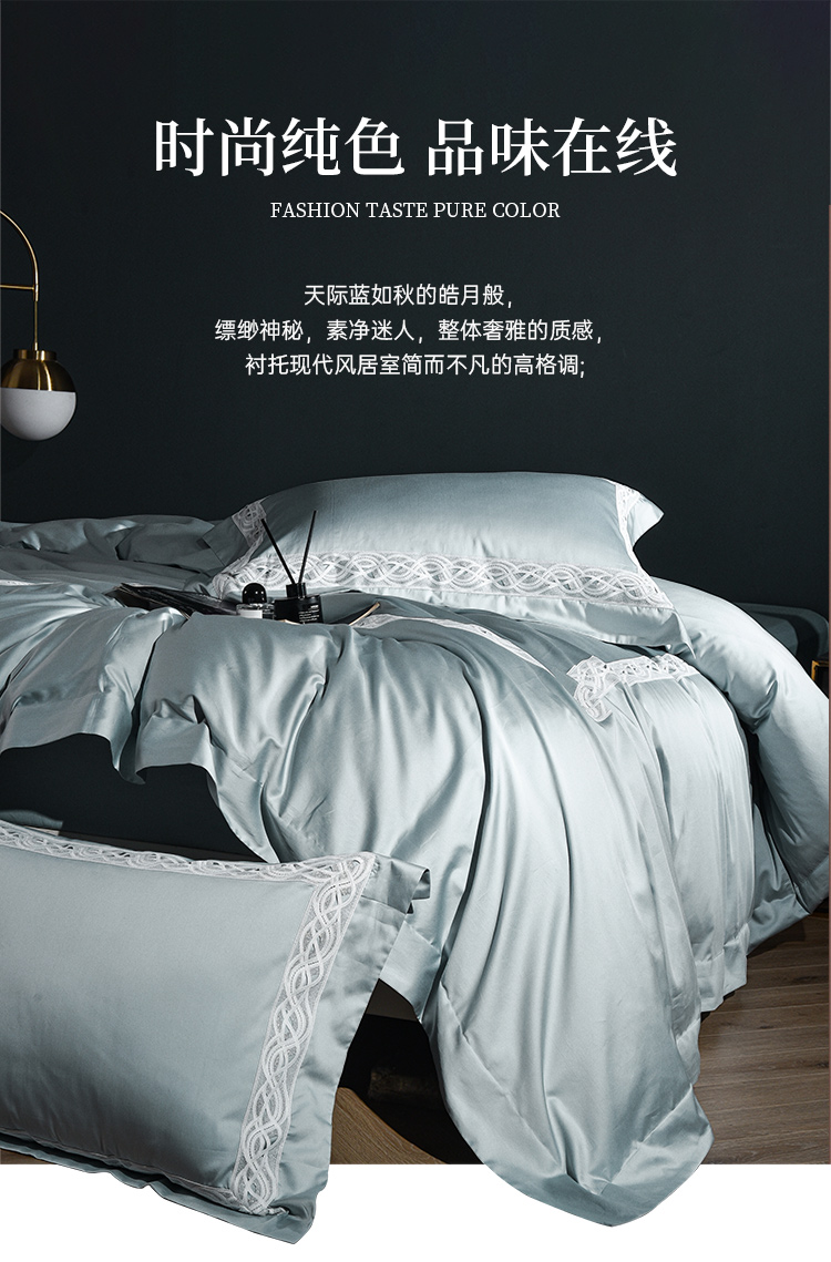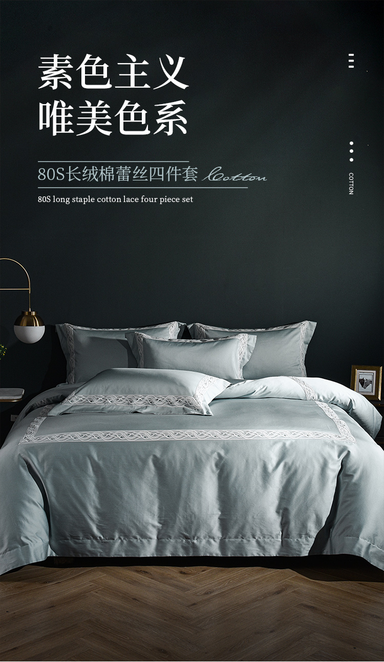 雅芳婷床笠四件套80S纯色新疆长绒棉轻奢全棉套件床上用品