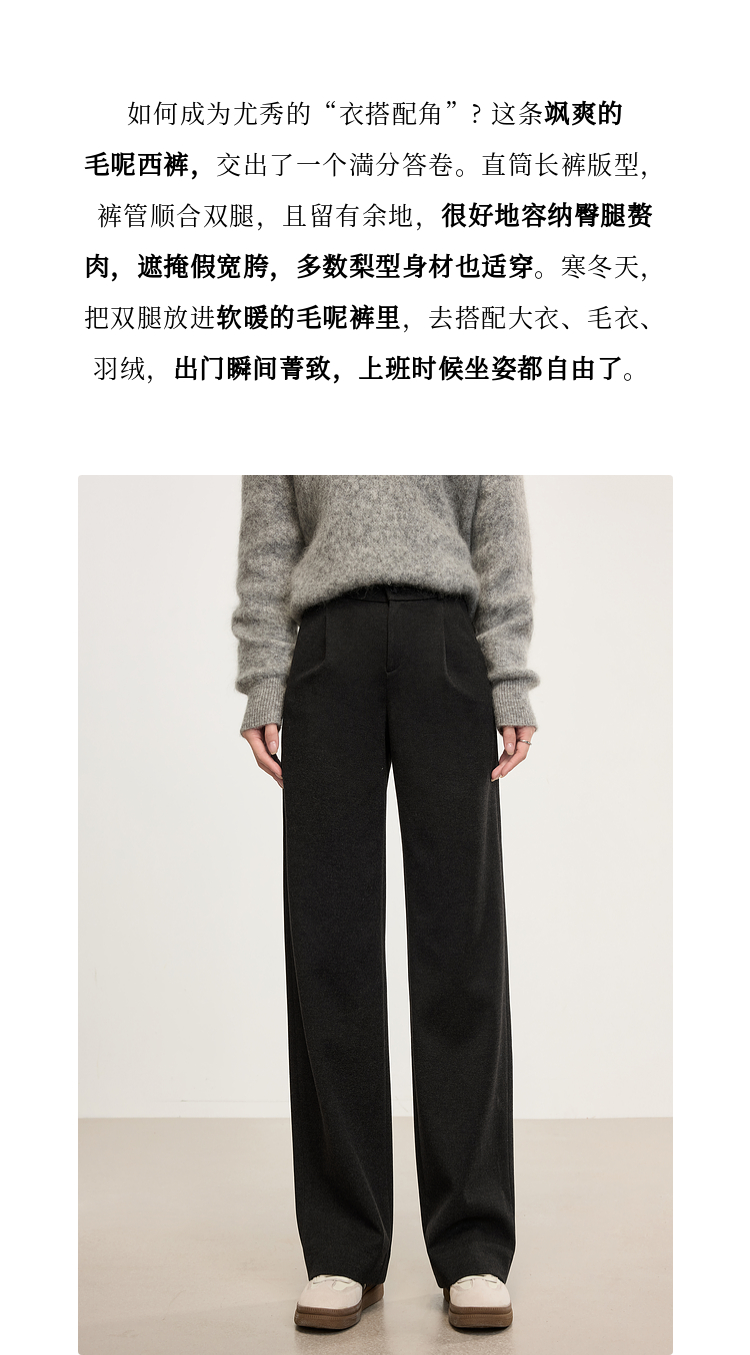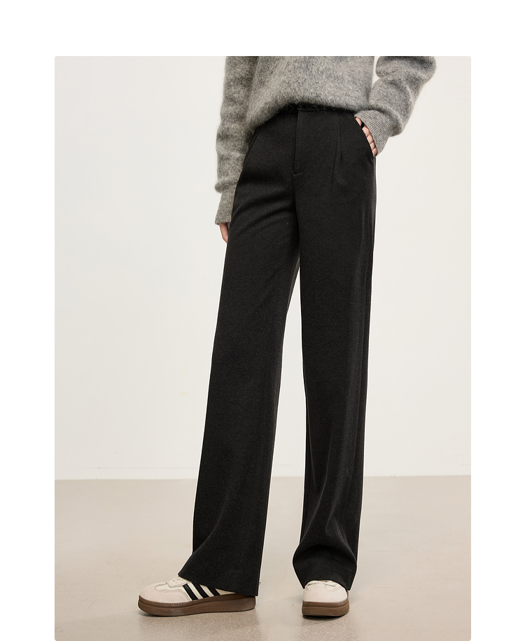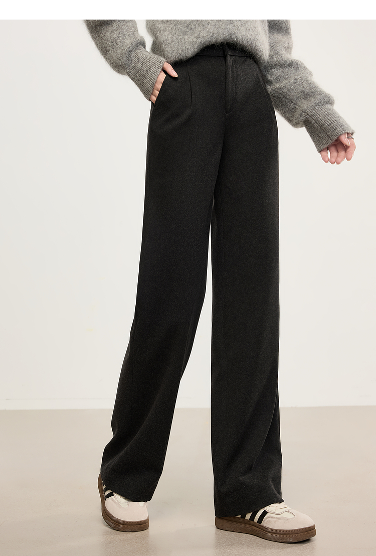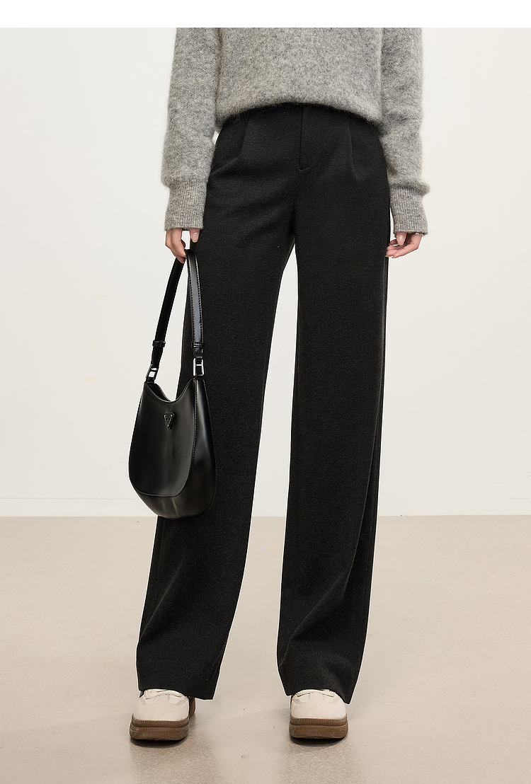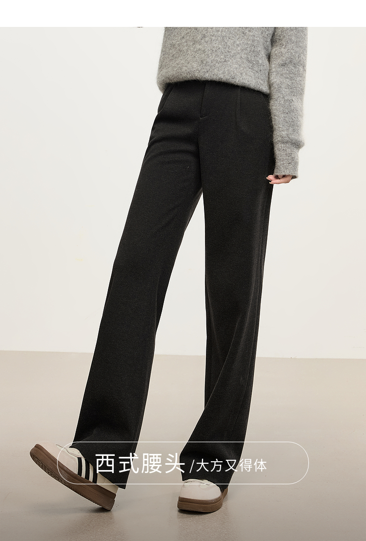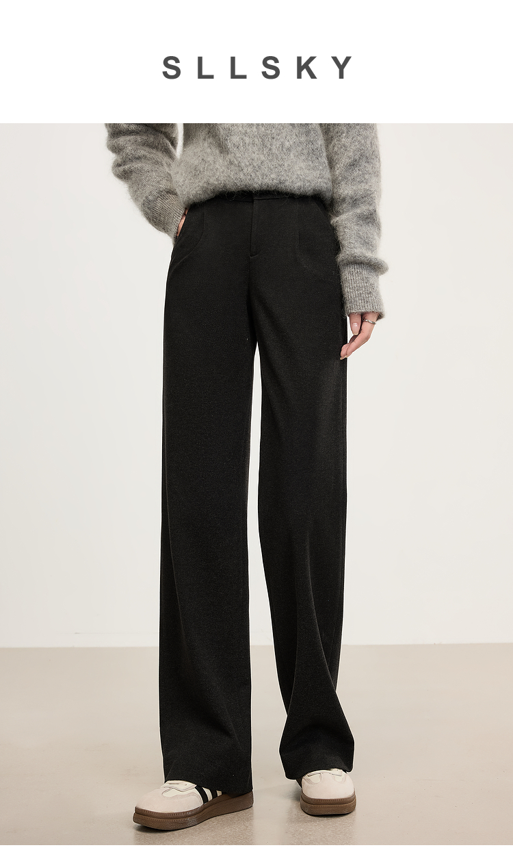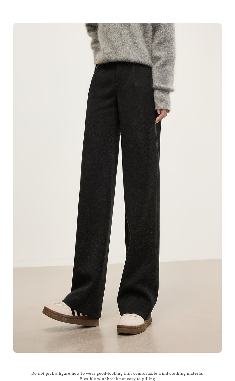 【年中特卖】熙世界高级感毛呢阔腿裤秋冬2025新款加厚直筒长裤子窄版西装裤