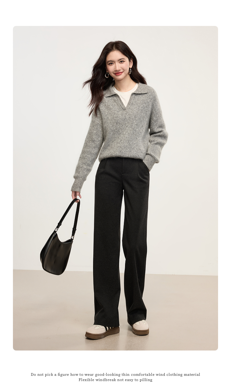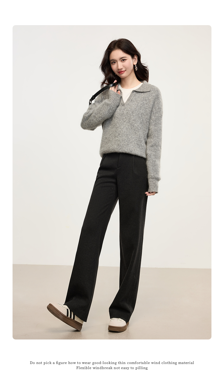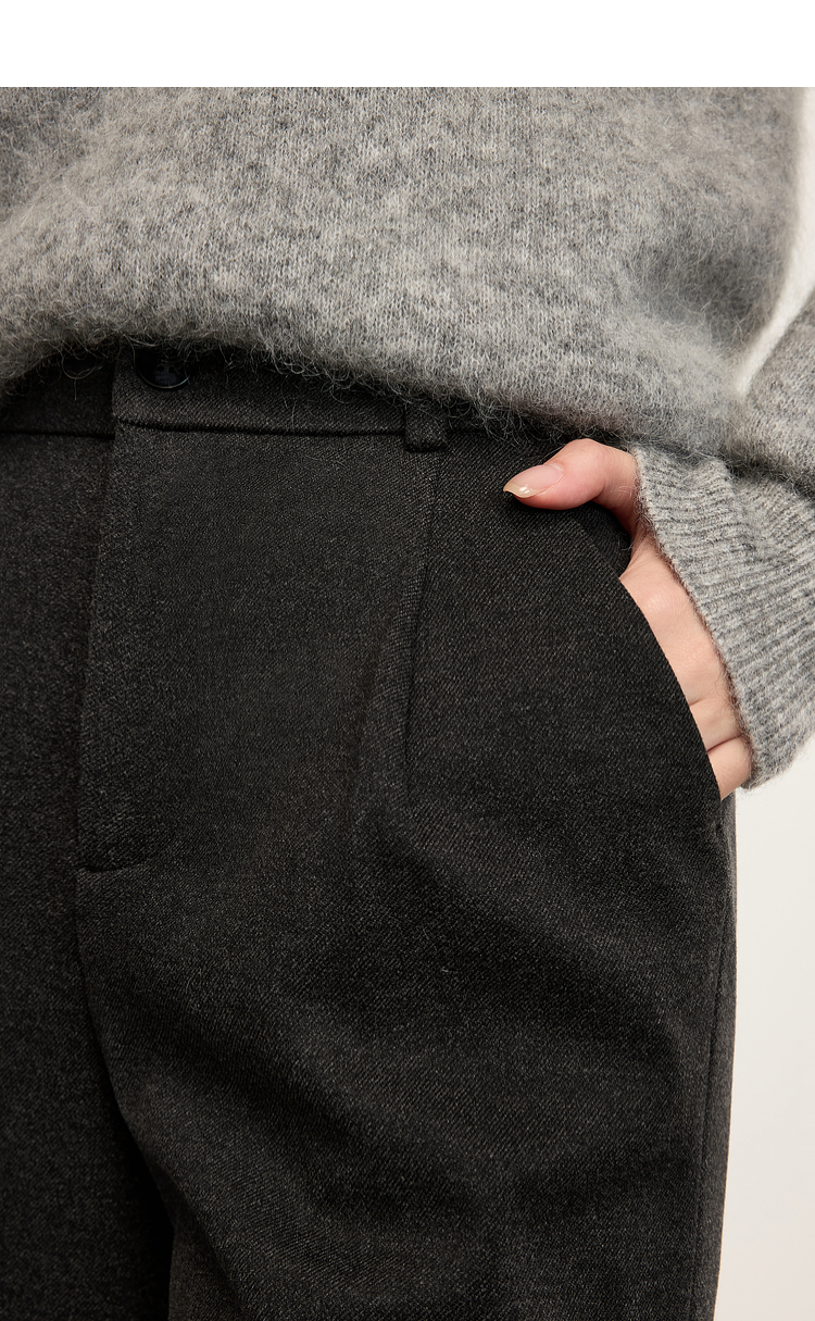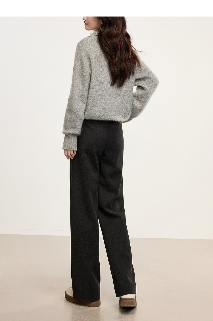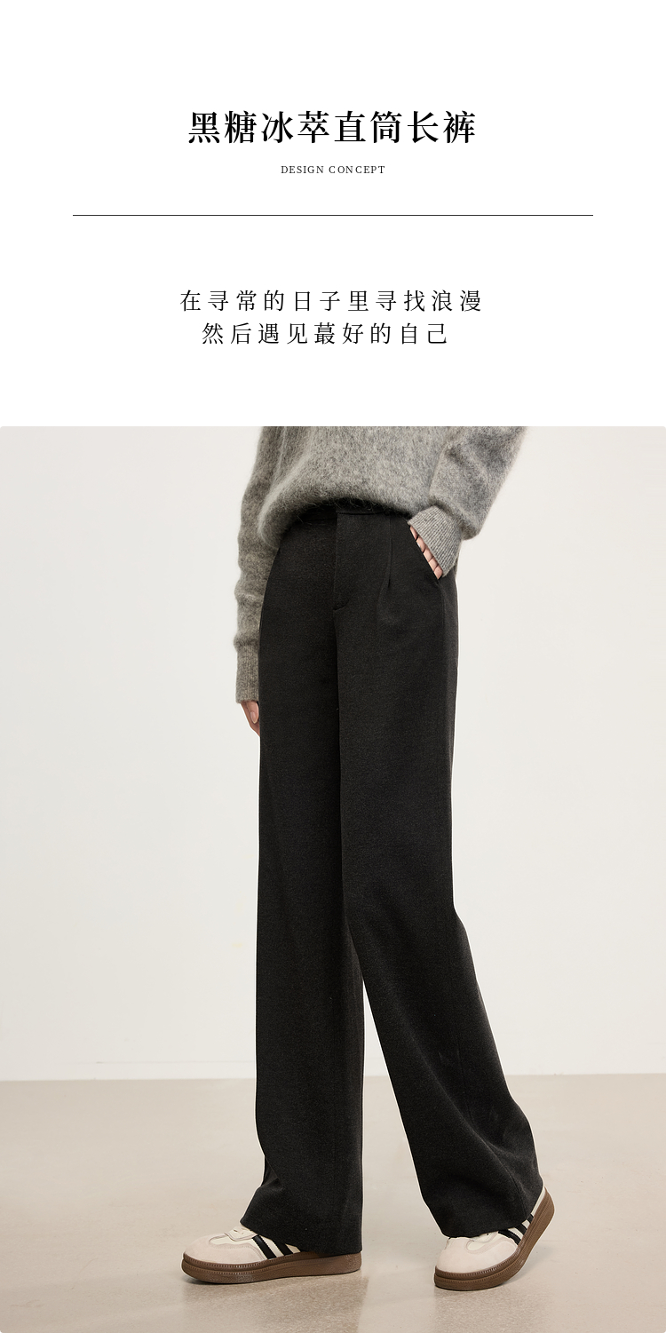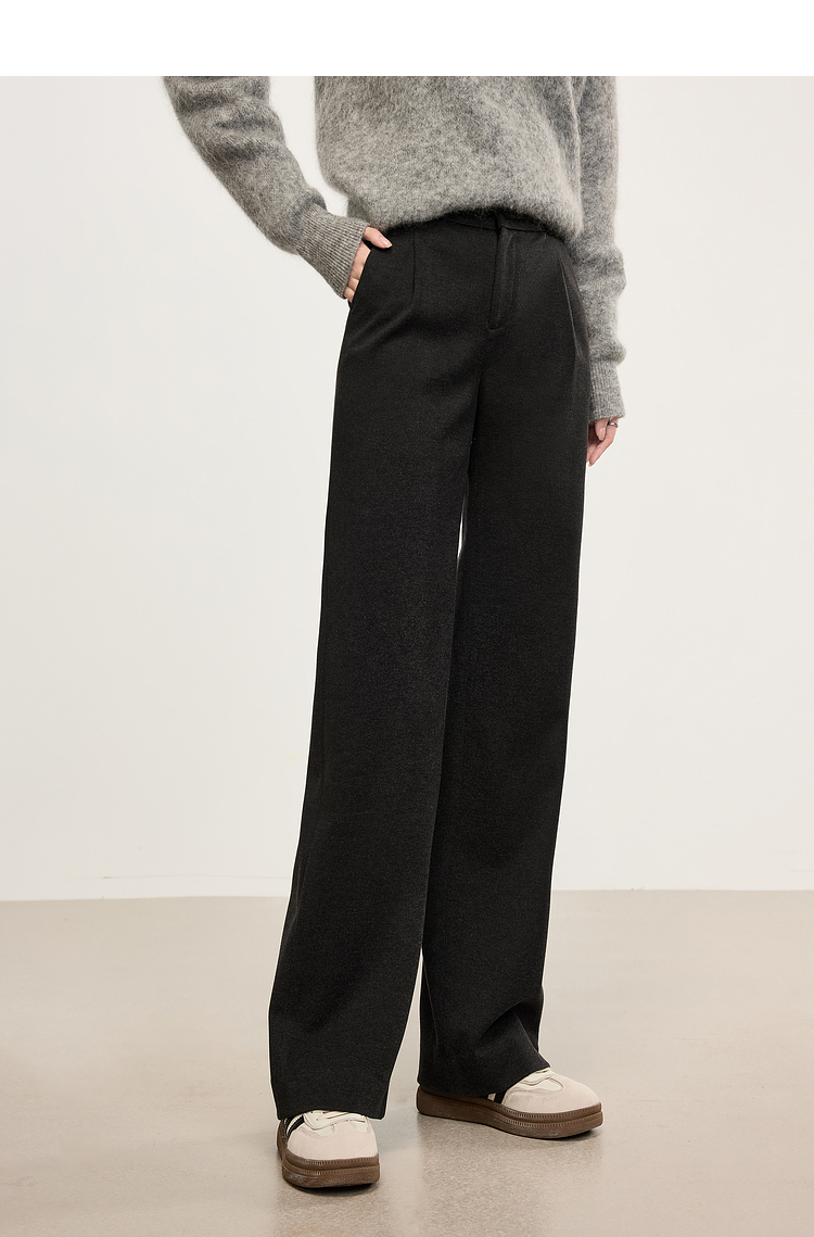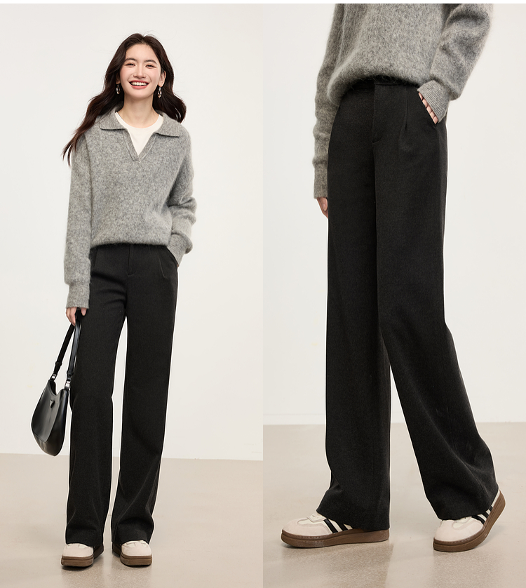 【年中特卖】熙世界高级感毛呢阔腿裤秋冬2025新款加厚直筒长裤子窄版西装裤