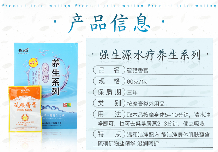 强身源硫磺香膏60g浴场专用润肤霜芦荟凝胶香硫磺膏擦背盐洗浴正品