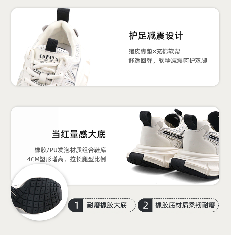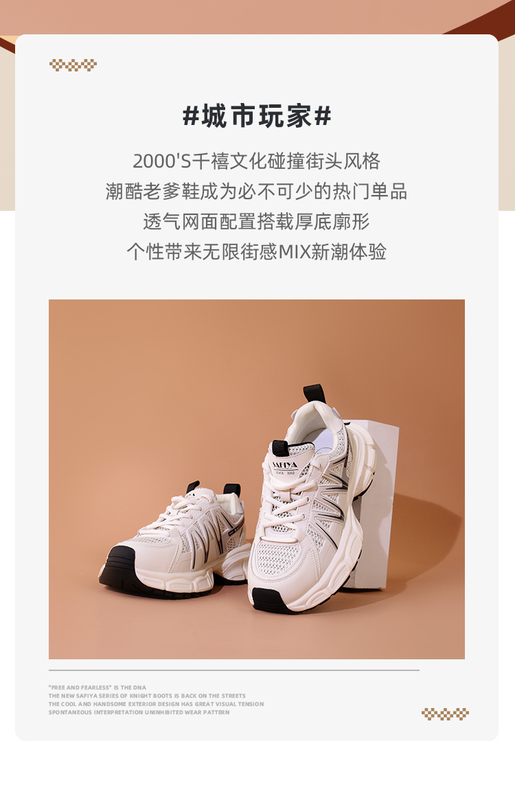 Safiya/索菲娅2023秋季新品 潮流街头透气轻便减震厚底运动老爹鞋 SF33112447