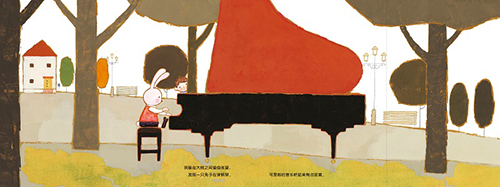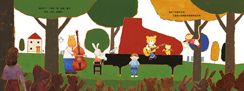 ◆每一个动物乐手和乐器的加入,都让音乐会更加活泼热闹,从短页到长页的模切工艺巧妙地呼应了故事里从寂寞哀伤的钢琴独奏,到结尾欢腾热闹的七重奏场面,让孩子边翻页,边感受音乐此起彼伏的变化,充满互动性和趣味性。