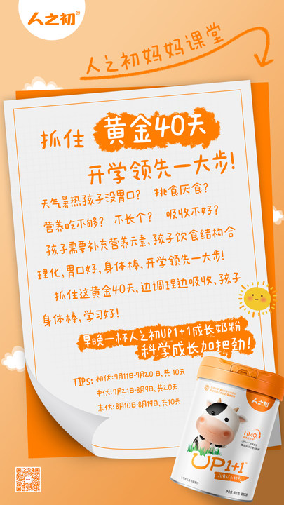 人之初UP1+1儿童成长奶粉800g 203661