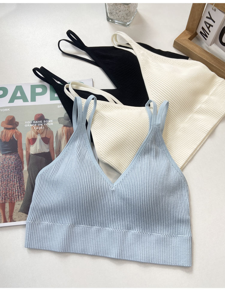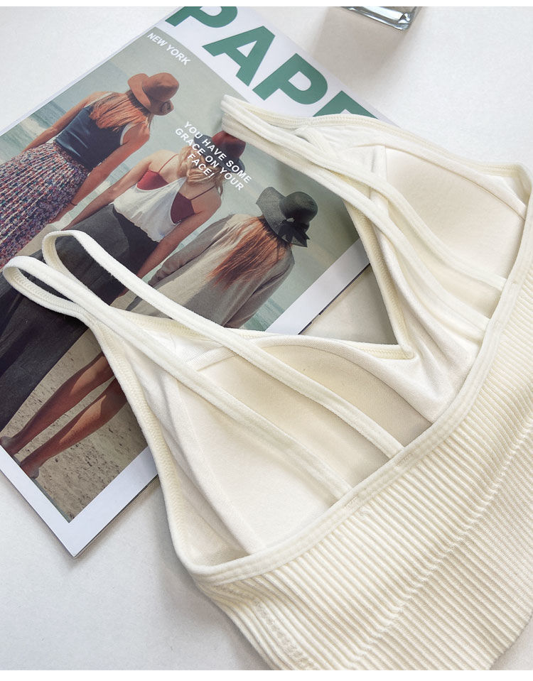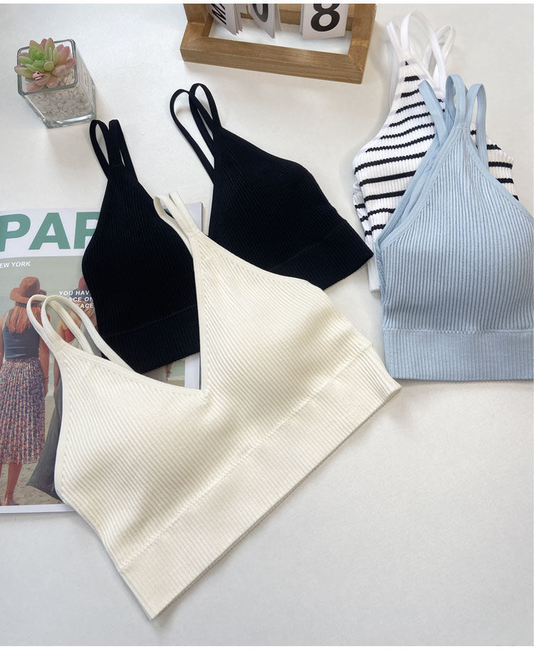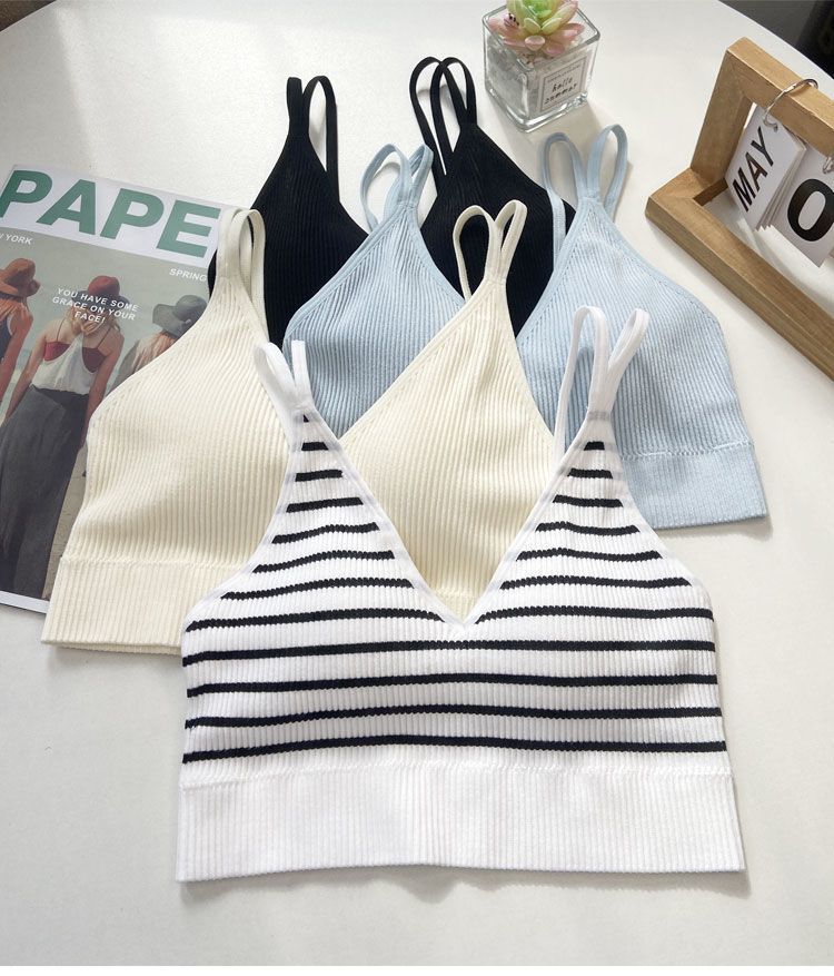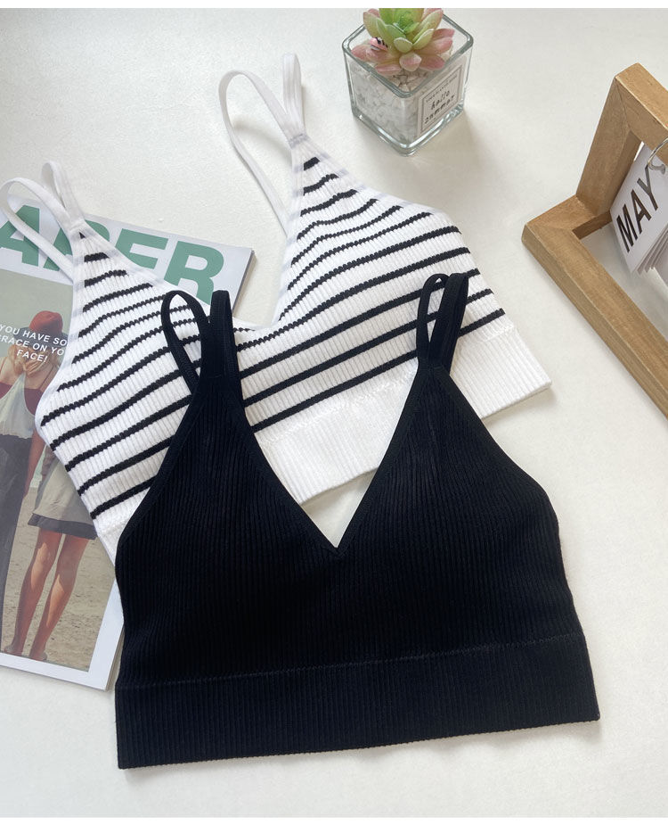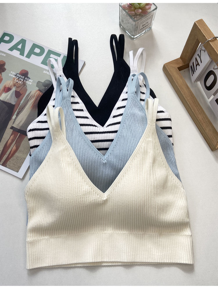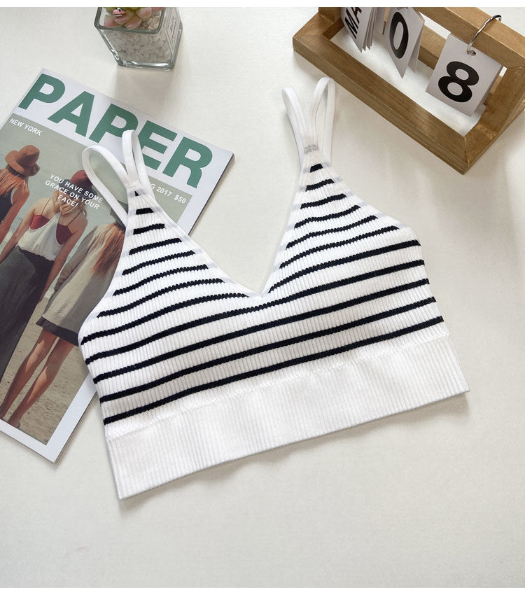 【比没穿还舒服!可以穿出街的美背内衣】条纹深V美背内衣女,透气内搭抹胸吊带夏季螺纹无钢圈固定一体杯裹胸