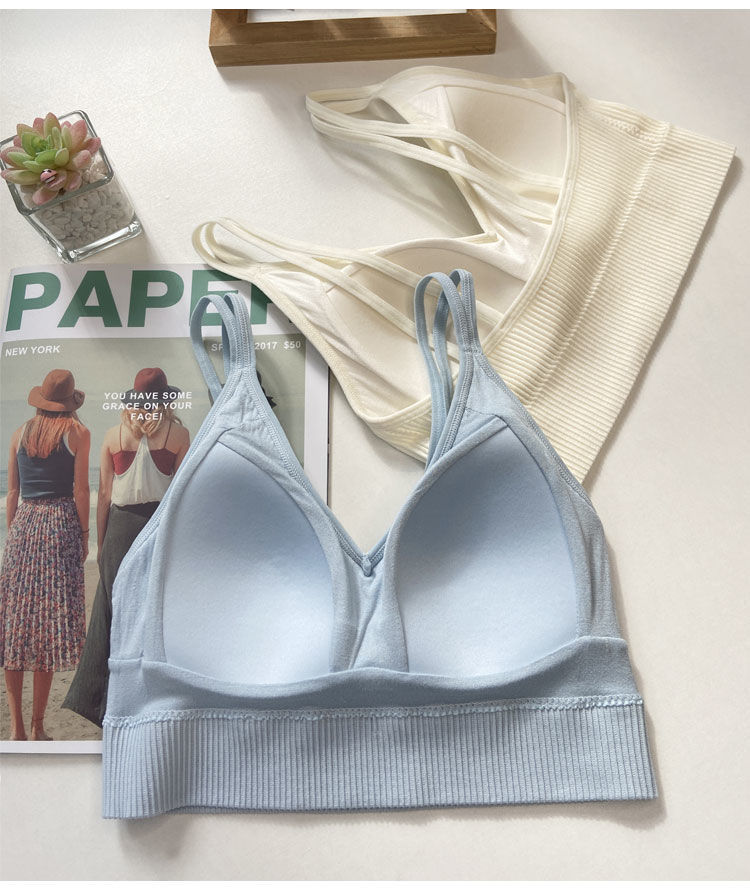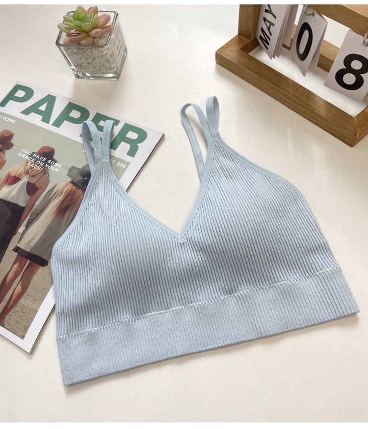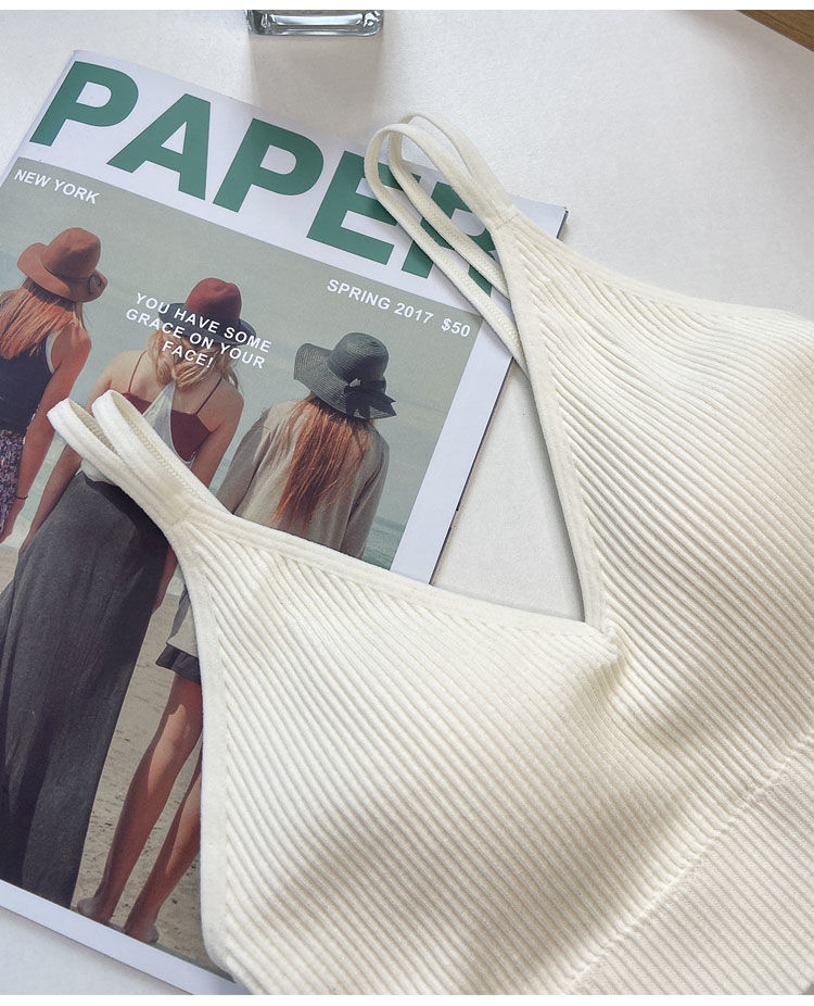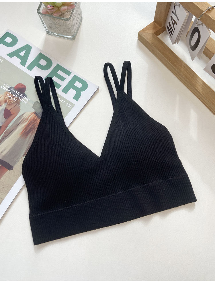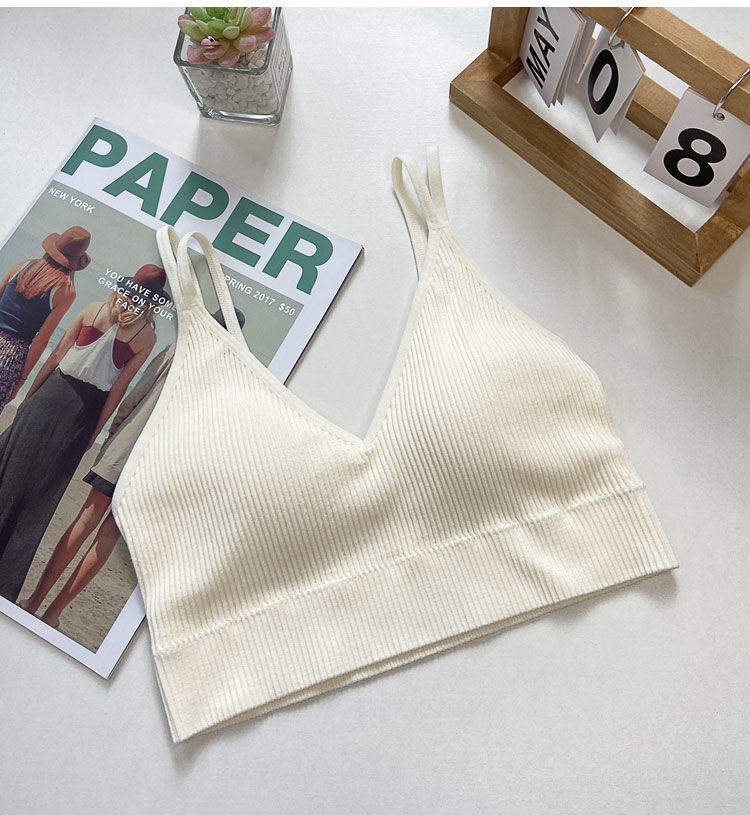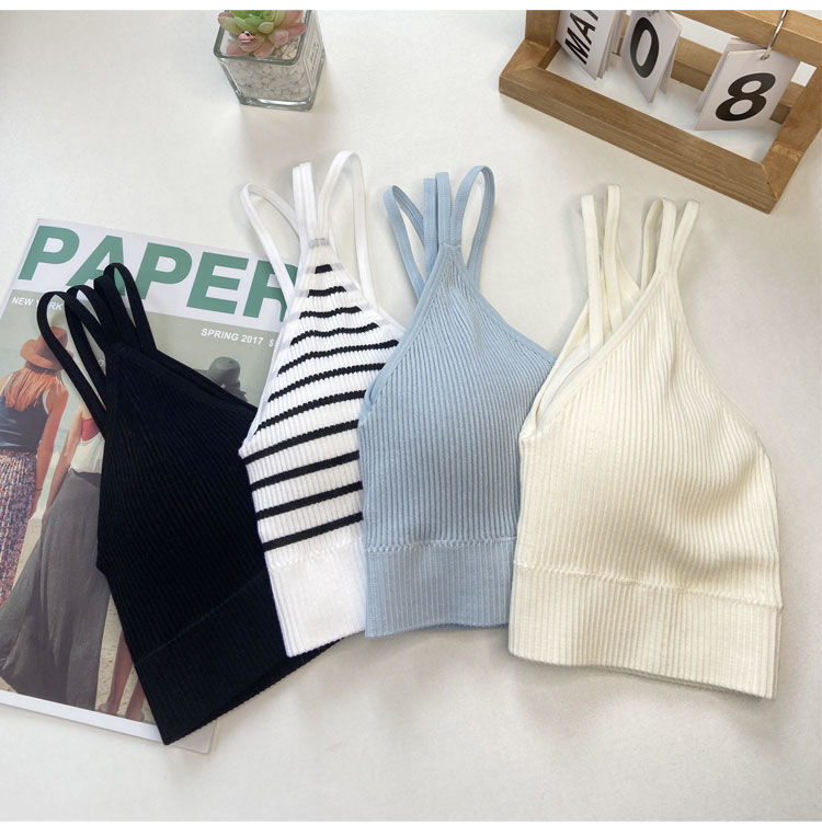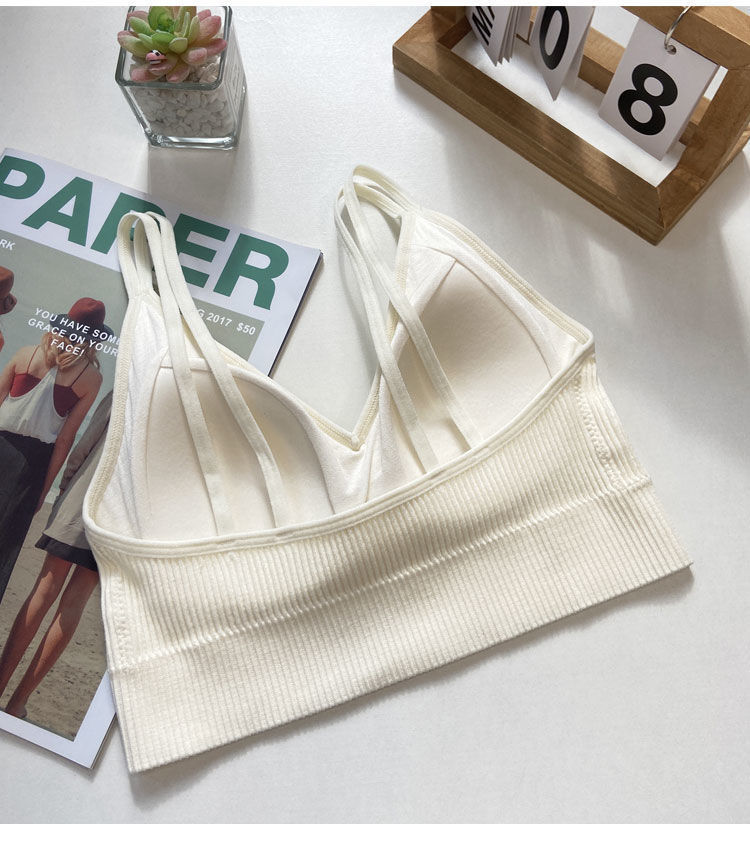 【比没穿还舒服!可以穿出街的美背内衣】条纹深V美背内衣女,透气内搭抹胸吊带夏季螺纹无钢圈固定一体杯裹胸