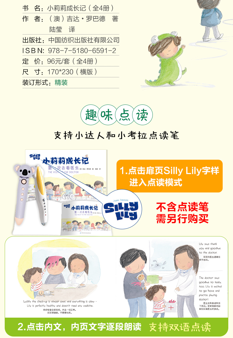 【套装全4册】小莉莉成长记 趣味点读 让孩子爱上阅读 双语绘本 亲子阅读读物 婴幼儿中文英文启蒙读物培养孩子英语口语表达能力书
