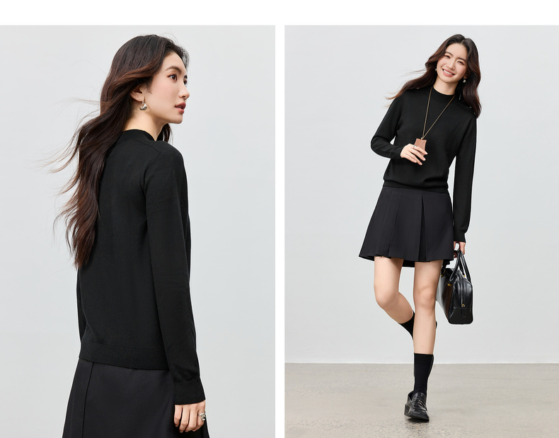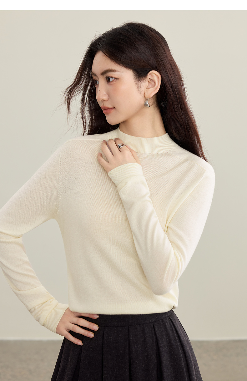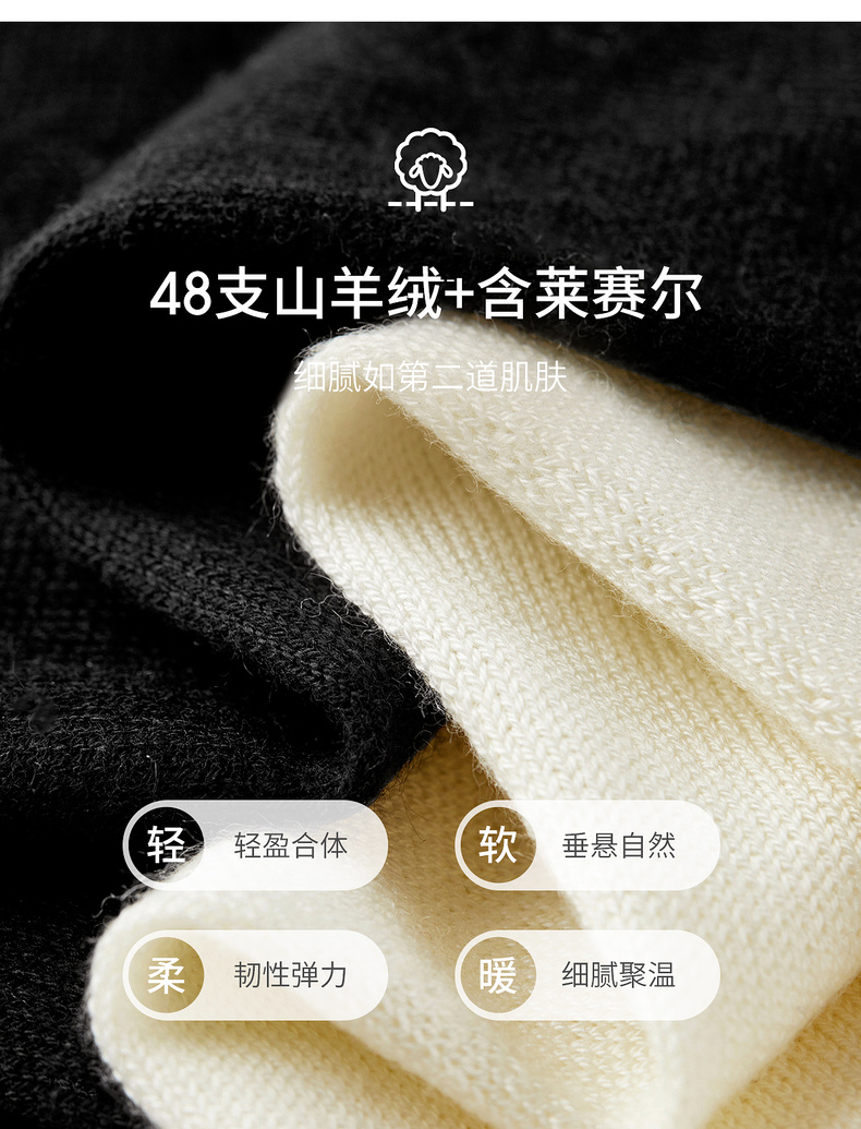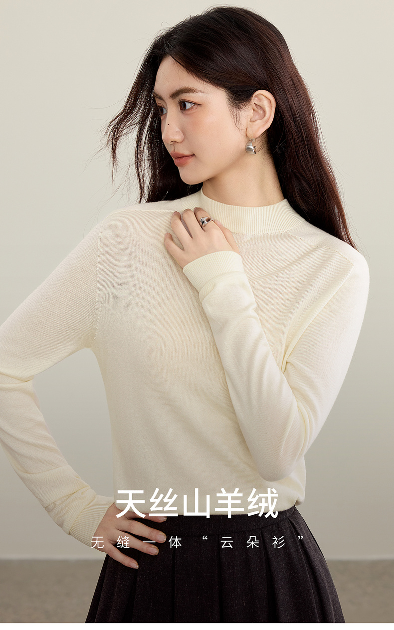 【内购】【莱赛尔山羊绒】无缝一体48支山羊绒绵羊毛可机洗半高领针织毛衣-W53EF2794