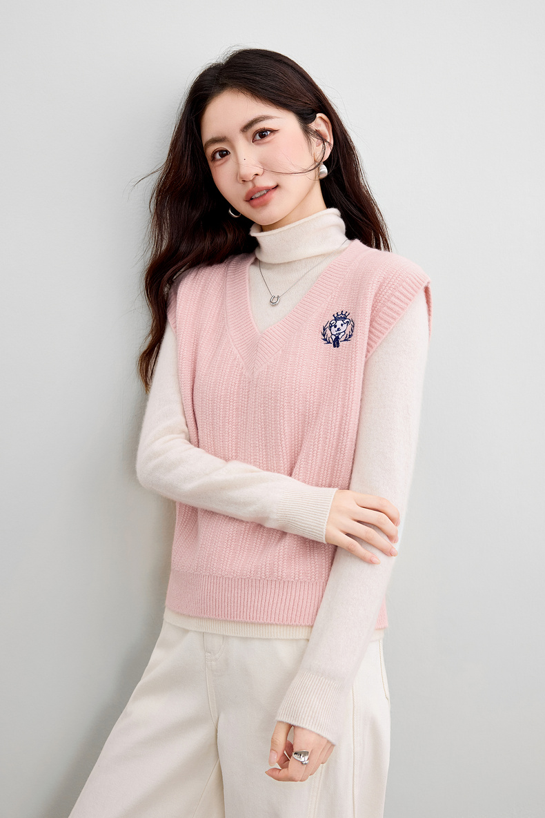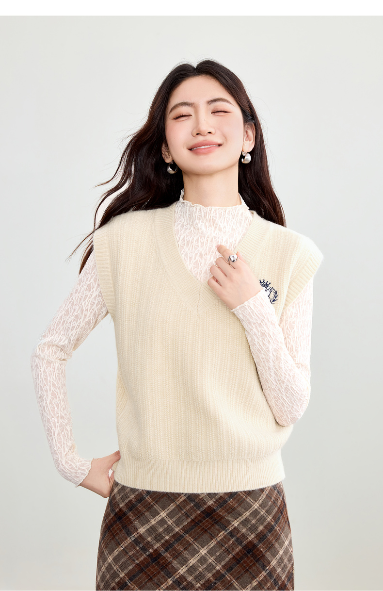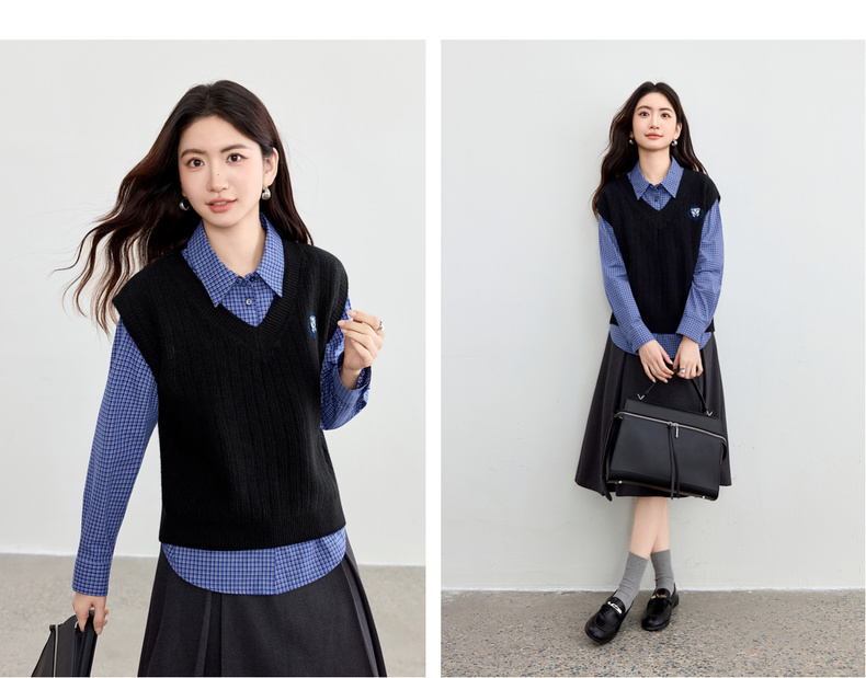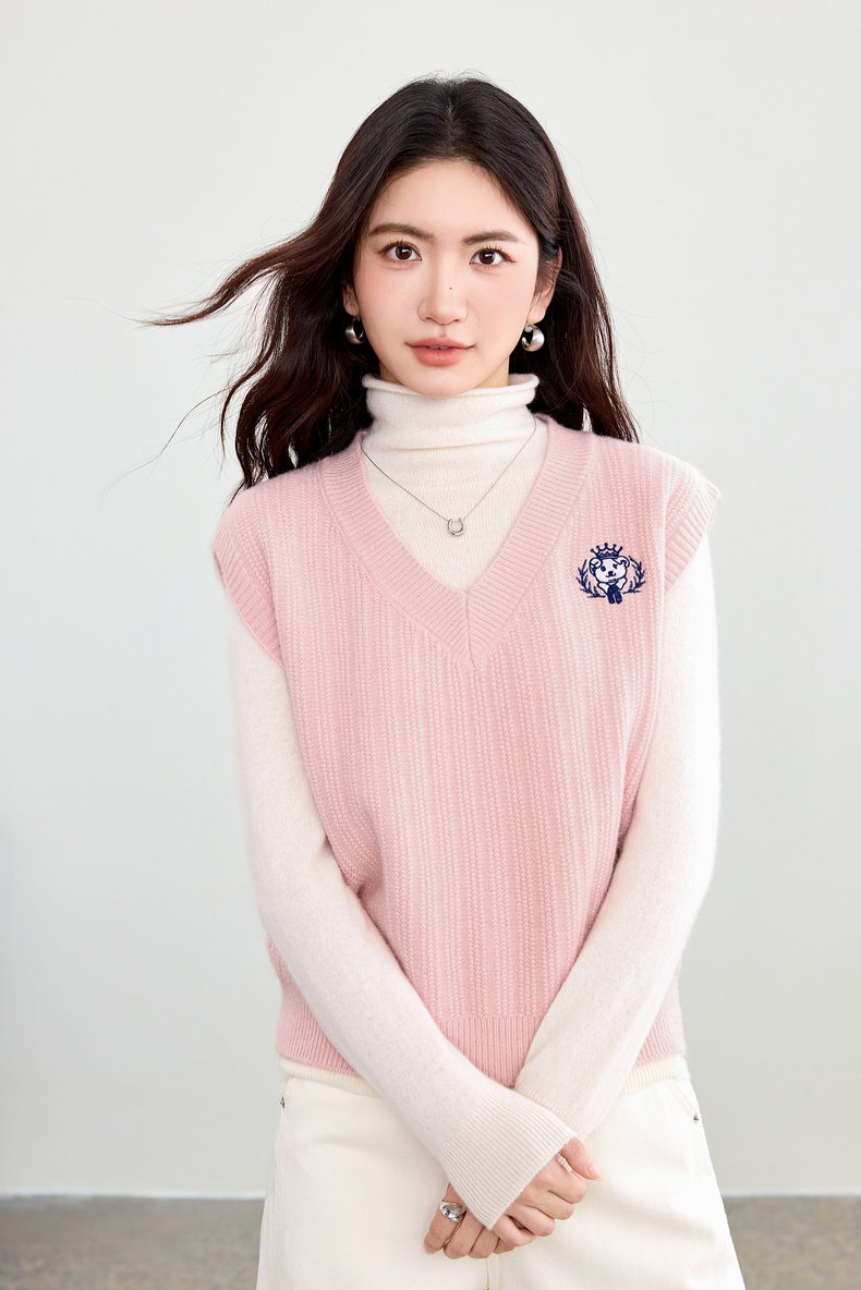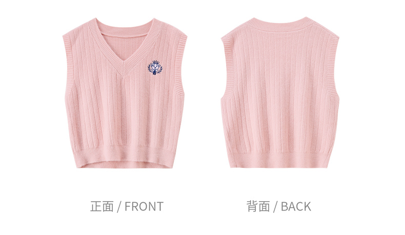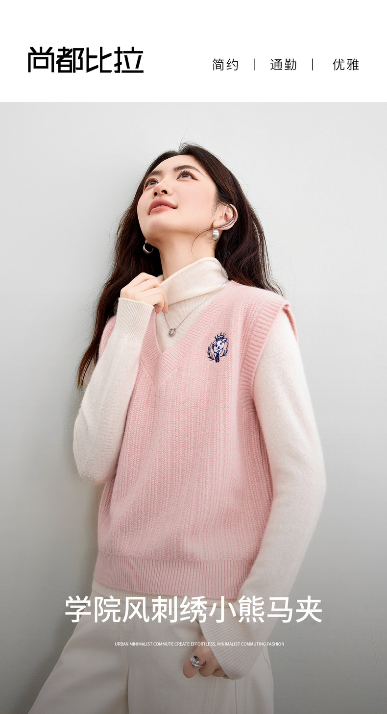 【内购】【多色可选】通勤学院风v领撞色刺绣小熊徽章外穿内搭毛织马夹-W53JB3404