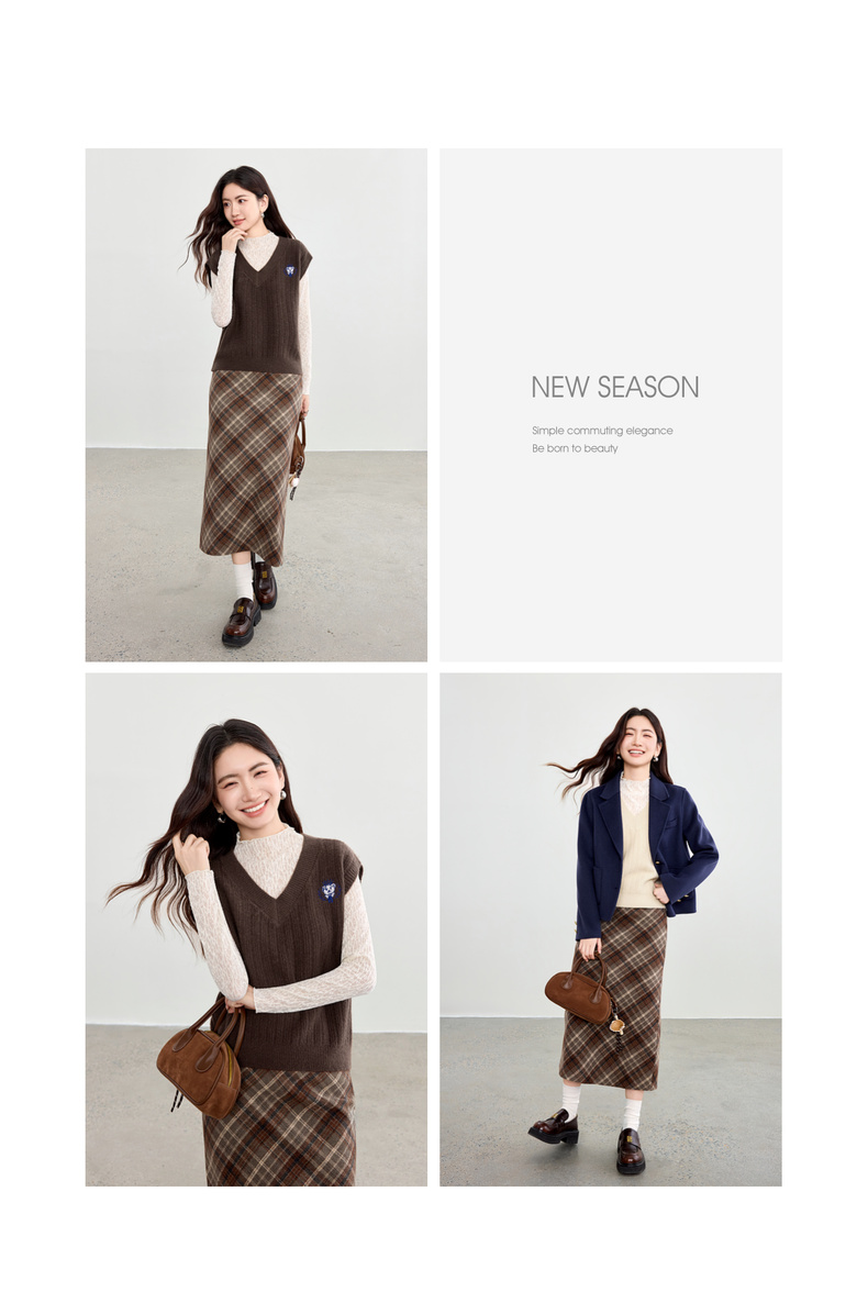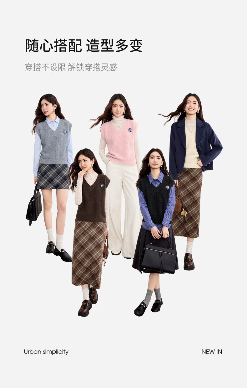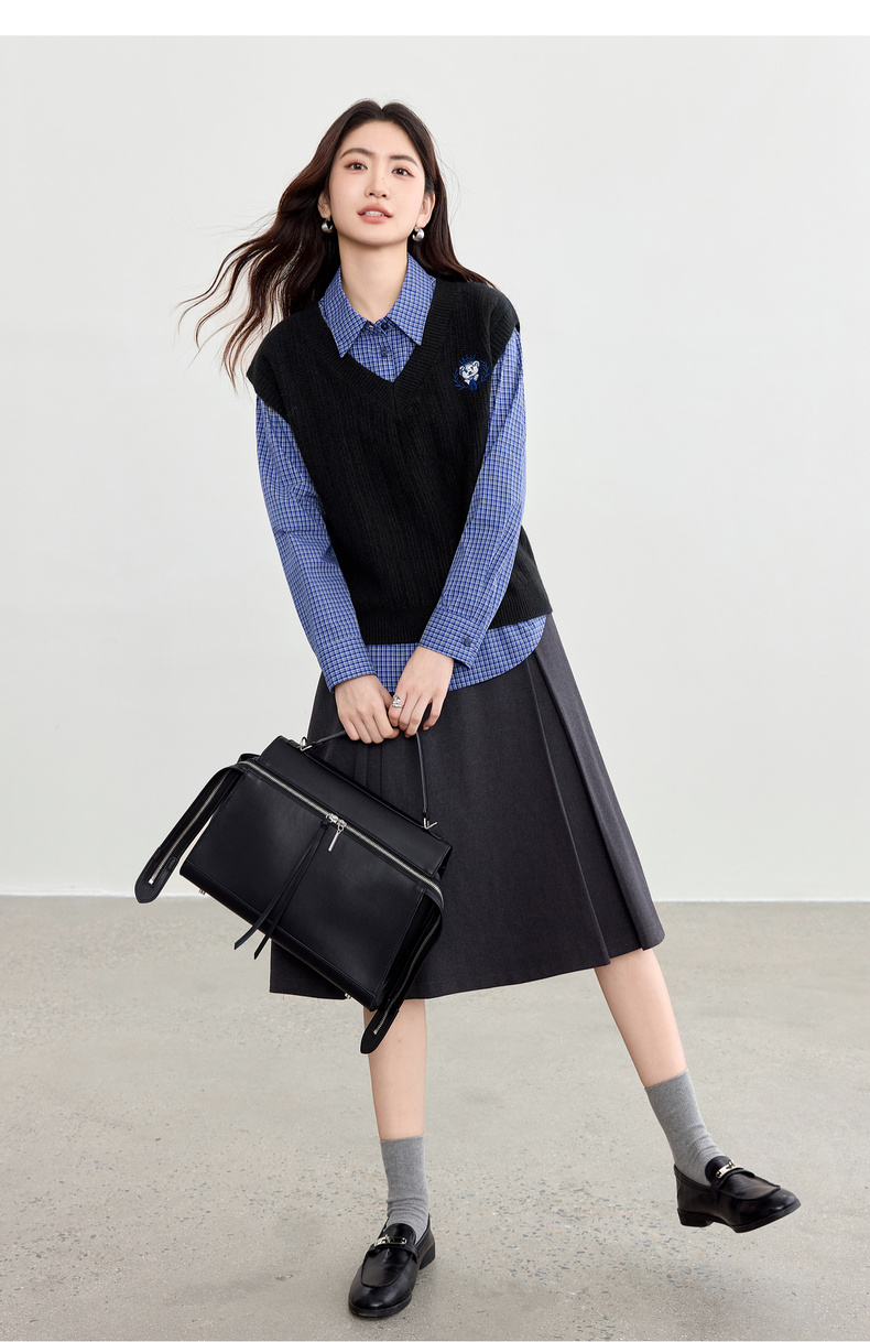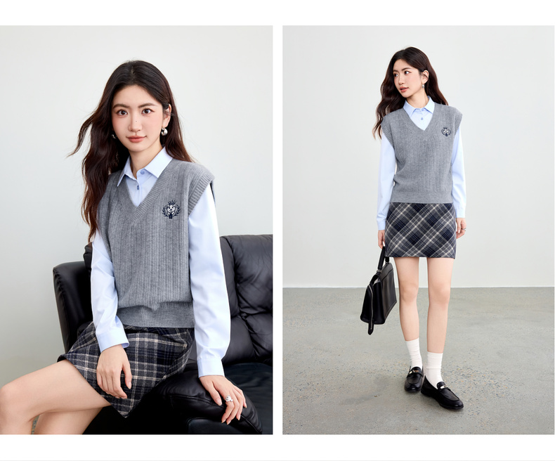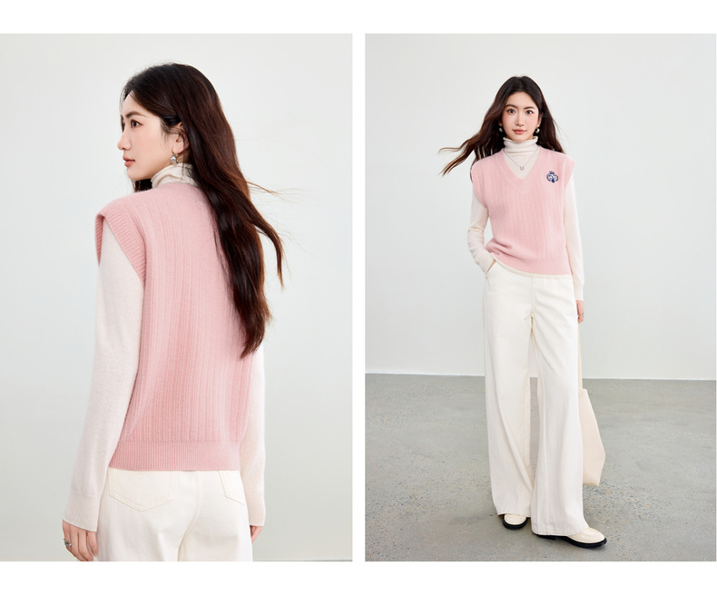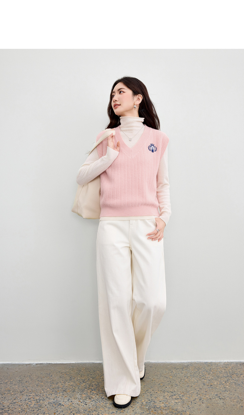【内购】【多色可选】通勤学院风v领撞色刺绣小熊徽章外穿内搭毛织马夹-W53JB3404