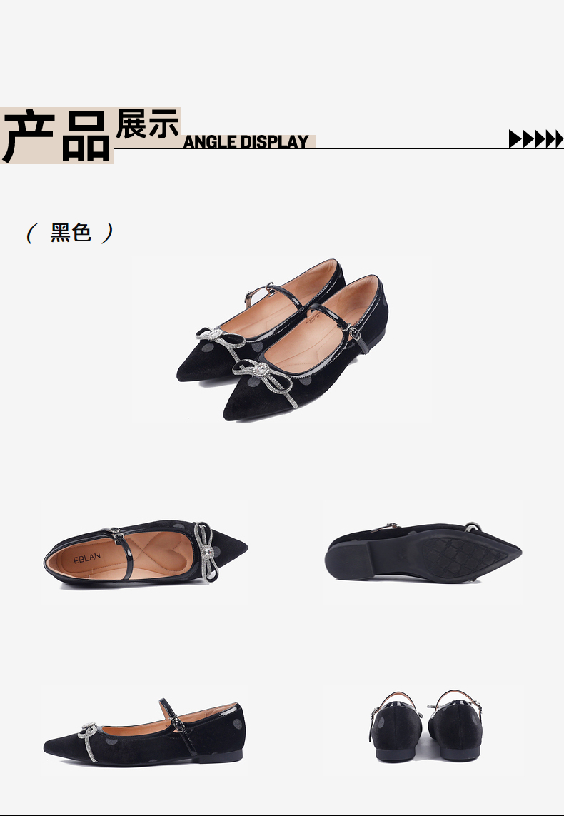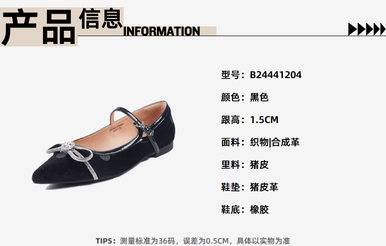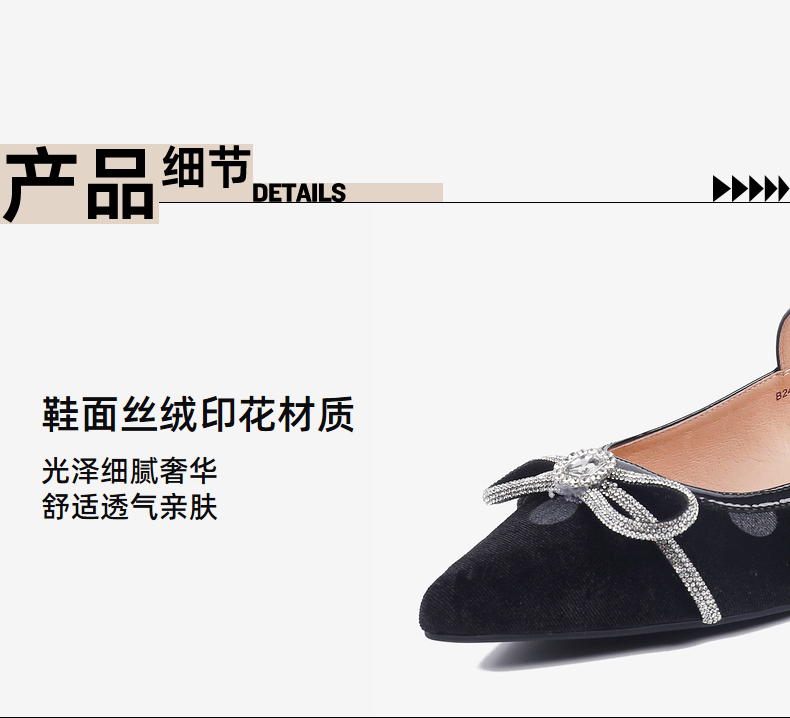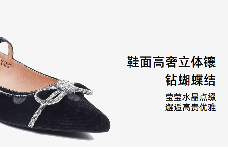 千百度蝴蝶钻饰低跟玛丽珍女鞋通勤真皮通勤浅口单鞋A25185101