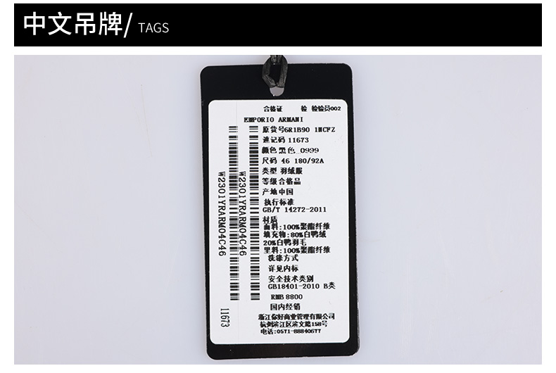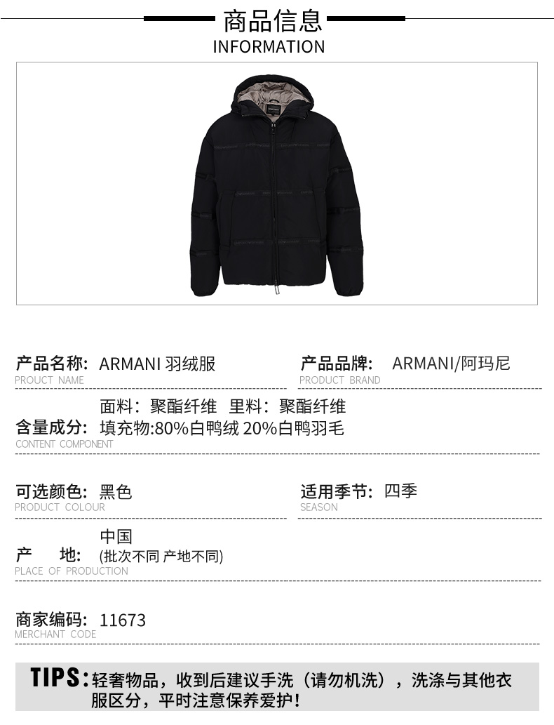 【超惠秒】Emporio Armani 男士连帽抗寒保暖白鸭绒羽绒服11673