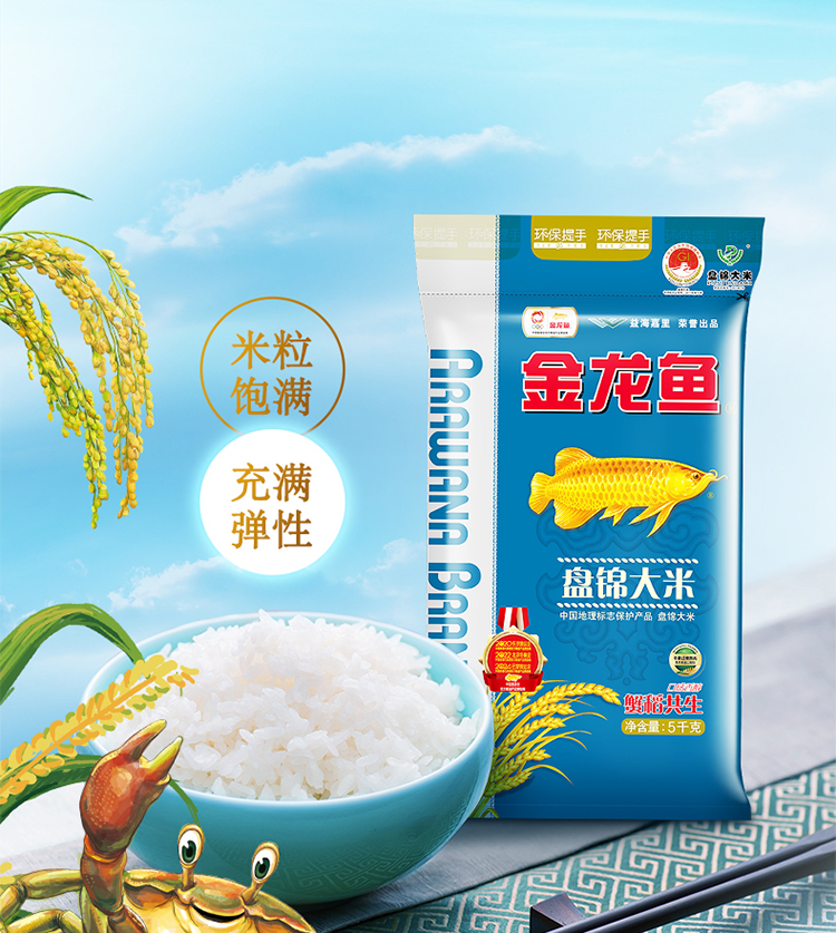 金龙鱼 东北大米 盘锦大米5kg*4袋 整箱共40斤 蟹稻共生 整箱装 包邮 金龙鱼大米