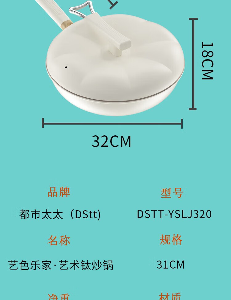 都市太太31CM艺色乐家艺术钛炒锅DSTT-YSLG320