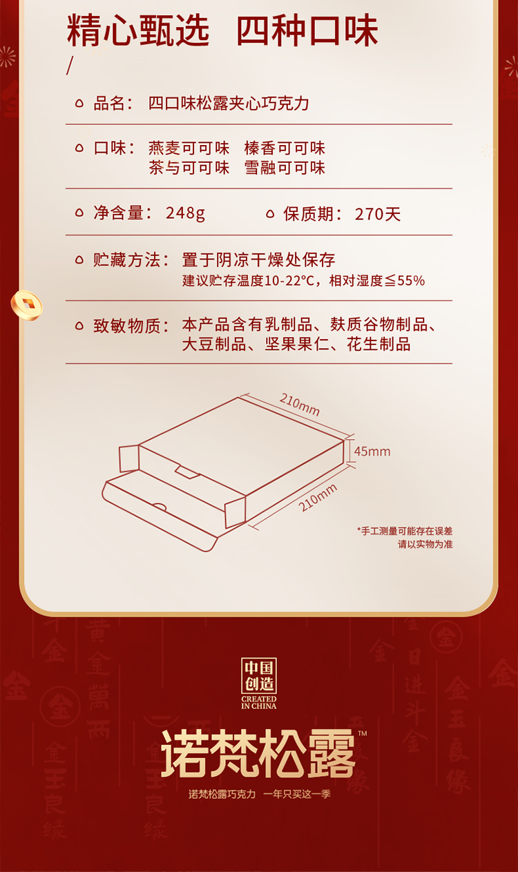 诺梵圣诞金松露巧克力铁盒装礼盒500g A-5590 (效期26-8)