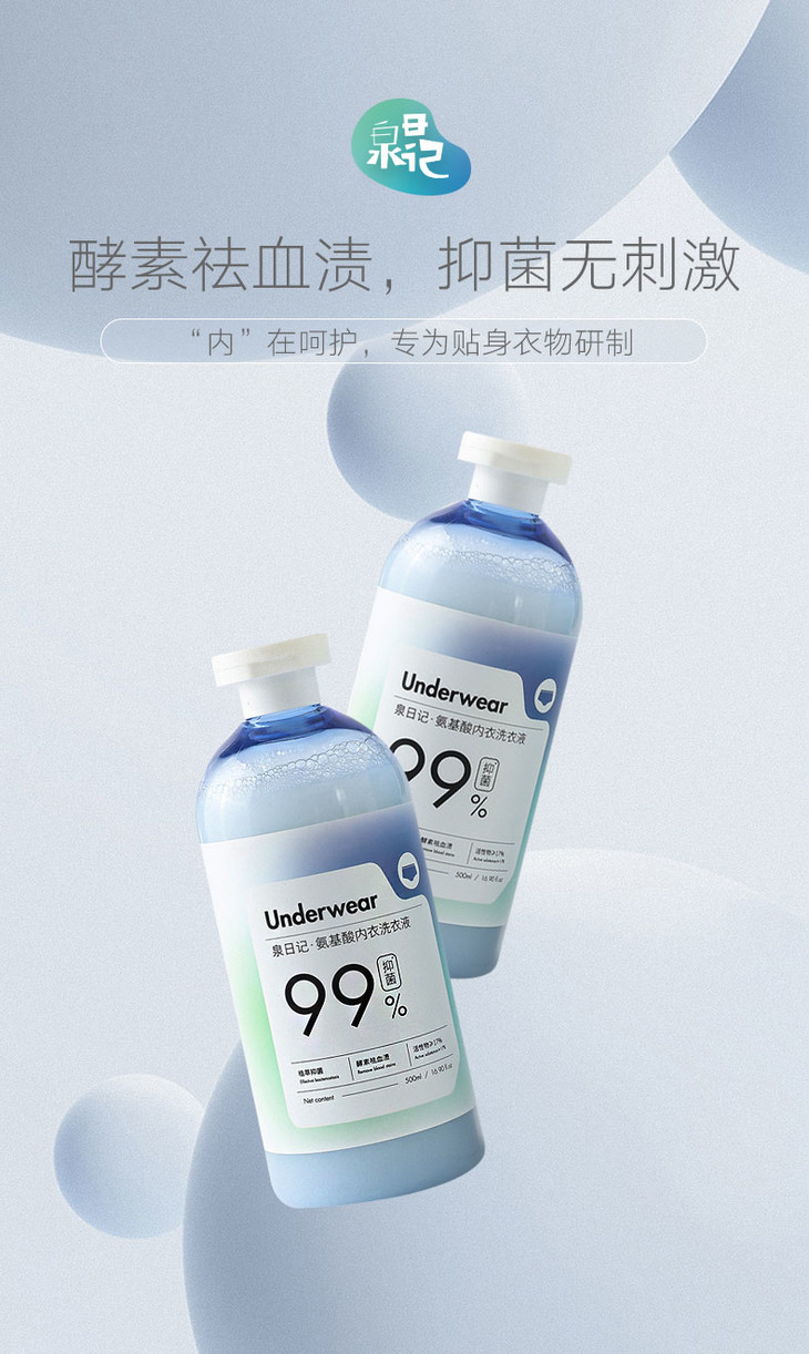 泉日记氨基酸内衣洗衣液 洗内衣内裤专用女士去血渍贴身衣物洁净护衣液 500ml/瓶