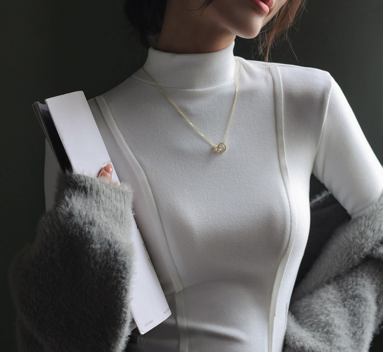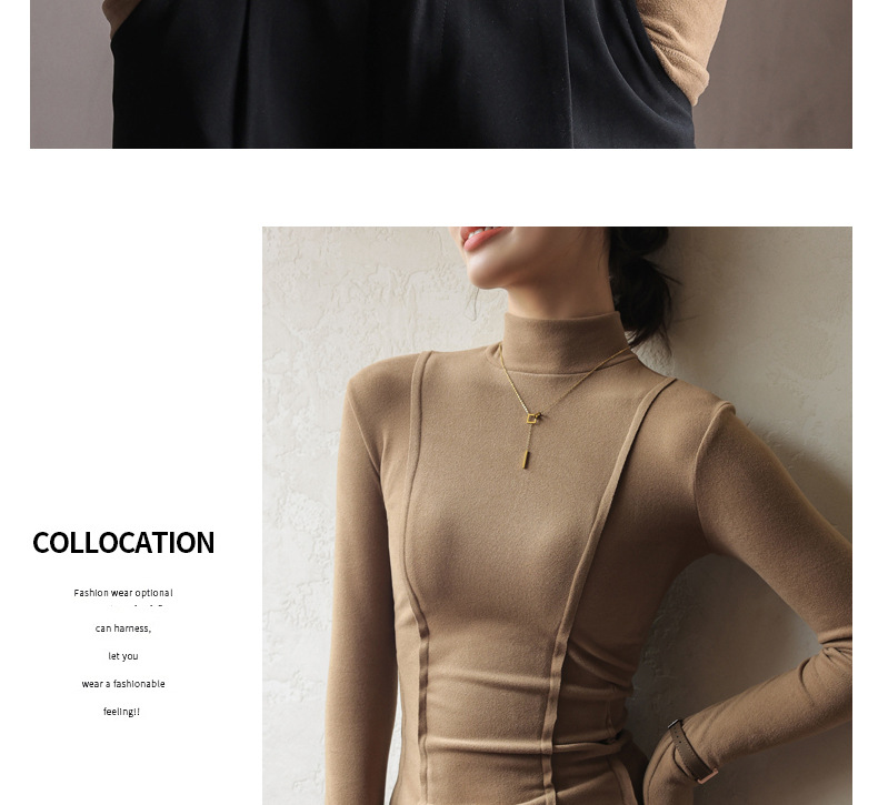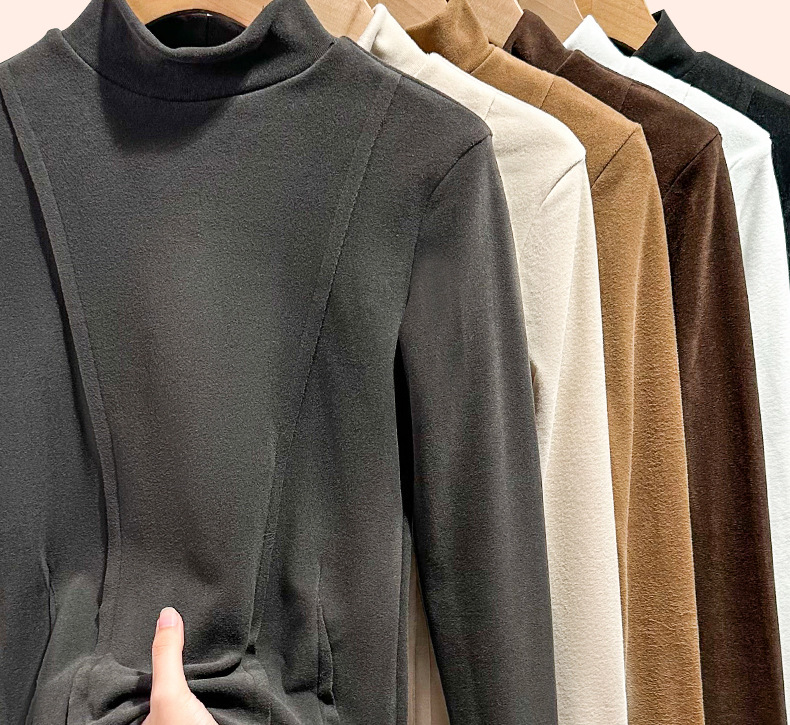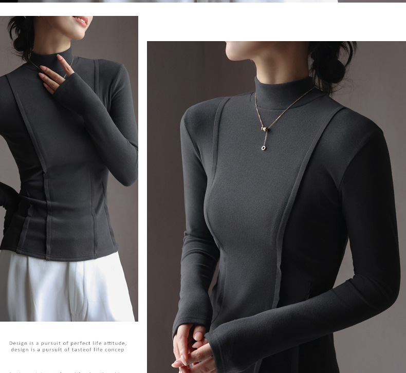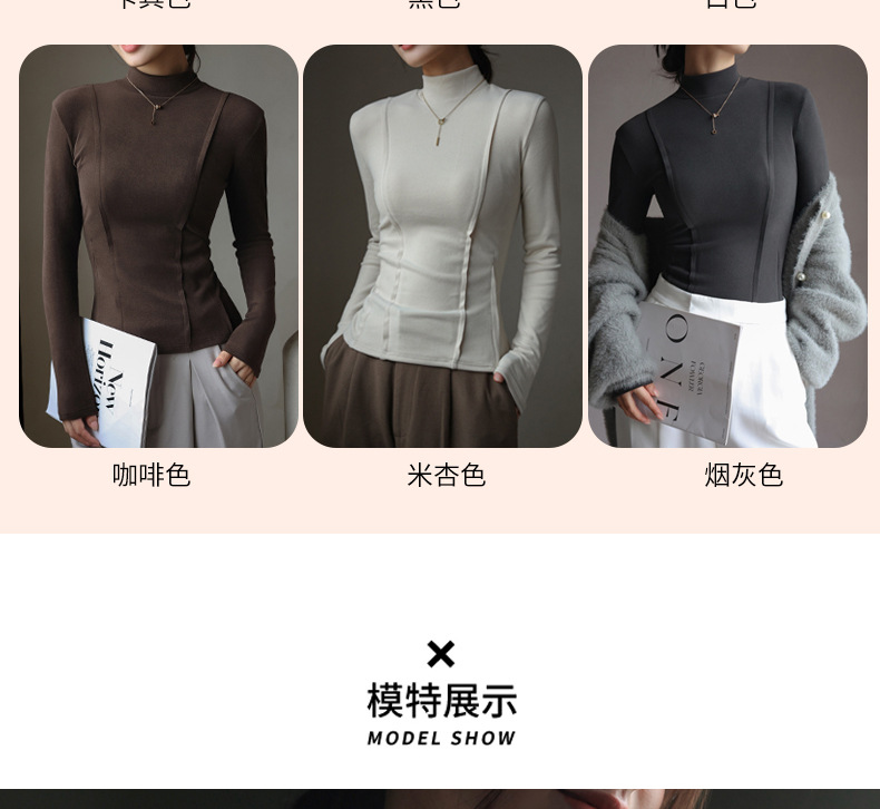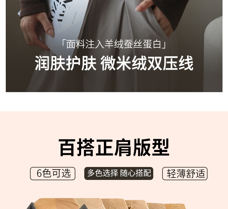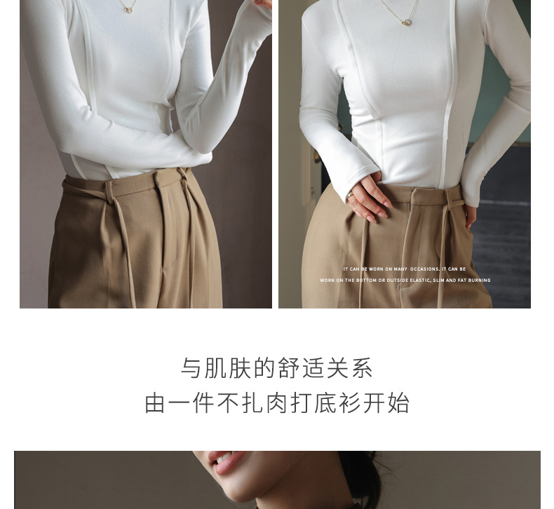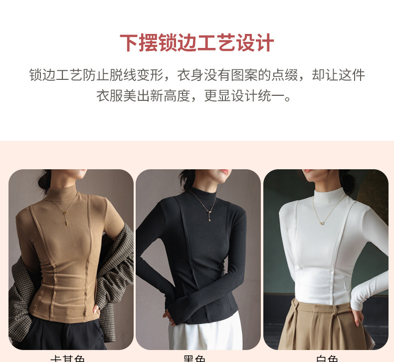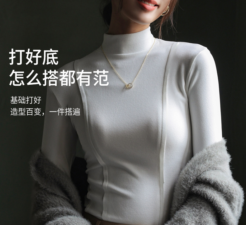 秋冬爆款【羊绒蚕丝蛋白打底上衣】半高领德绒打底衫 修身长袖内搭 百搭正肩版型