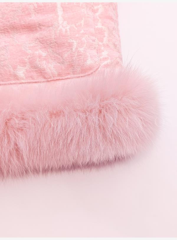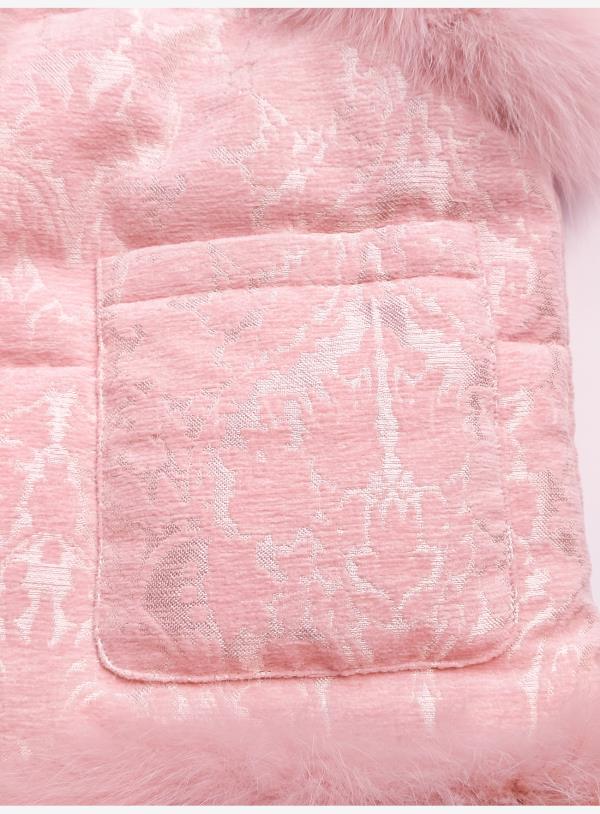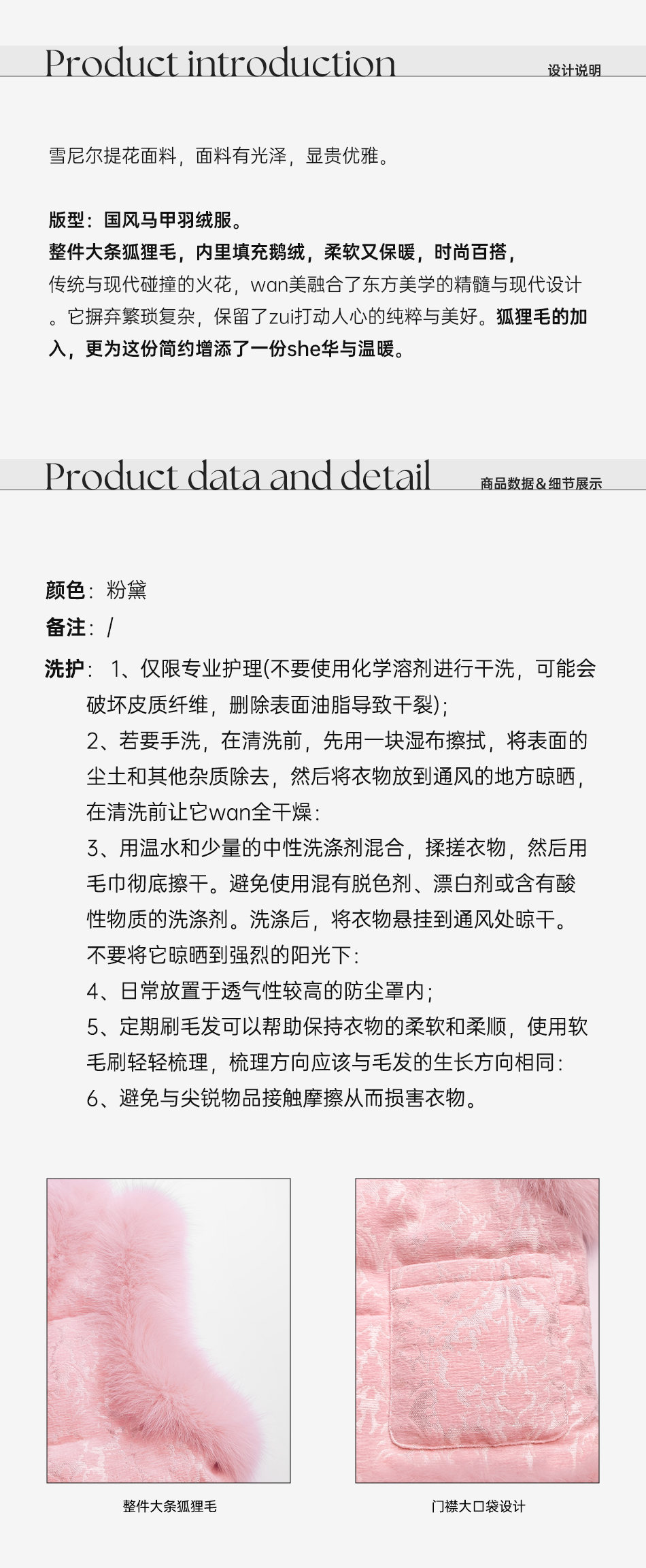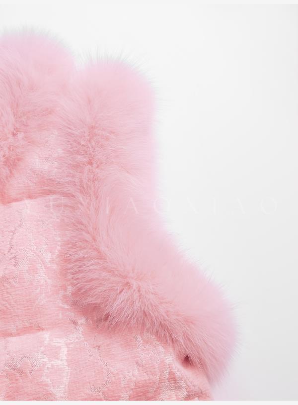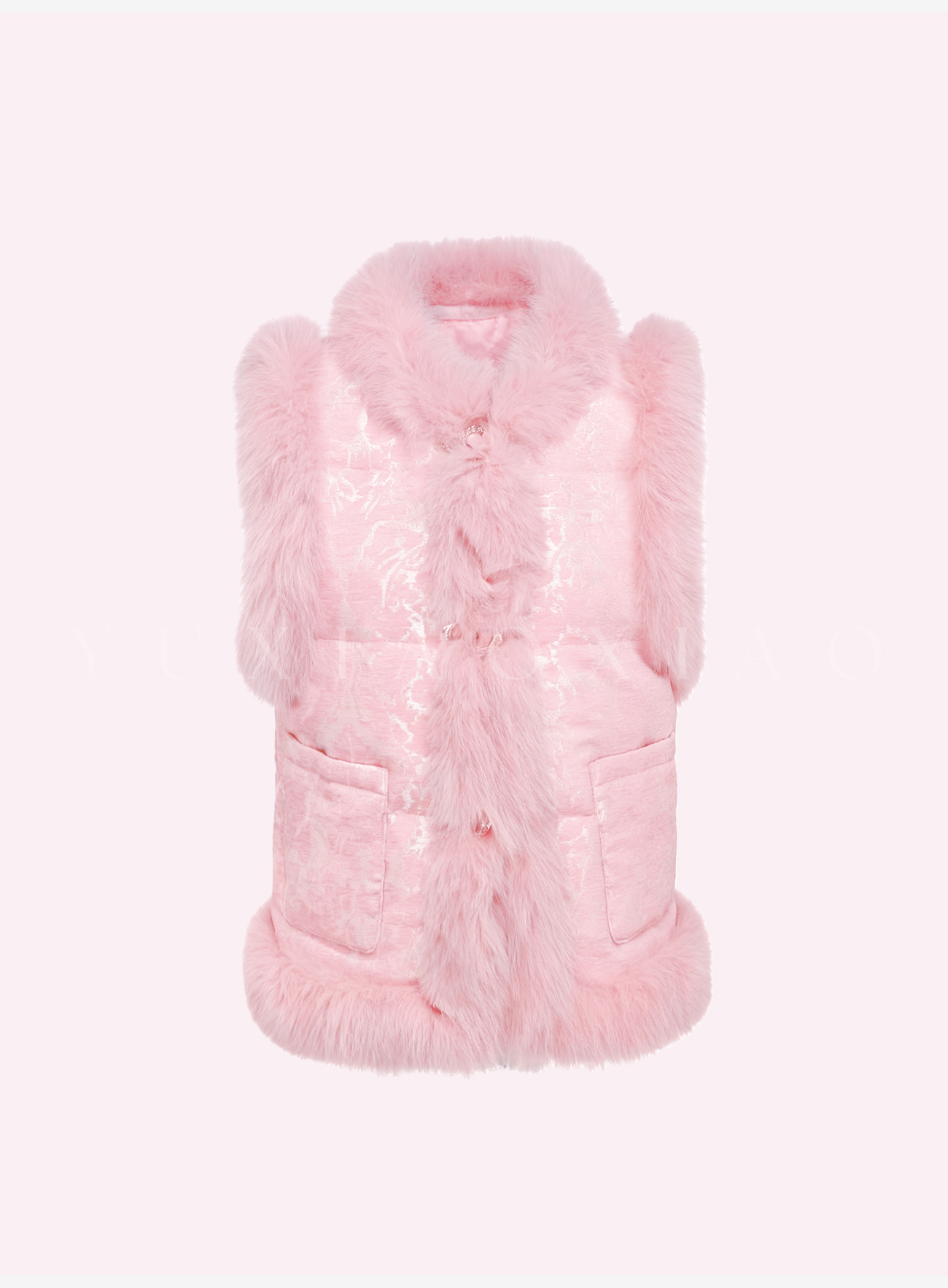 余潇潇【粉黛初冬】90鹅绒雪尼尔提花狐狸毛拼接国风马甲羽绒服
