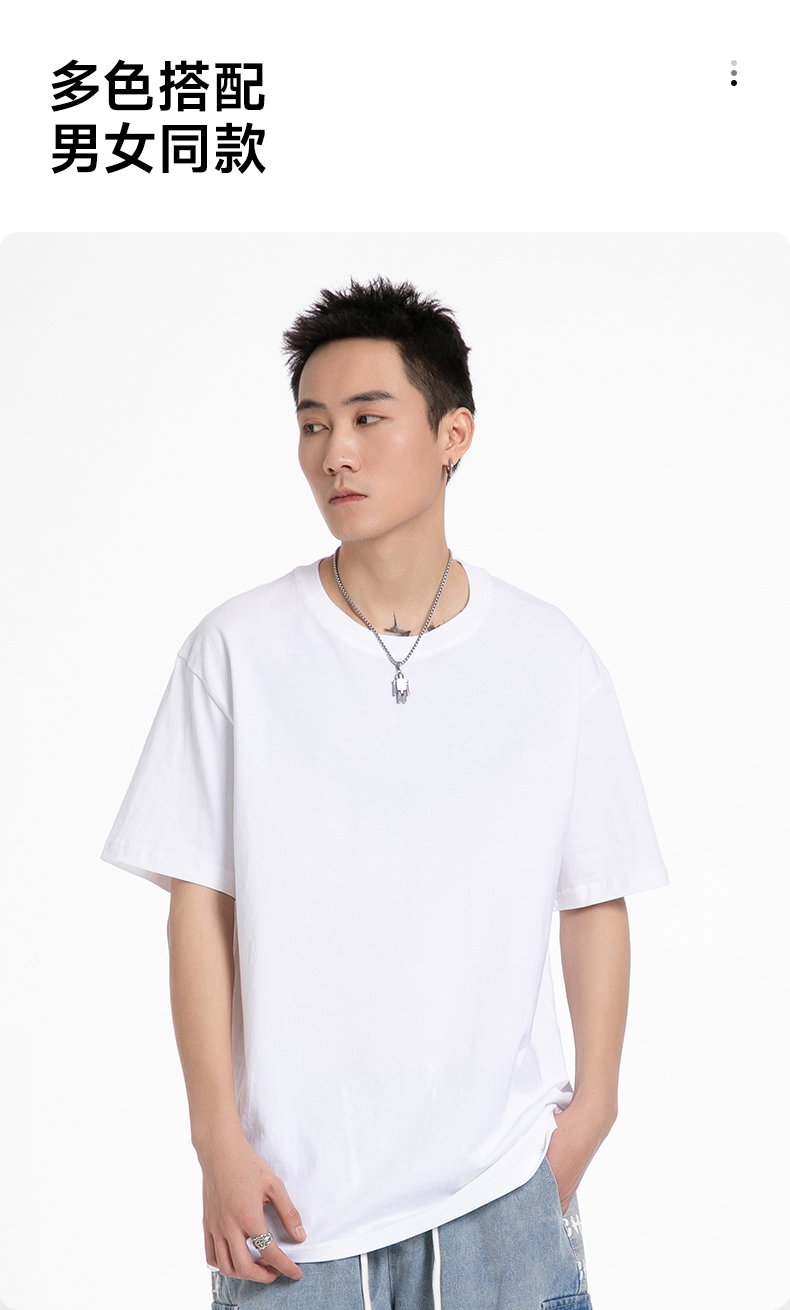 赤兔嗨购精梳长绒棉T恤宽松休闲男女同款24年新品正肩短袖01D
