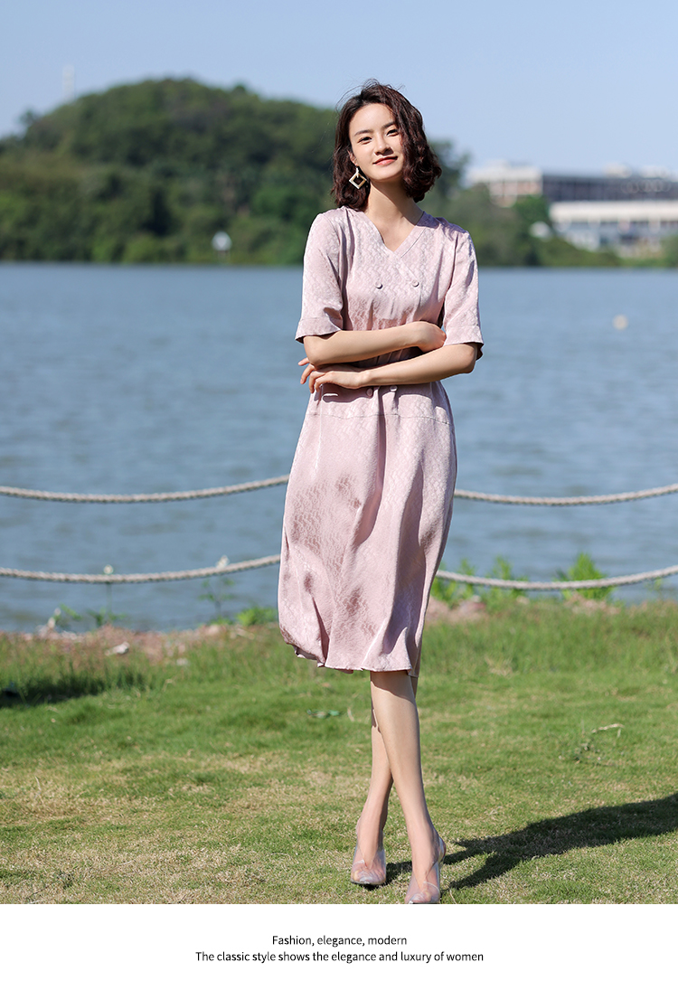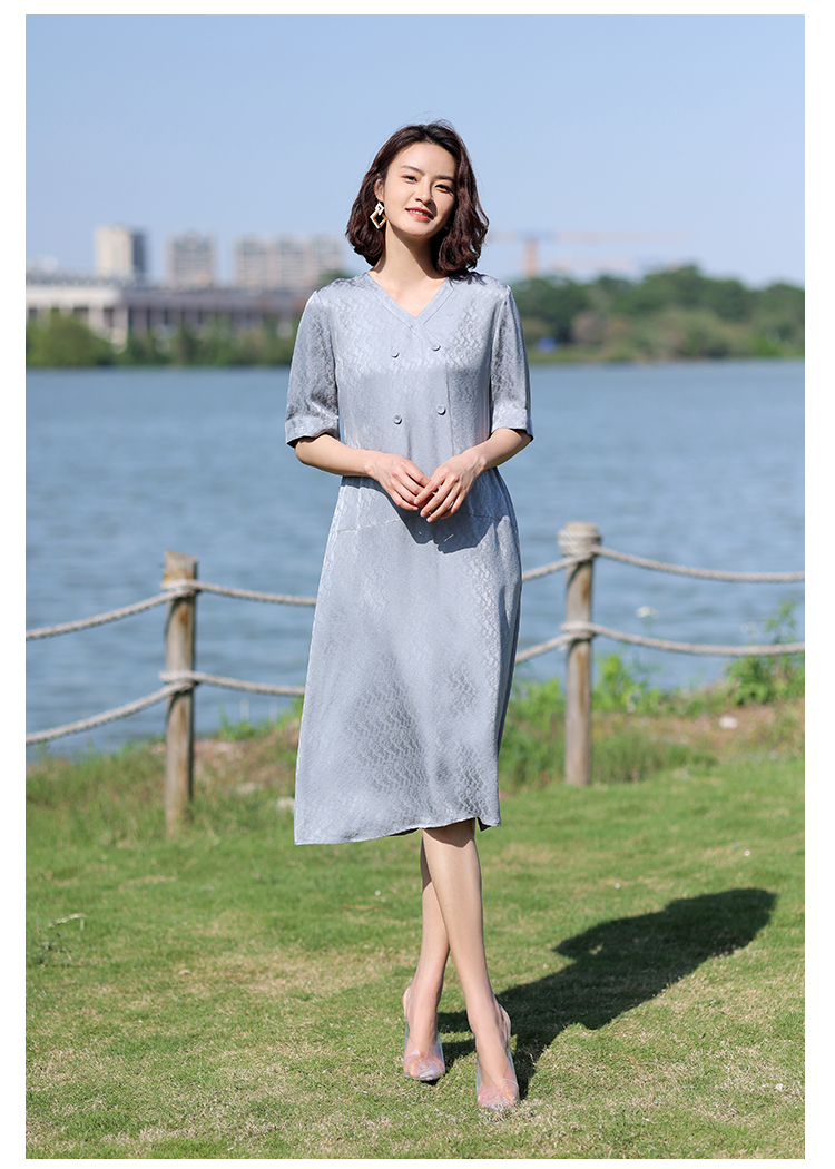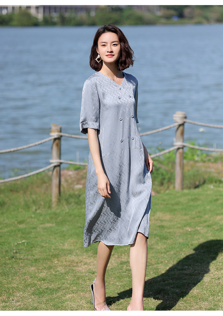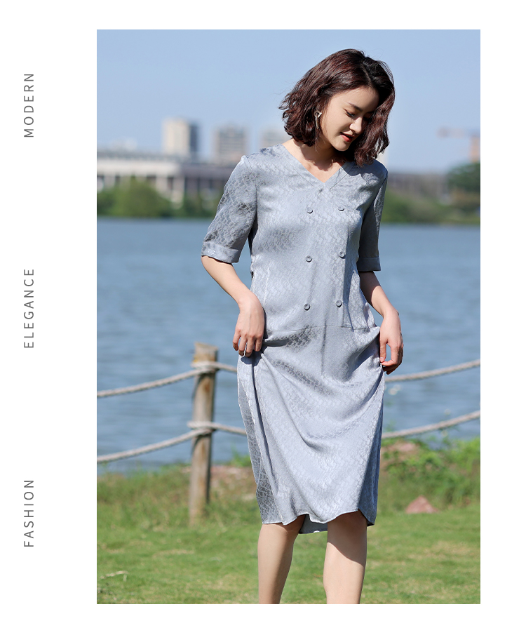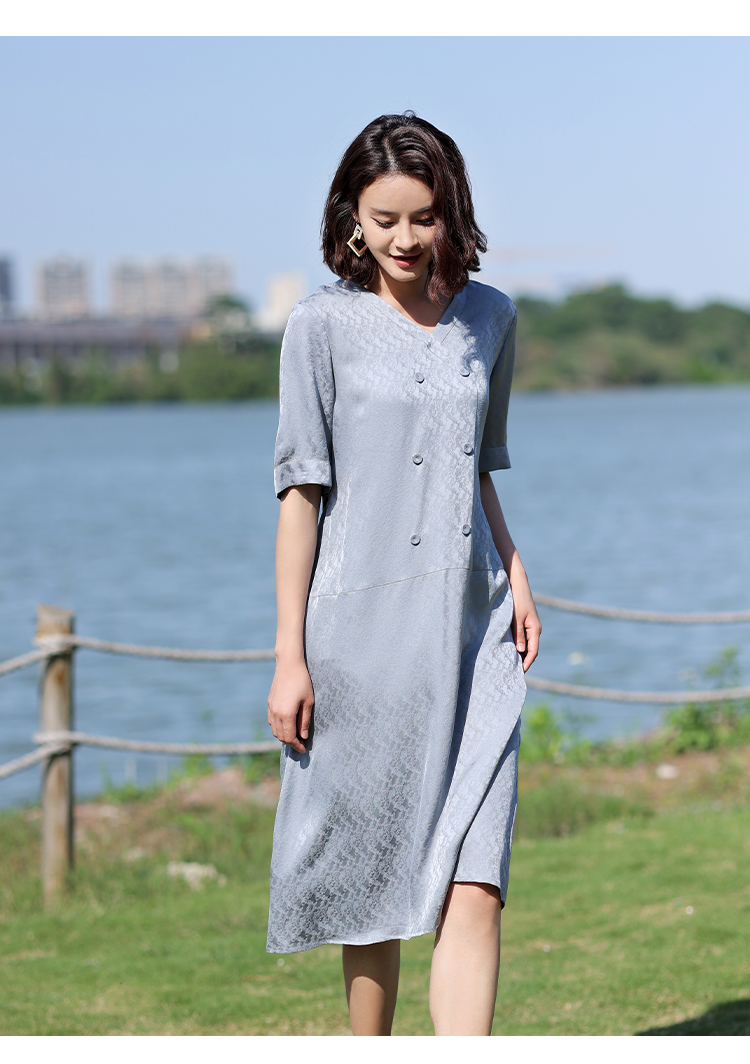 佐尔美2022夏季新款 100%桑蚕丝真丝提花和服绸连衣裙女E12LS28