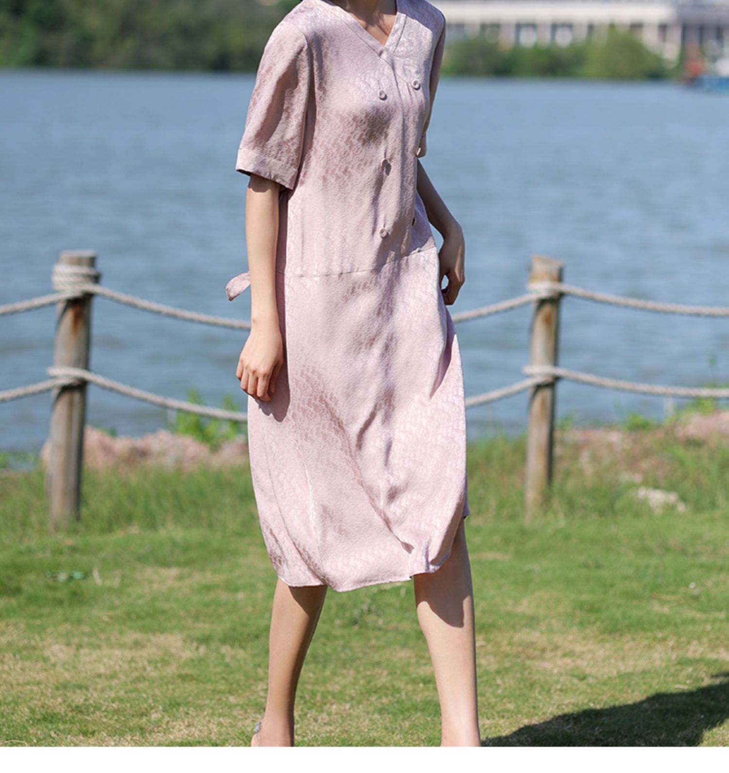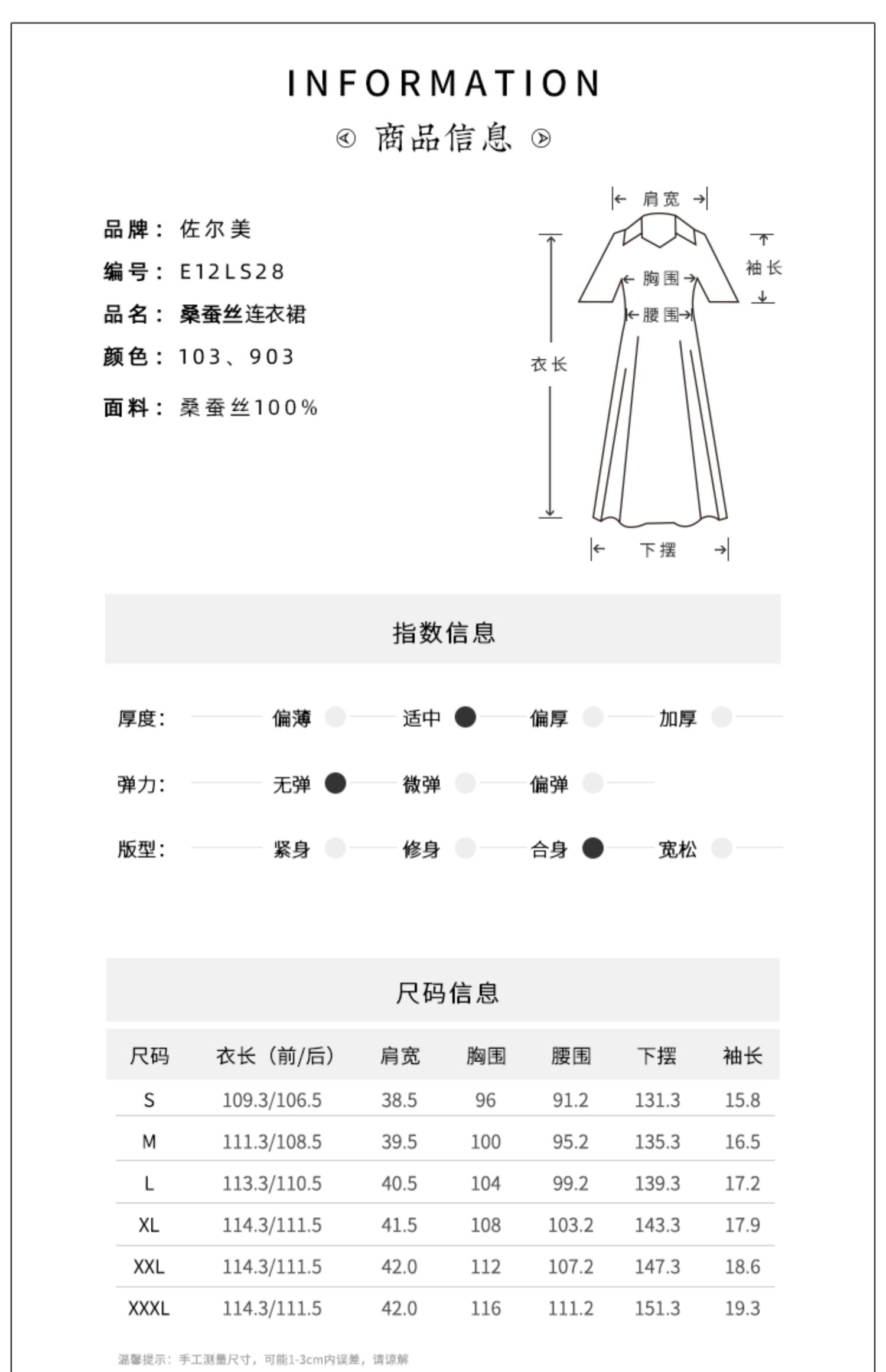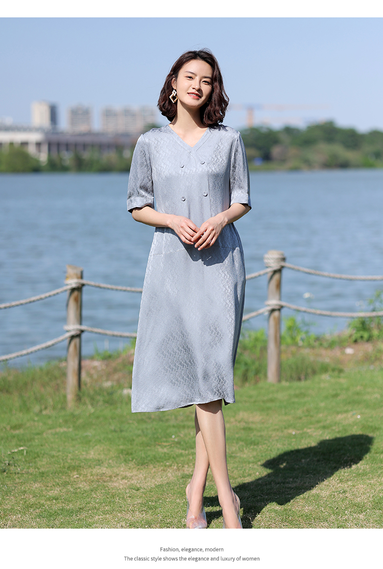 佐尔美2022夏季新款 100%桑蚕丝真丝提花和服绸连衣裙女E12LS28