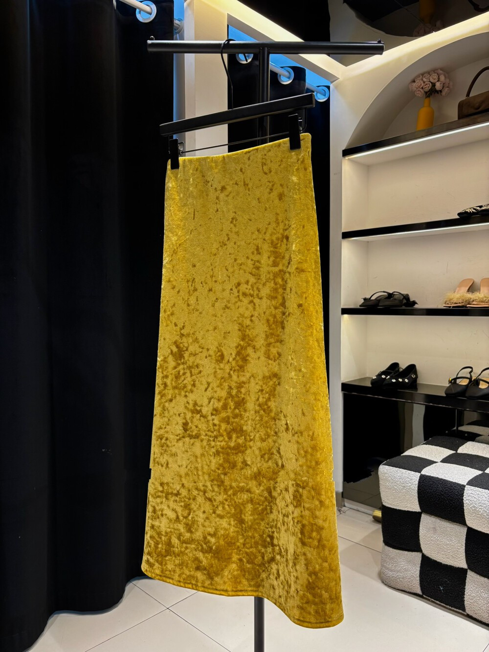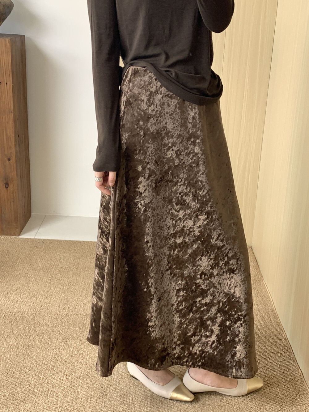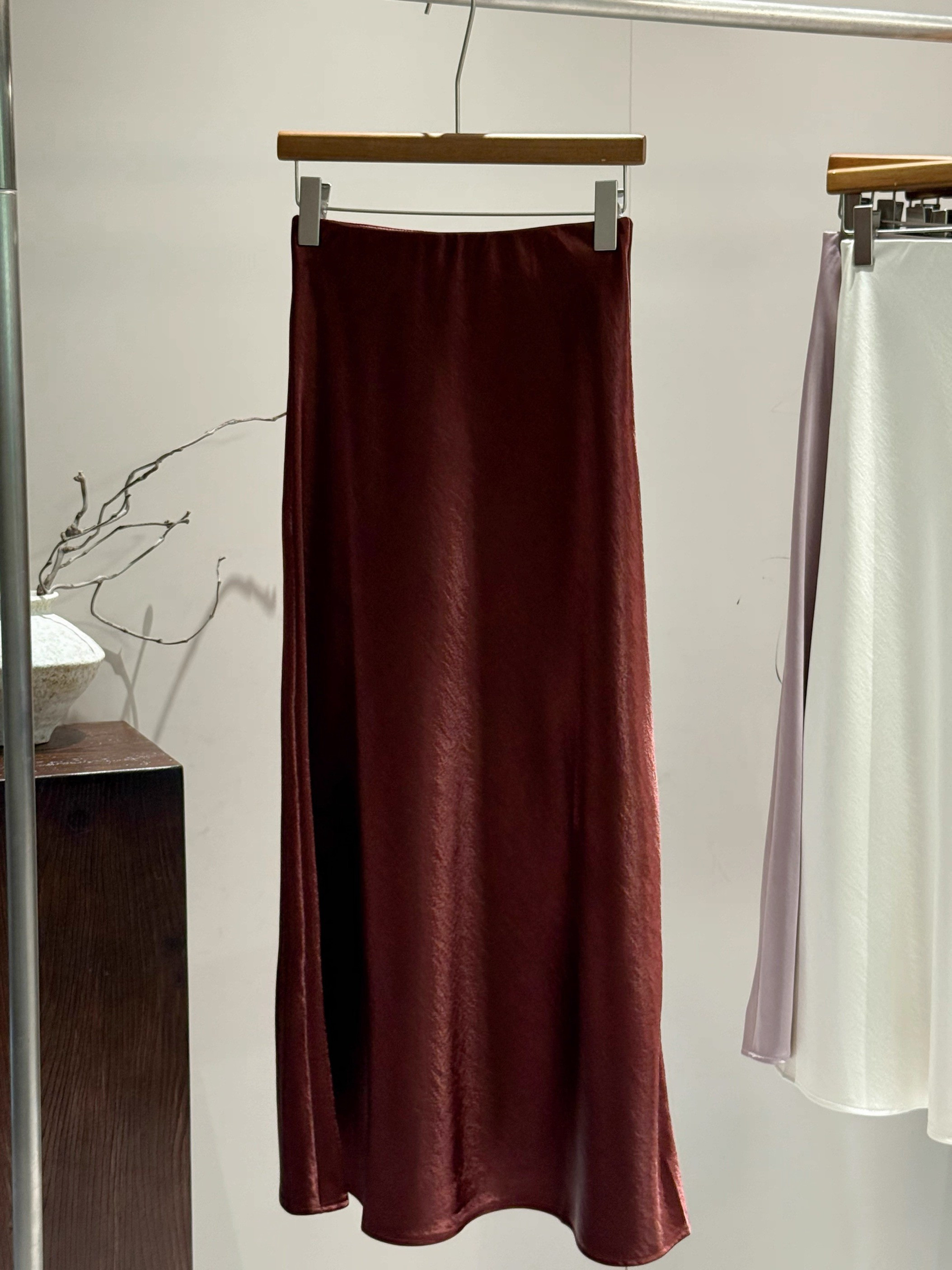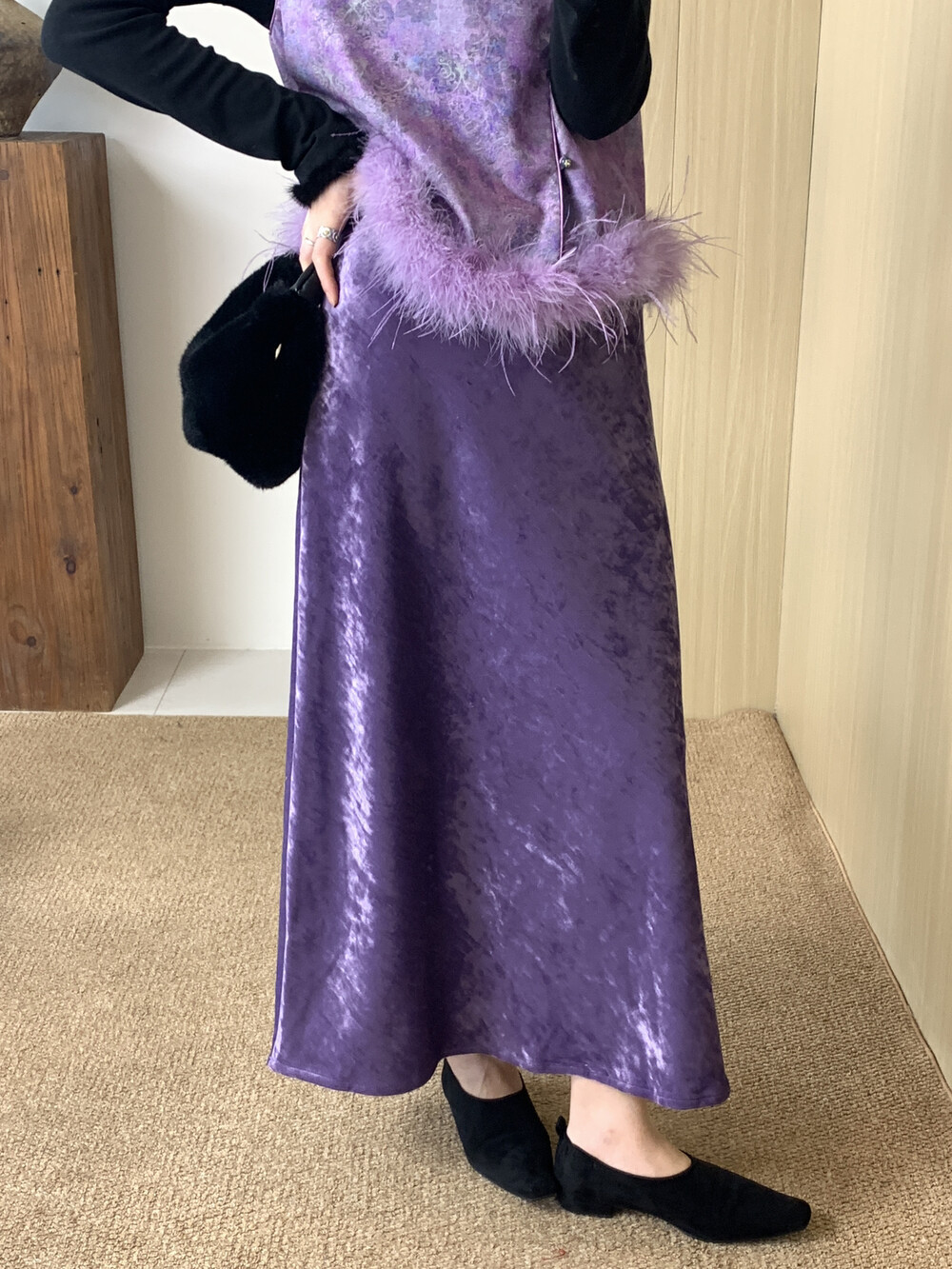 新中式国风钻石绒真丝绒半身裙AUC011505:黑色,杏色,黄色,咖色,藕粉,蓝紫