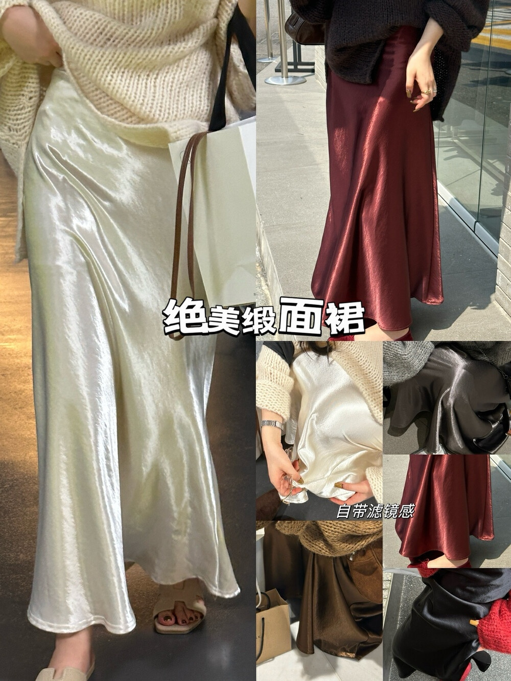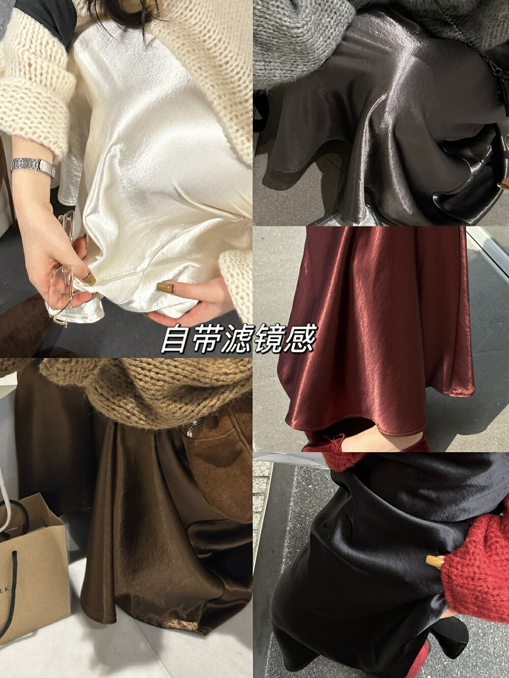 款式介绍 🔺款式5-国风加厚鎏金缎面醋酸珠光半裙 ✅鎏金珠光缎面材质,加厚,整条非常厚实 且很垂坠,又因厚度有了一定的支撑,不会显胖显肚子,不起静电,透气性好 ✅版型遮垮显瘦,A摆鱼尾裙裙型,优雅大气 ✅腰头内置橡筋设计,简约,舒服 ✅颜色很丰富,搭配不同款式的马甲都能选得到 白色 黑色 粉色 酒红 紫色 黄色 咖色 棕色 灰色