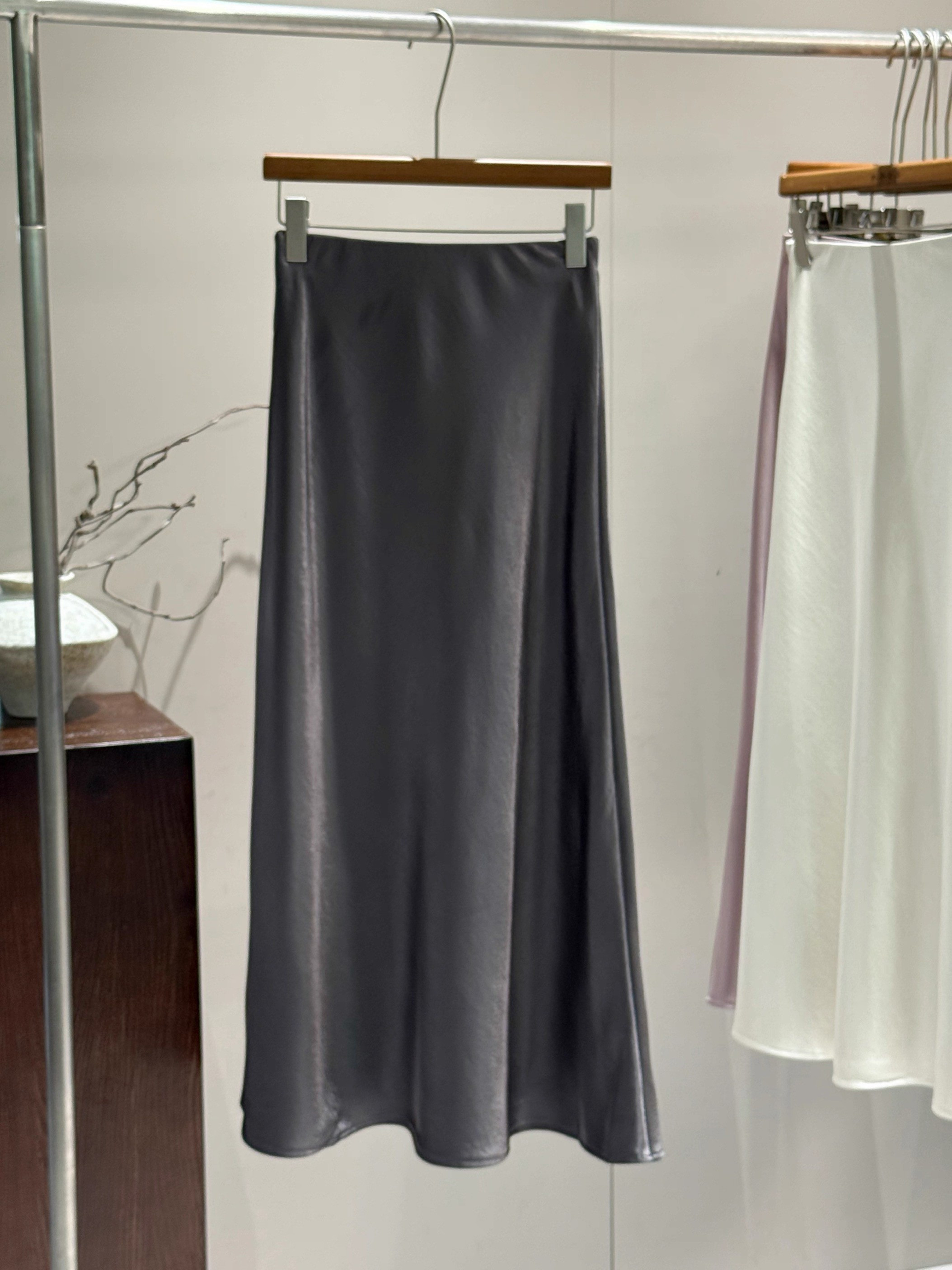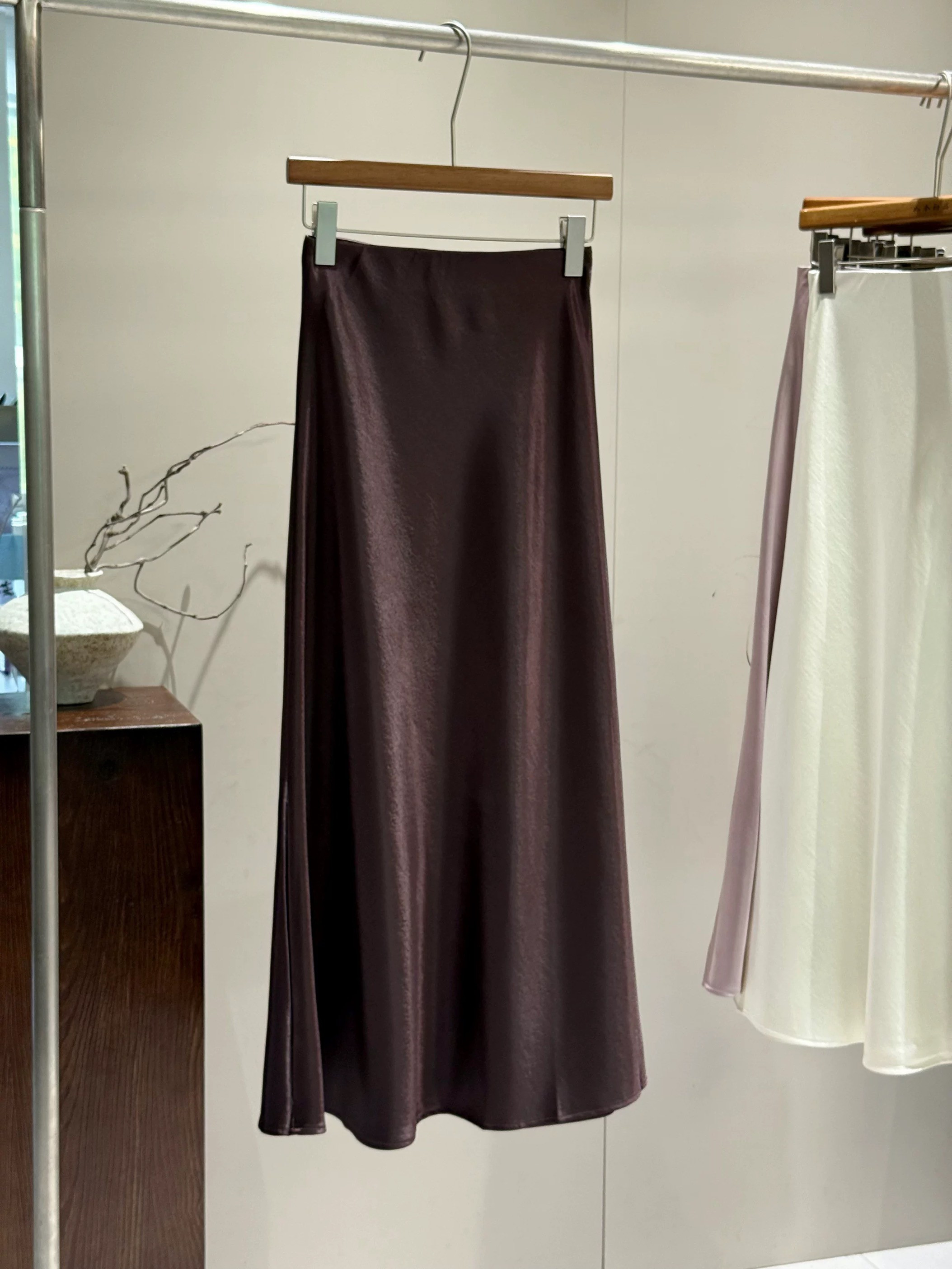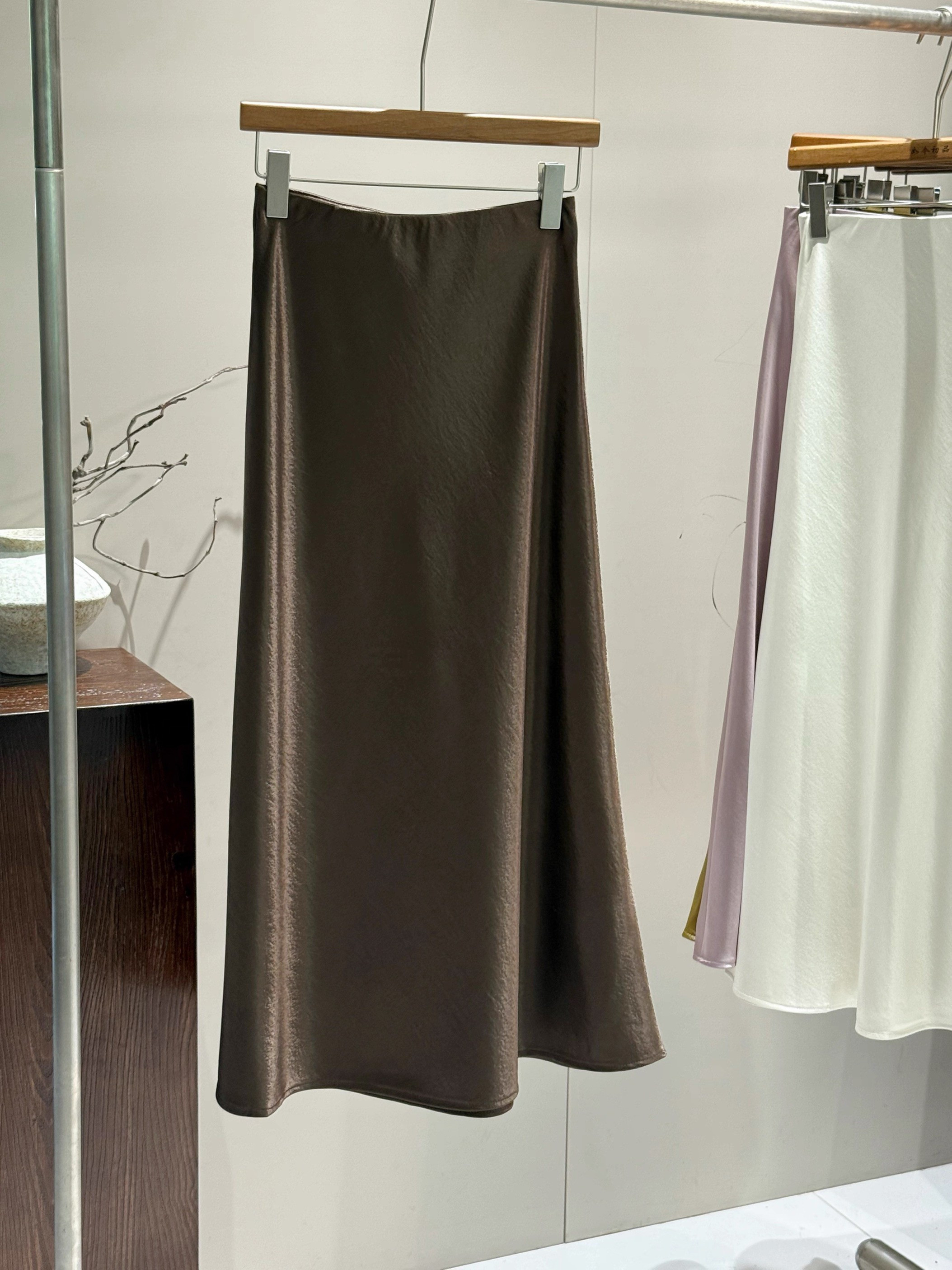 国风加厚鎏金缎面醋酸珠光半裙AUC011504:白色,黑色,粉色,酒红,紫色,黄色,咖色,棕色,灰色