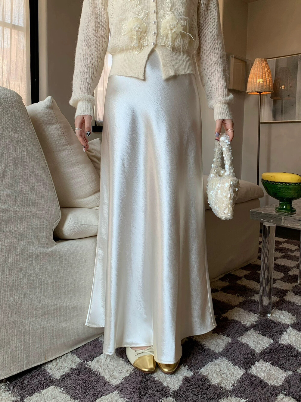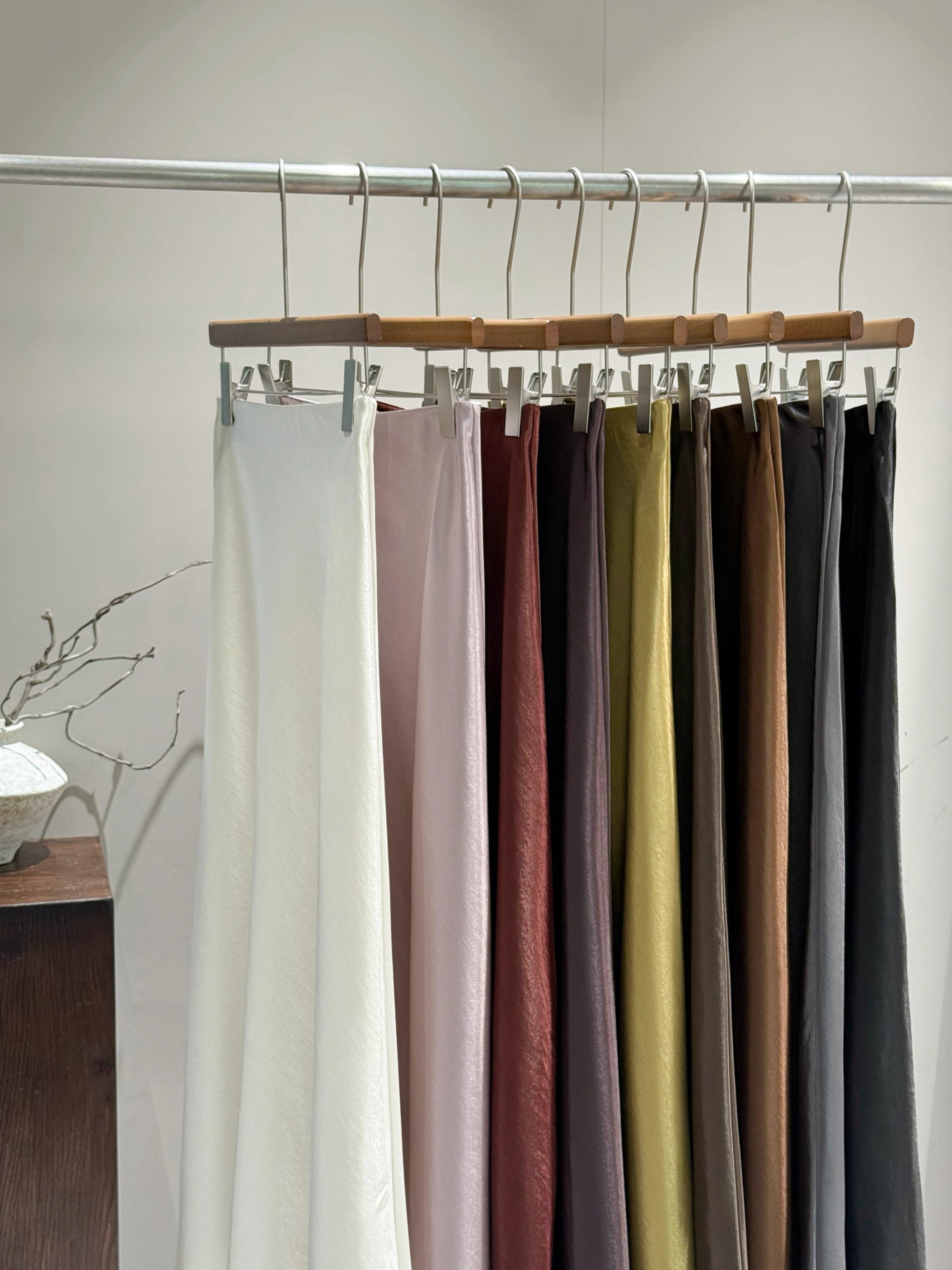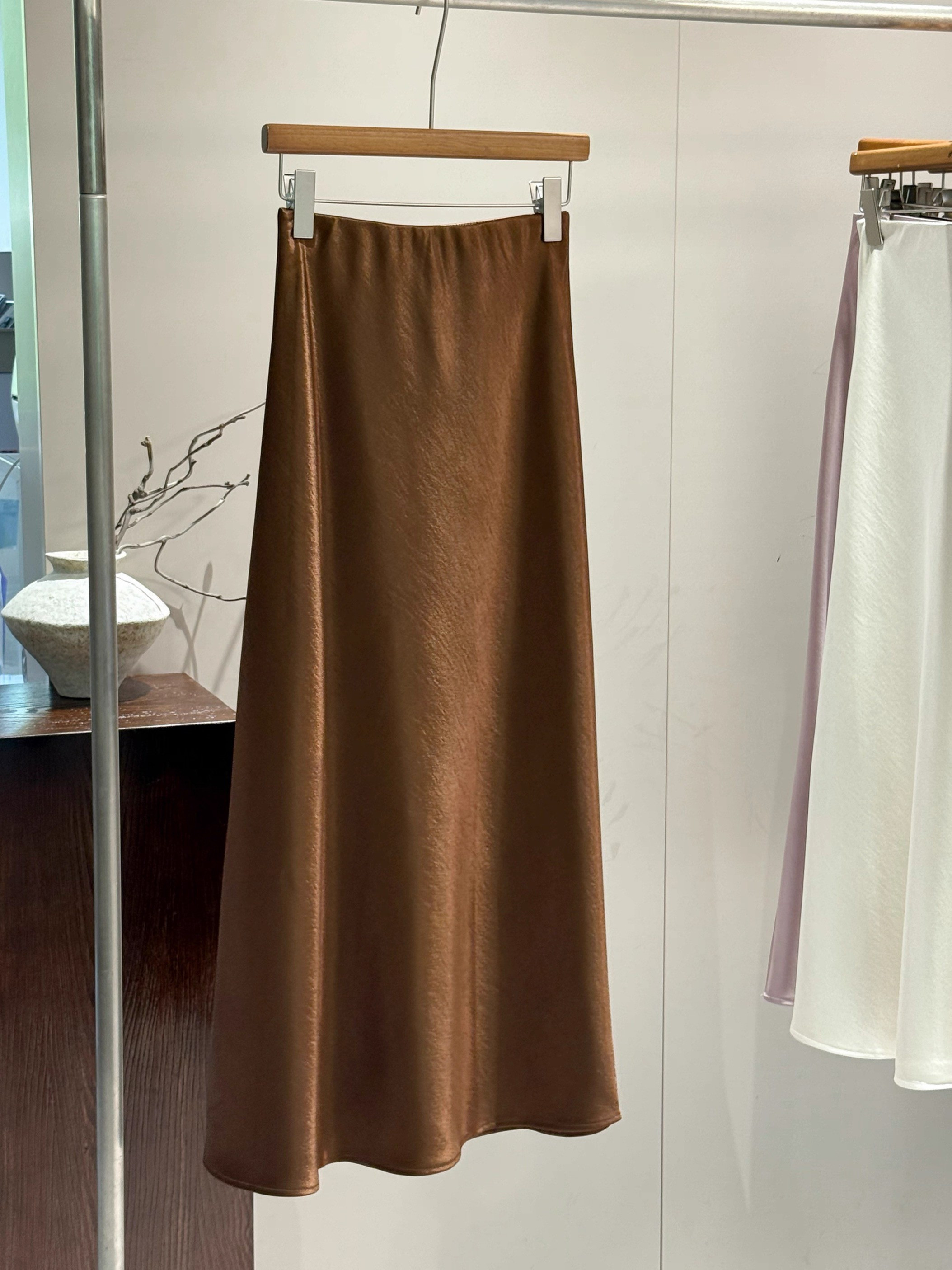 国风加厚鎏金缎面醋酸珠光半裙AUC011504:白色,黑色,粉色,酒红,紫色,黄色,咖色,棕色,灰色