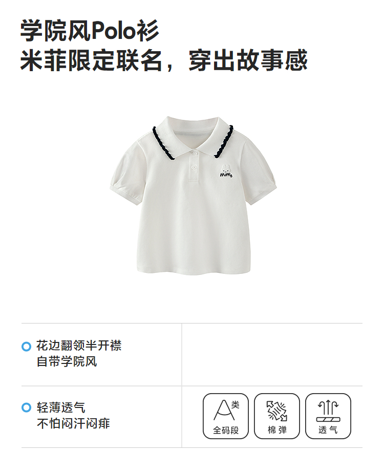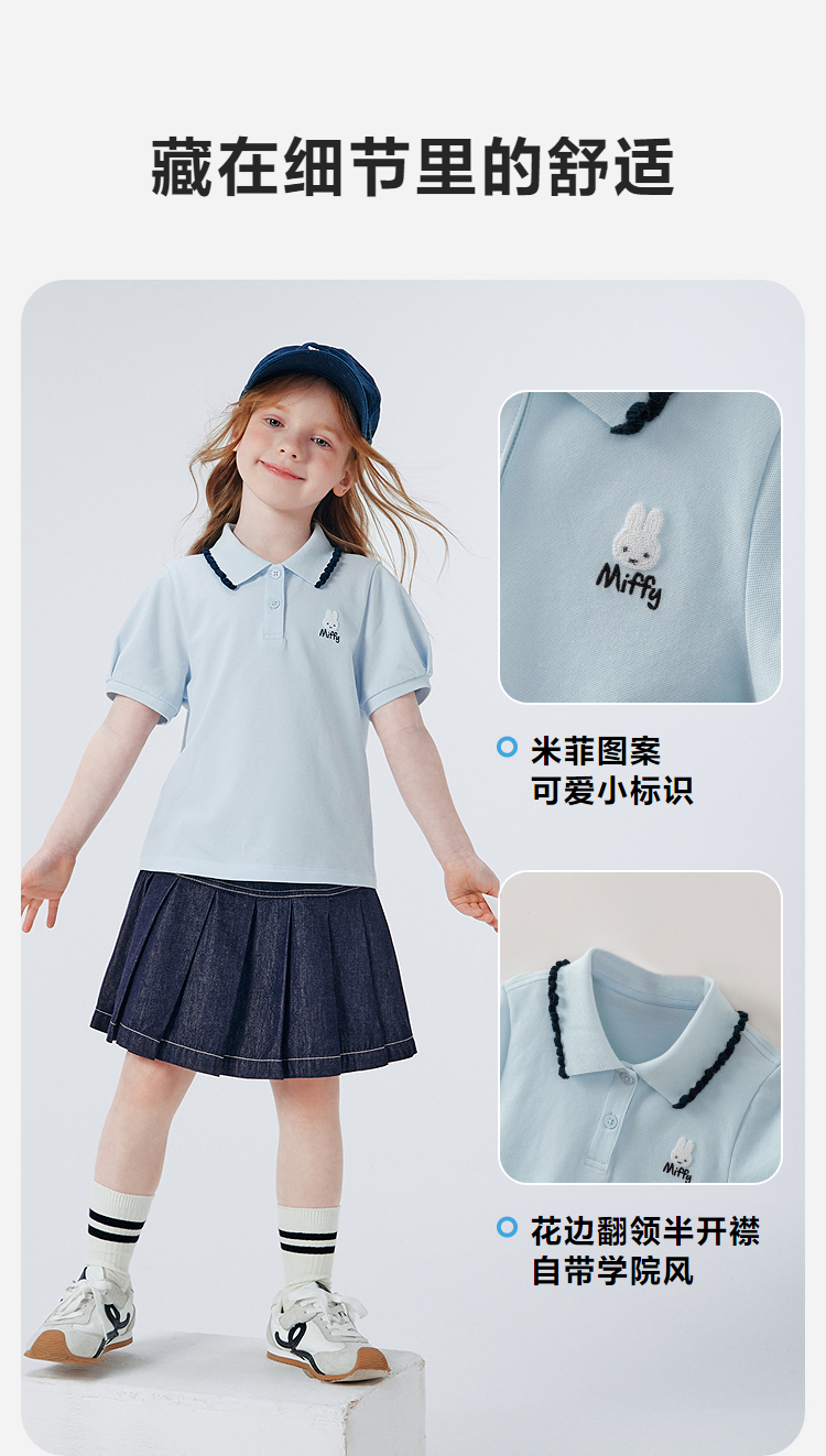 [米菲联名]迷你巴拉巴拉男女童短袖T恤棉弹透气学院Polo衫2026夏