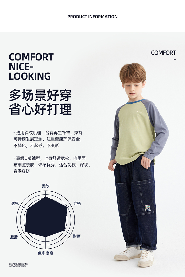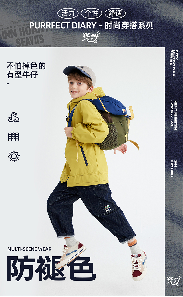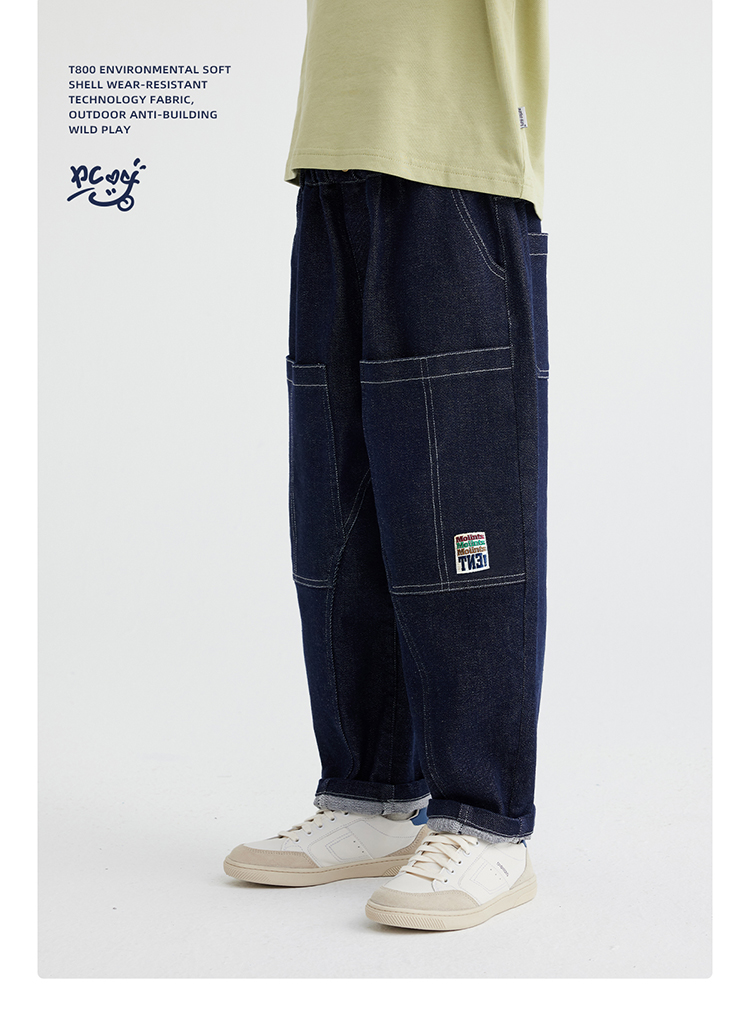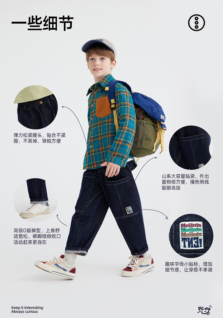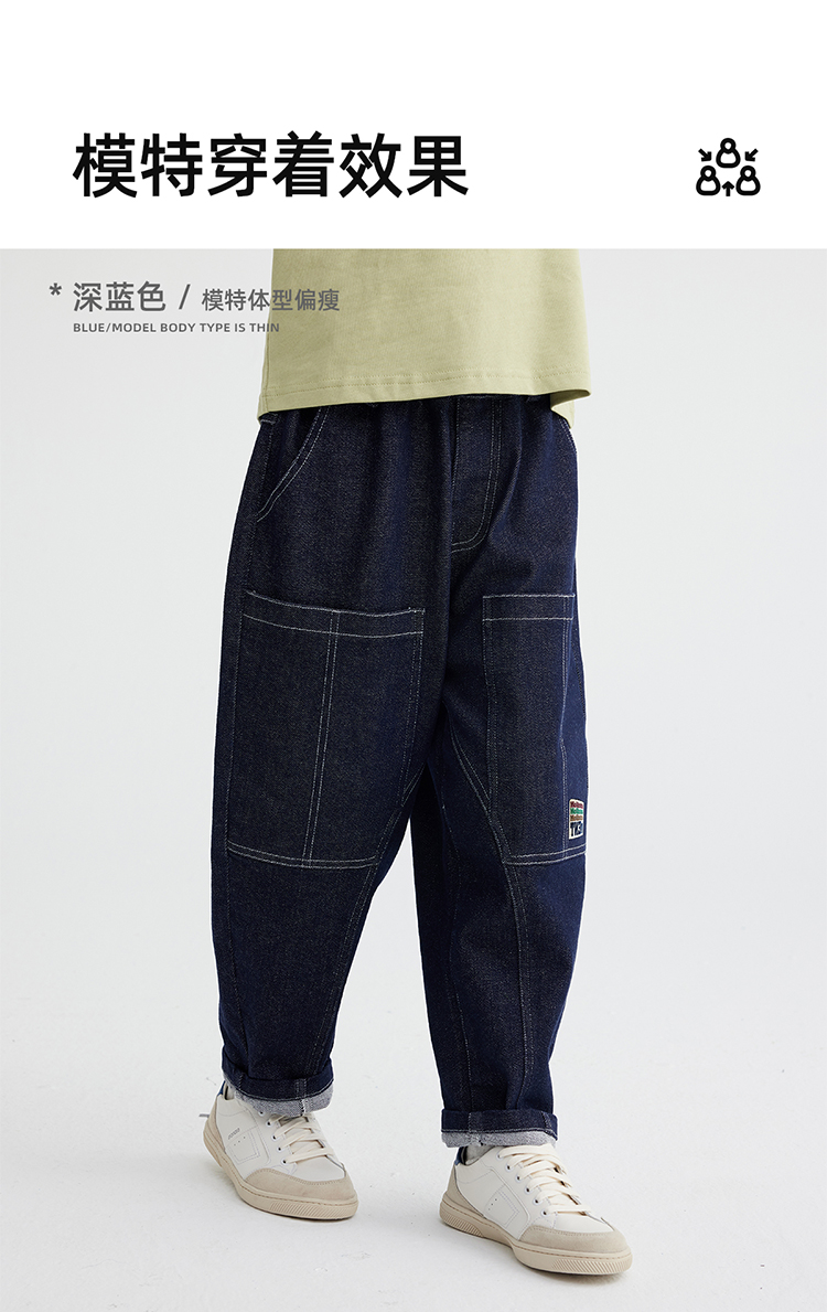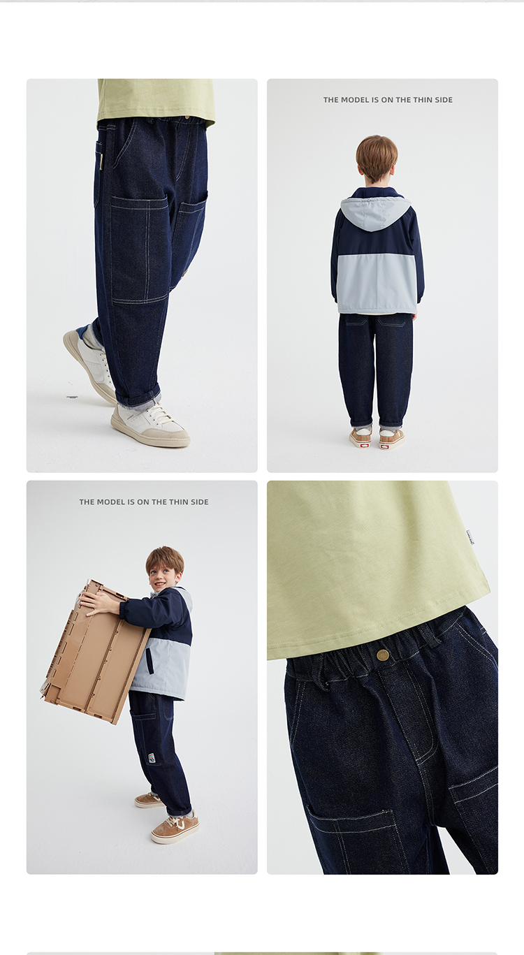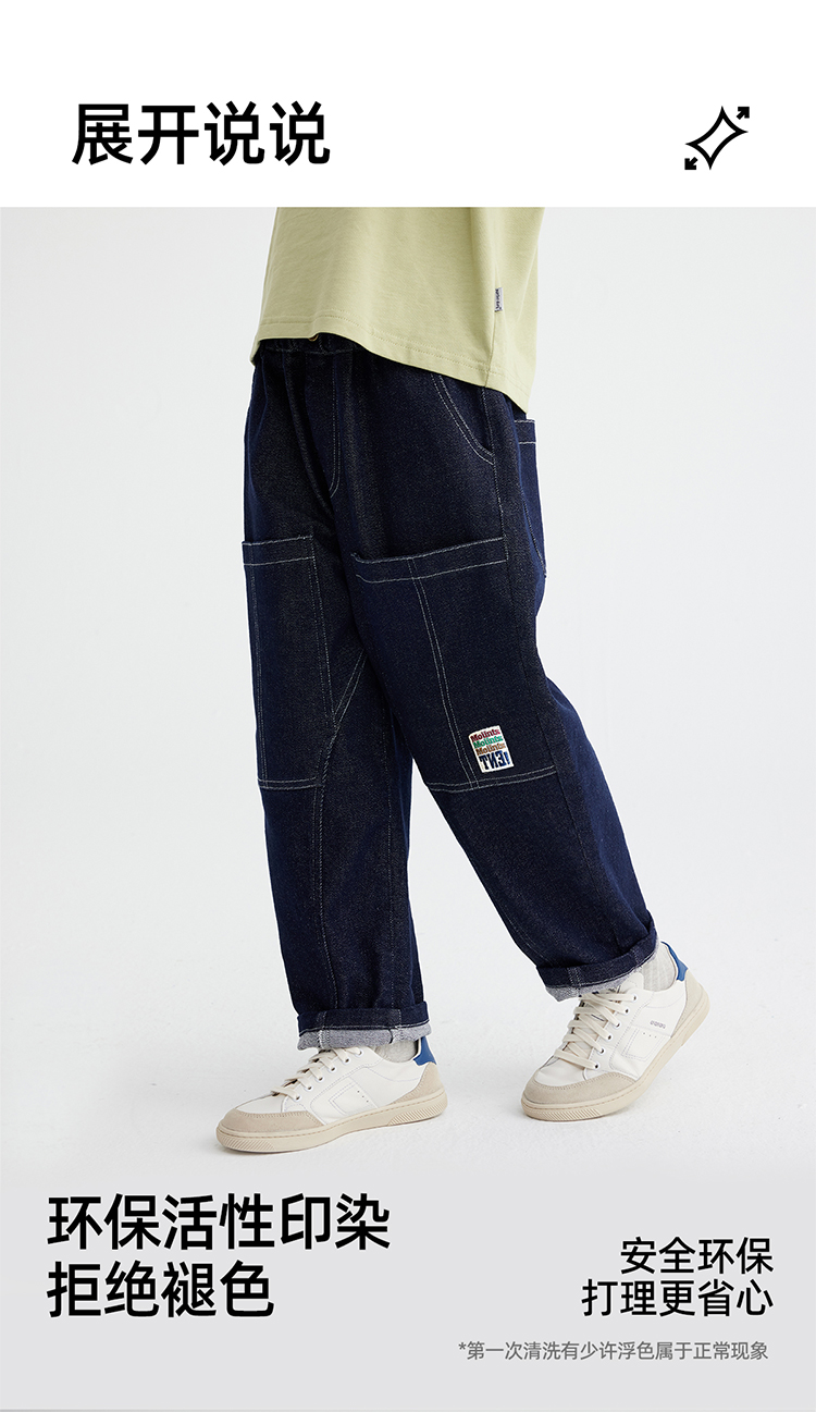 【不褪色直筒牛仔裤】儿童徽标休闲牛仔裤 PQK2415