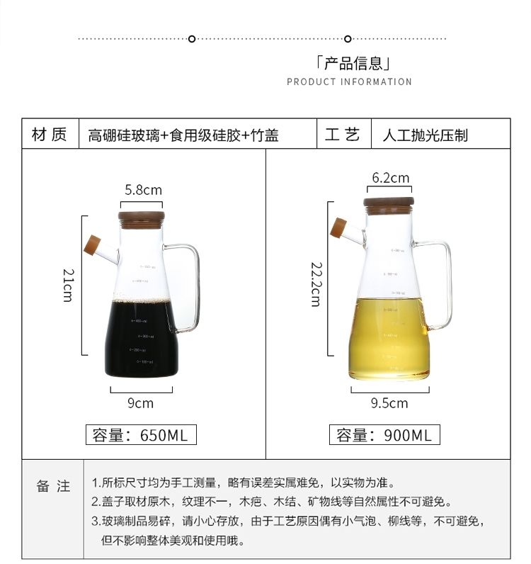 高鹏硅无铅透明耐热玻璃防侧漏油壶家用厨房用品大号酱油醋调味瓶