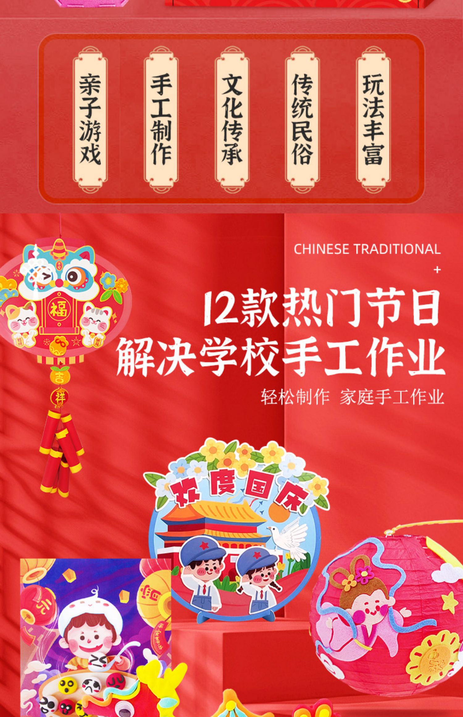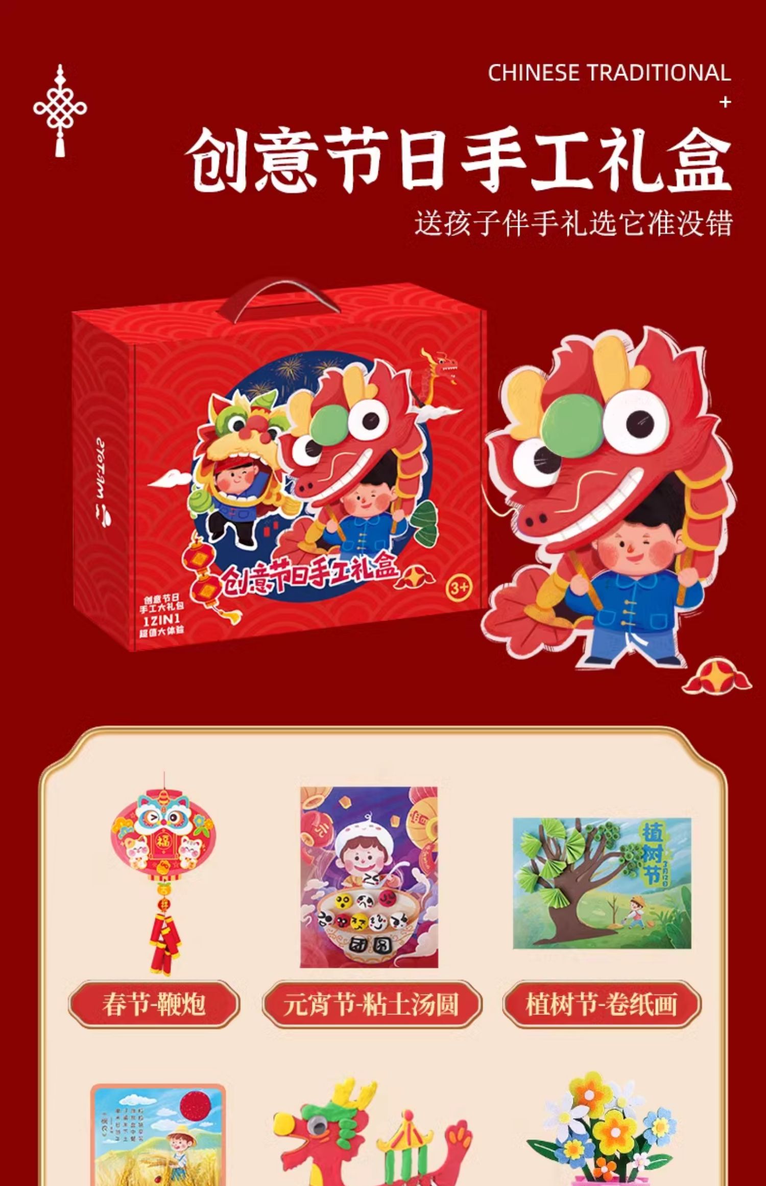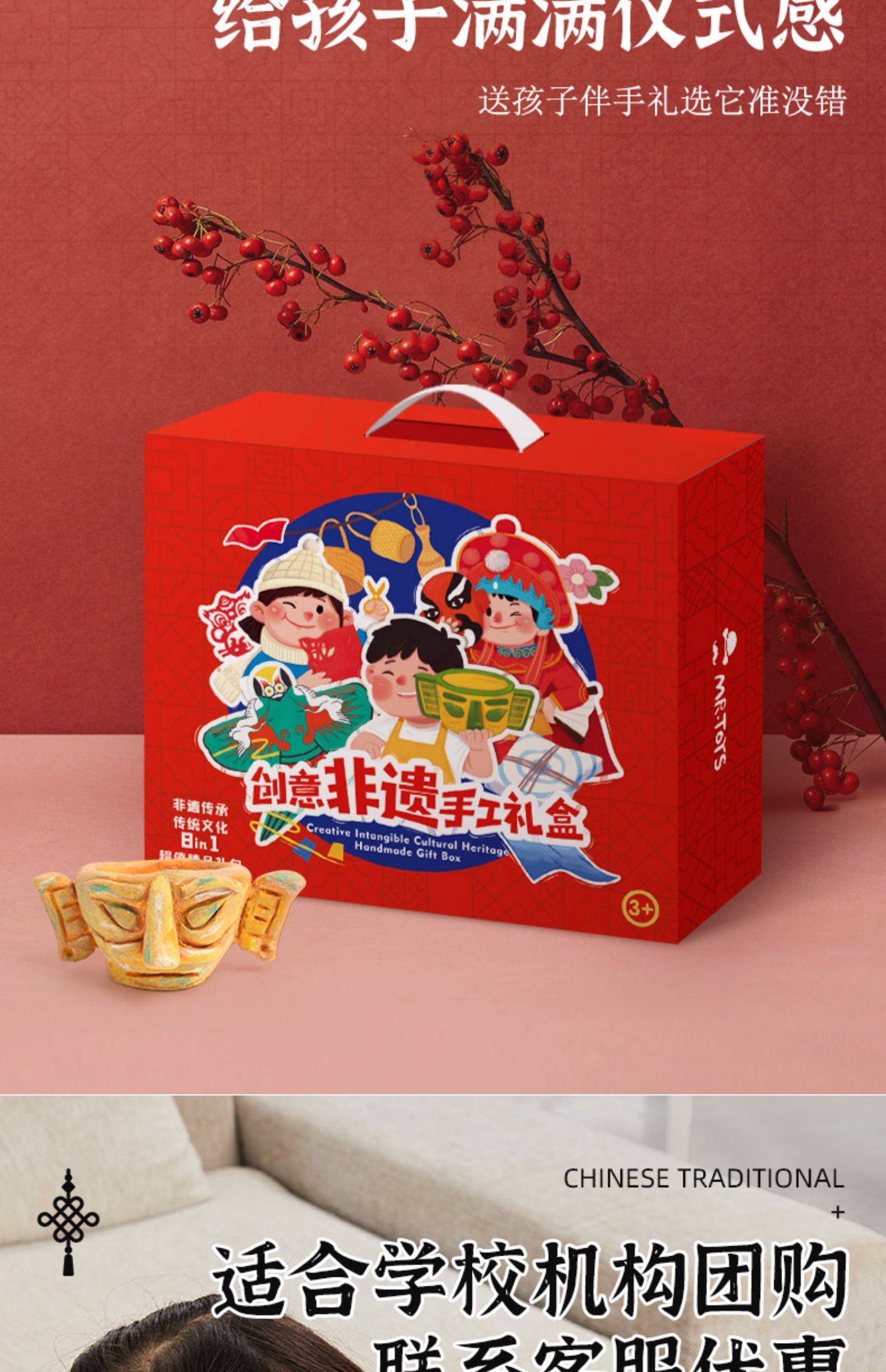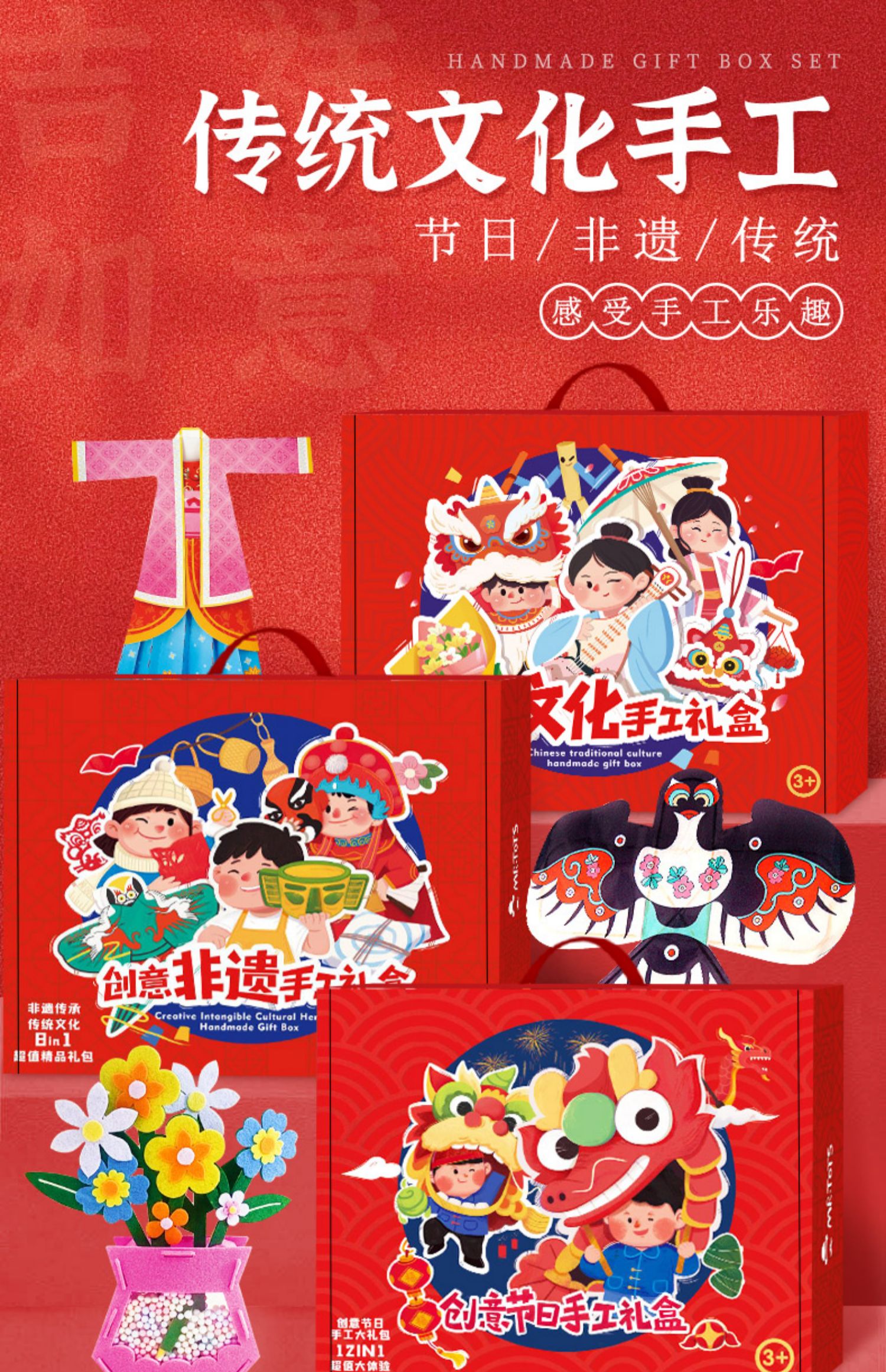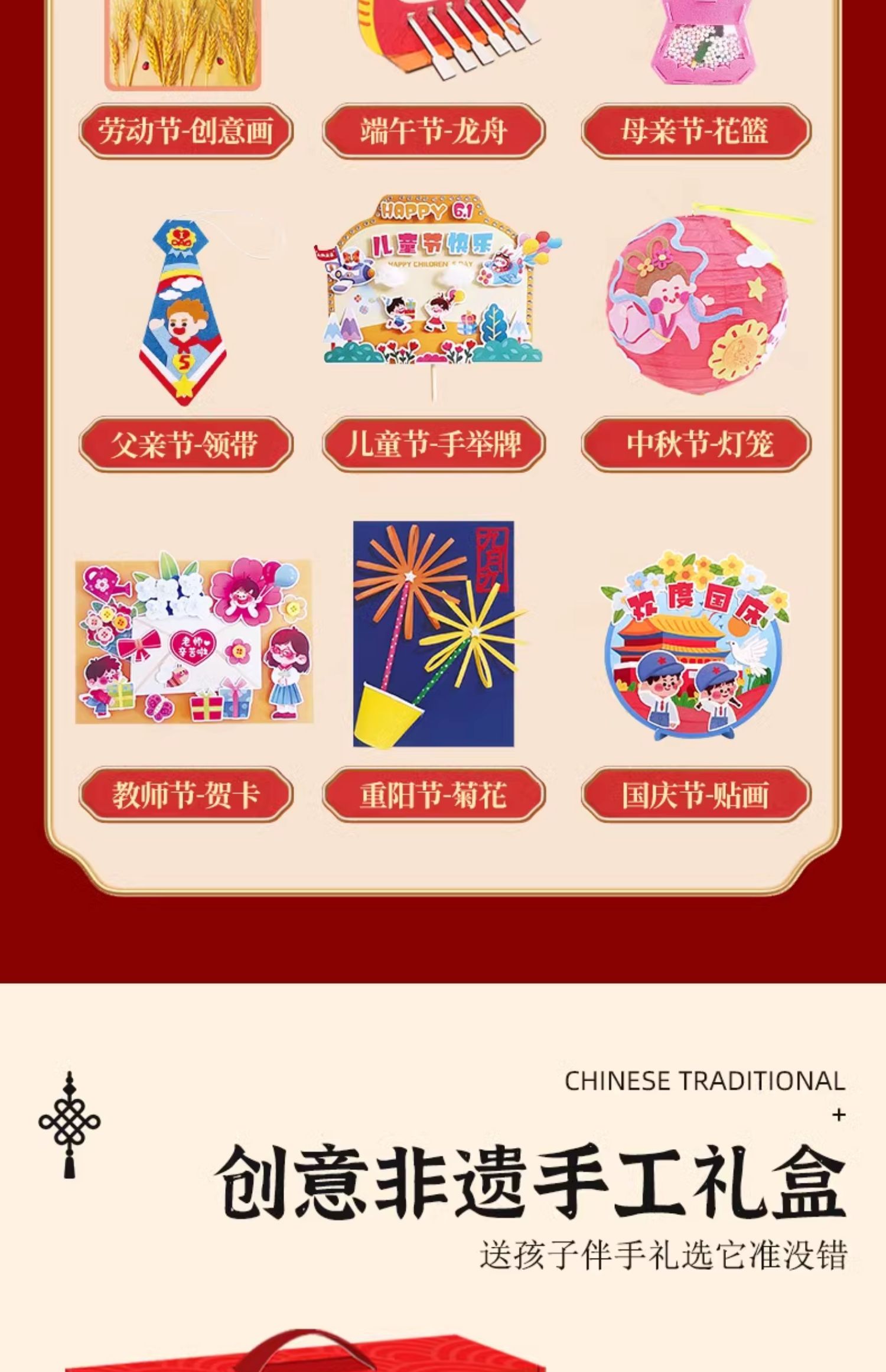 儿童节手工diy材料包礼盒非遗扎染窗花竹编绒花泥塑生日礼物玩具