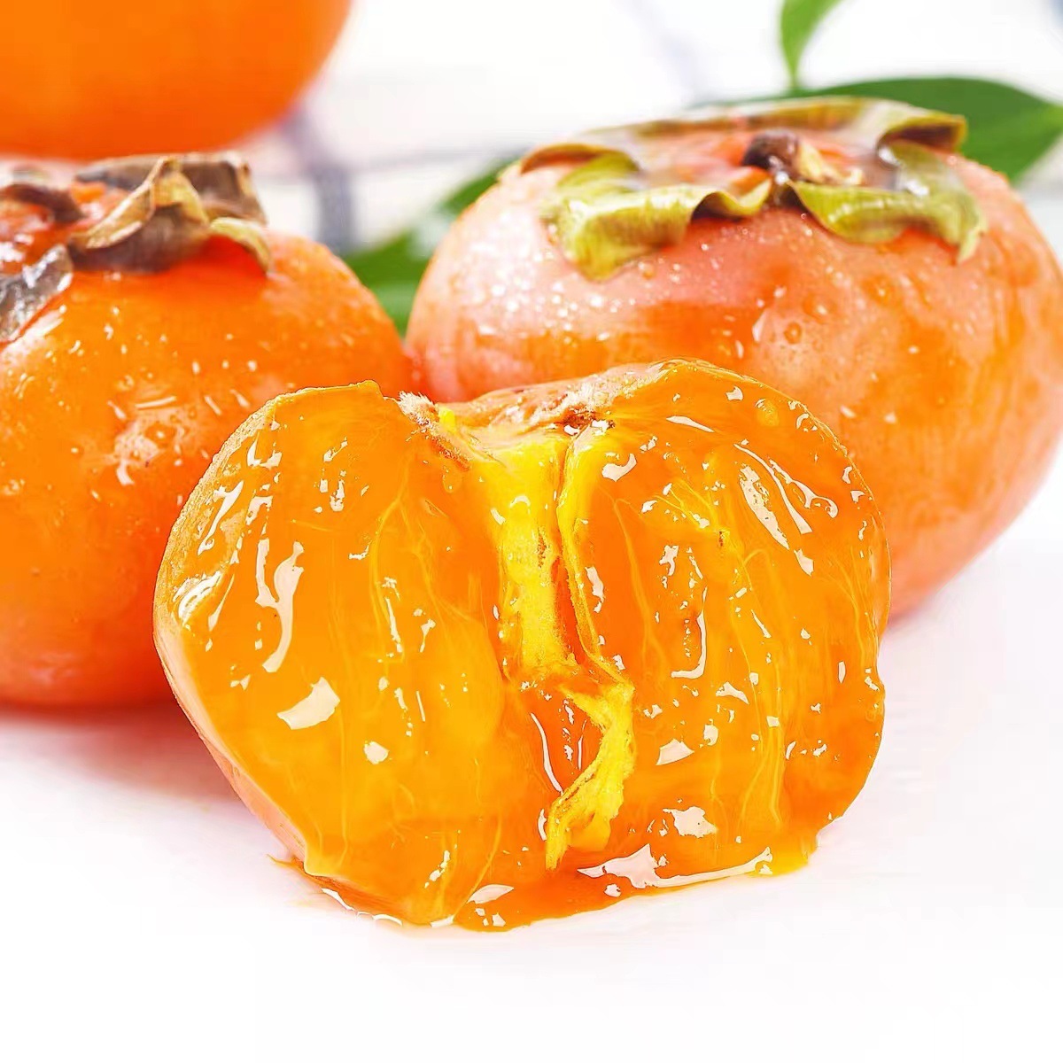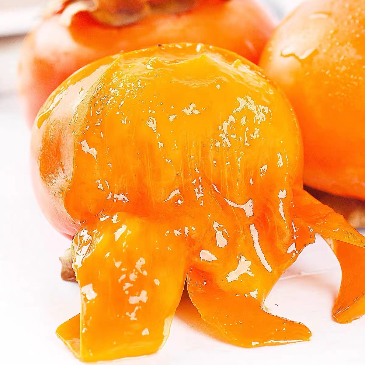 【临潼火晶柿子】饱满甜美,似糖心软,非巧克力脆。口感细腻,香甜可口,长安糖心软柿子非巧克力脆柿4斤新鲜水果