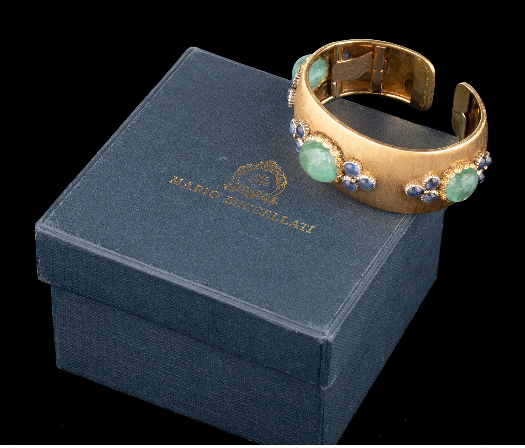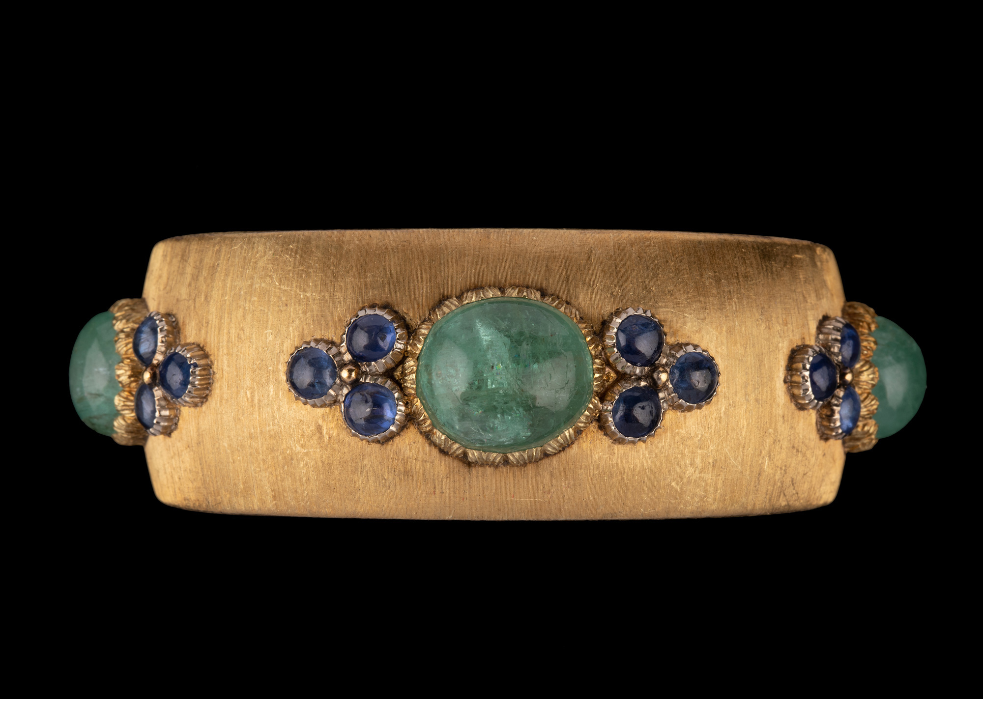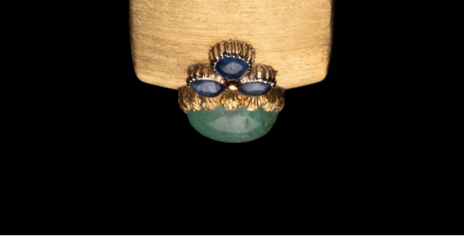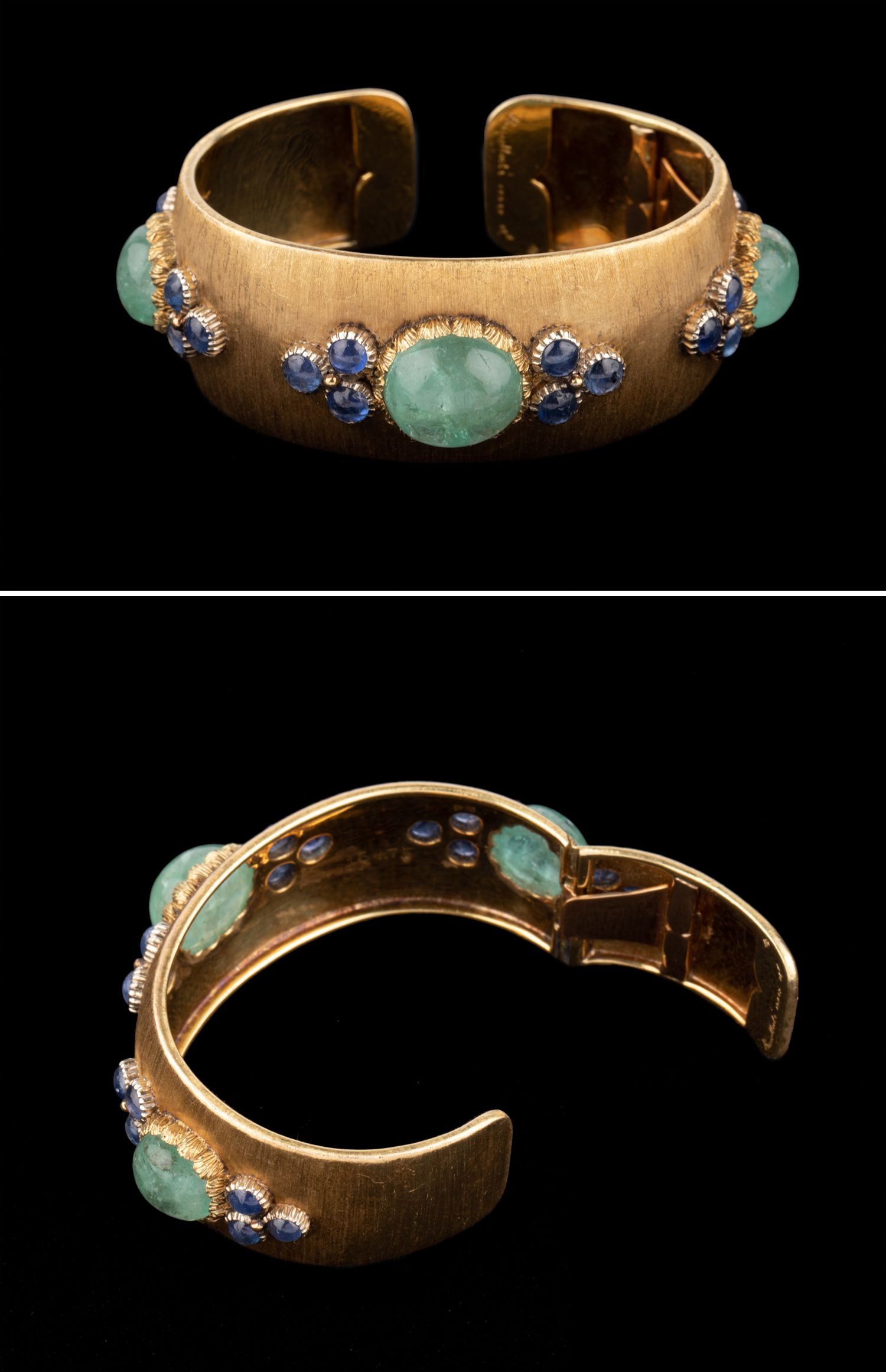 独角鹿西洋古董珠宝首饰意大利布契拉提18K金镶蓝宝石祖母绿手镯