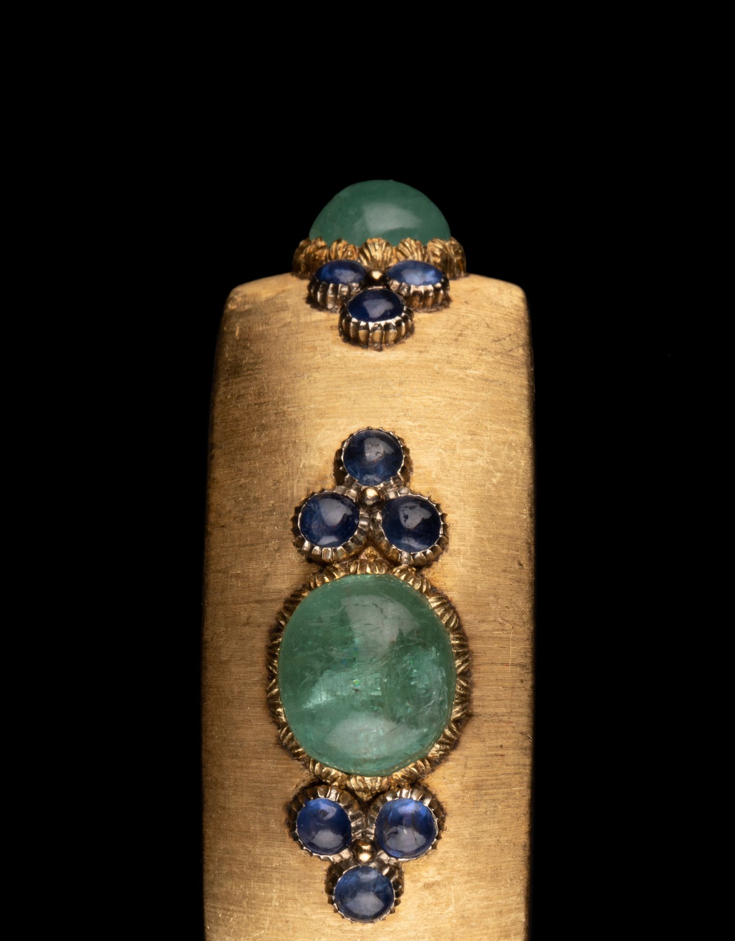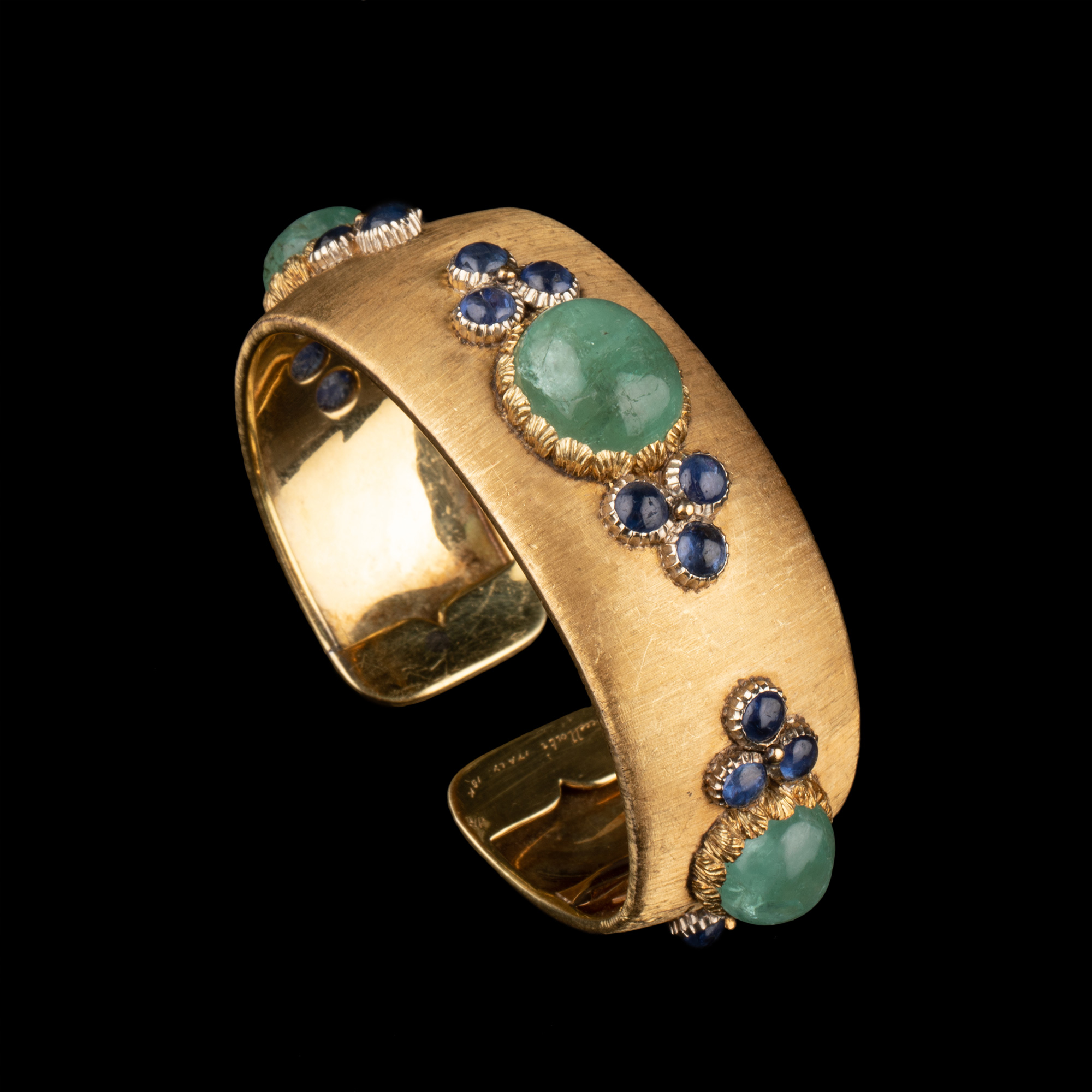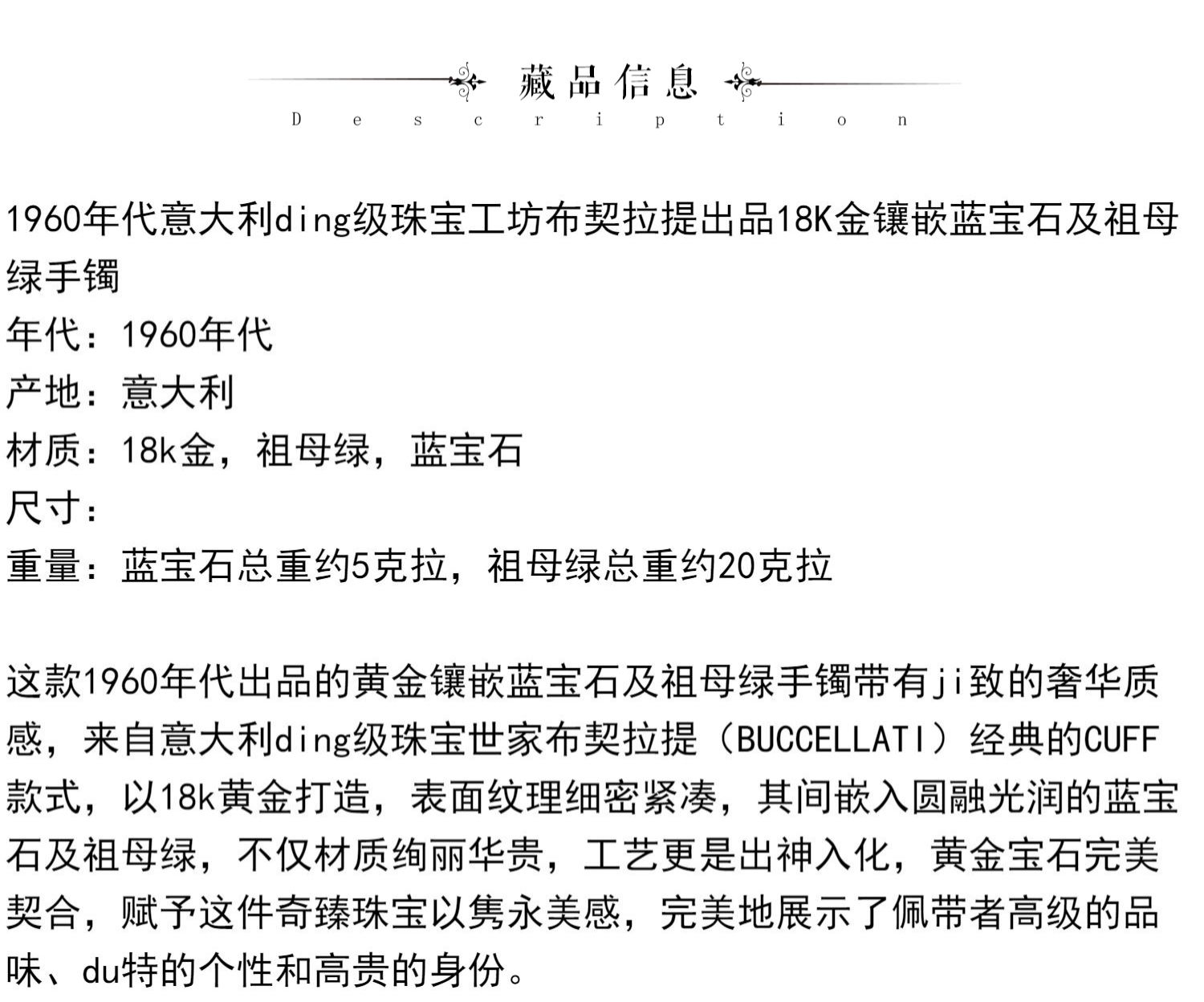 独角鹿西洋古董珠宝首饰意大利布契拉提18K金镶蓝宝石祖母绿手镯