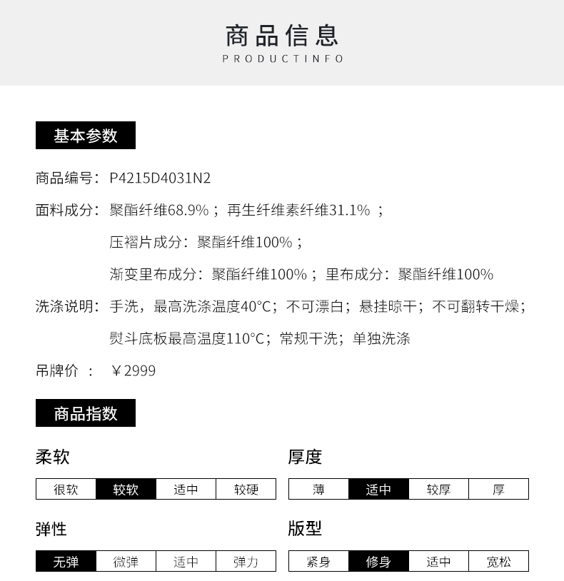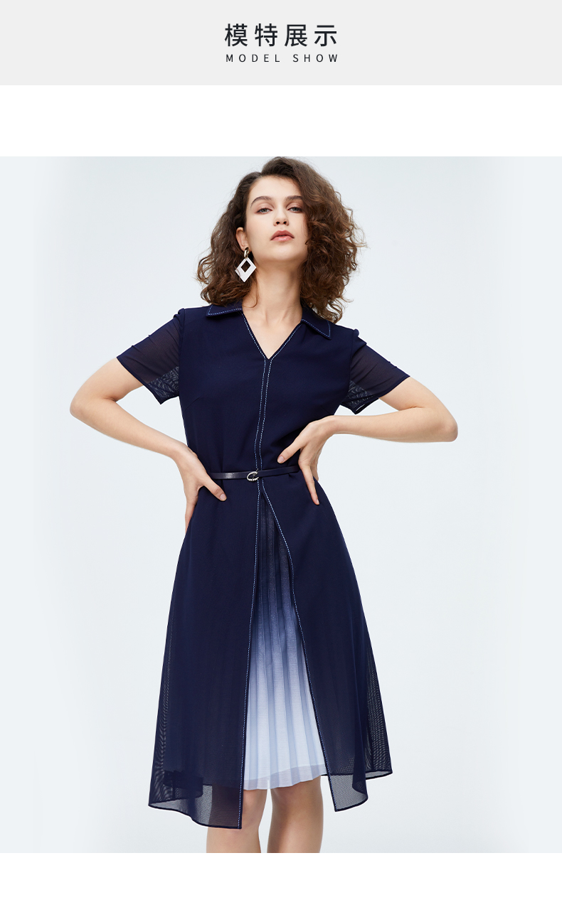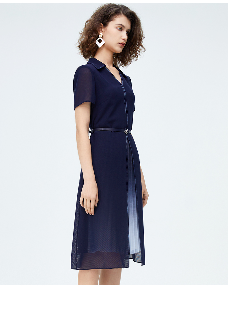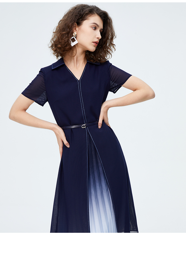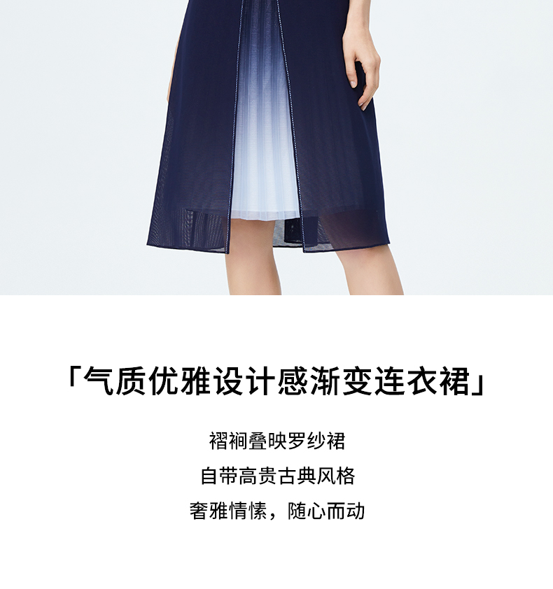 皮尔卡丹女装时尚渐变色修身假两件连衣裙P4215D4031N2