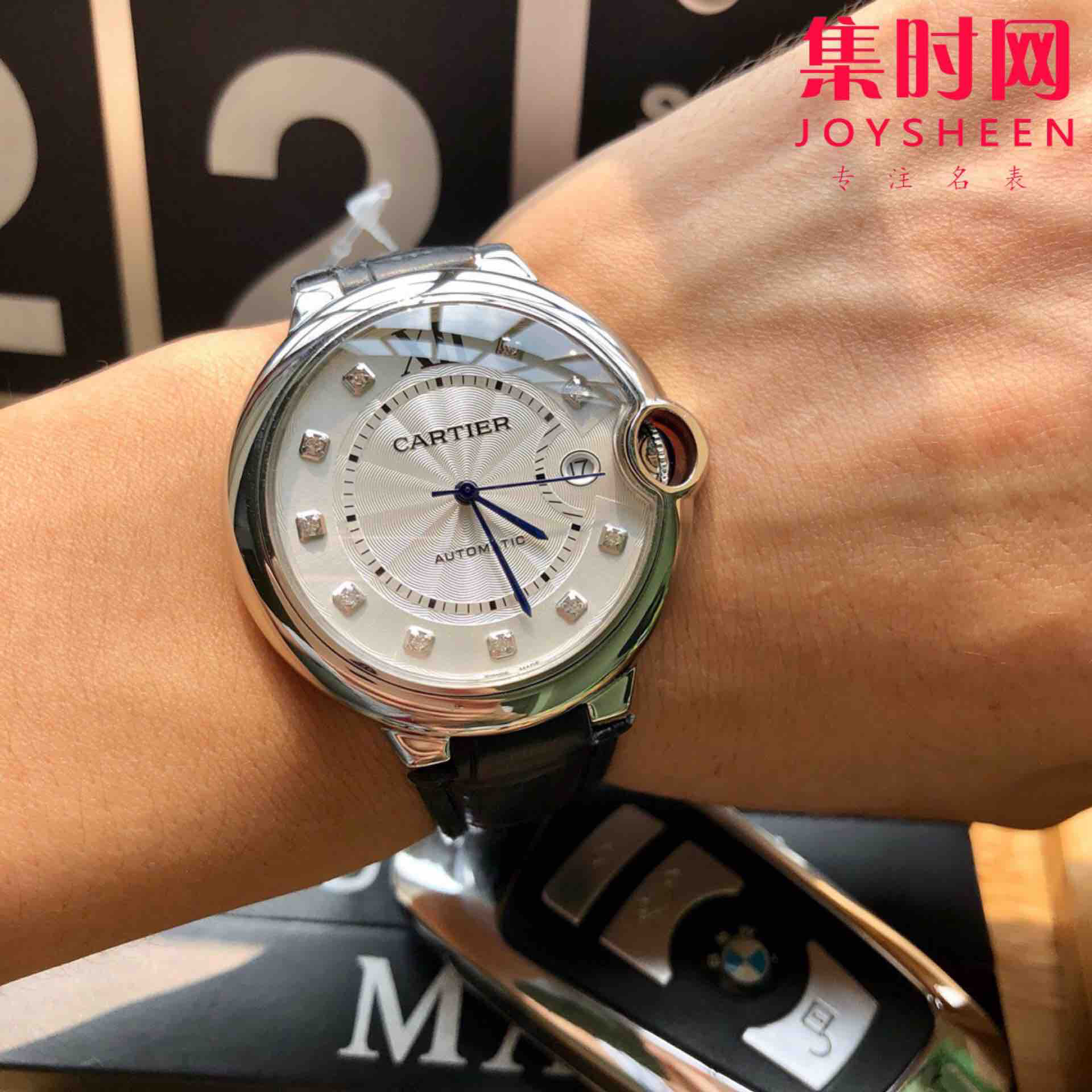 卡地亚蓝气球系列 男款大号42mm 316L精钢表壳,鱼眼蓝宝石镜面 搭载定制全自动机械机芯 意大利小牛皮表带 原装折叠扣