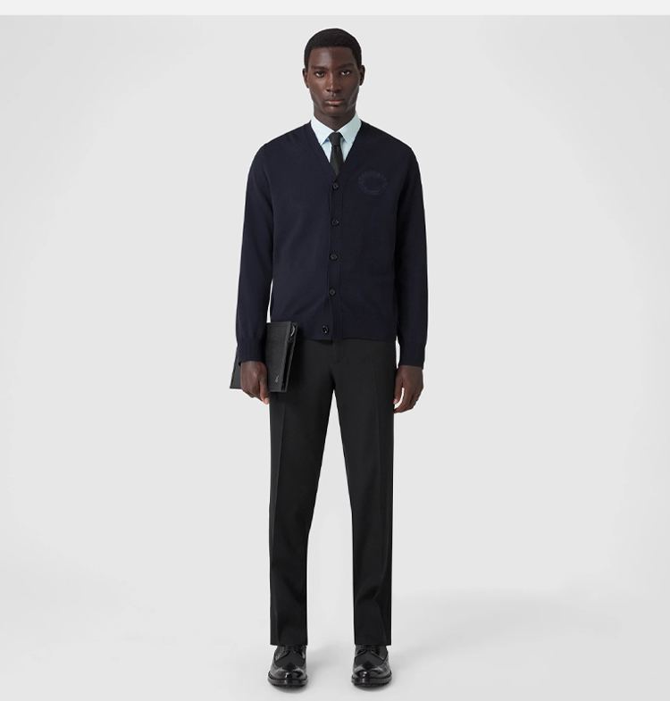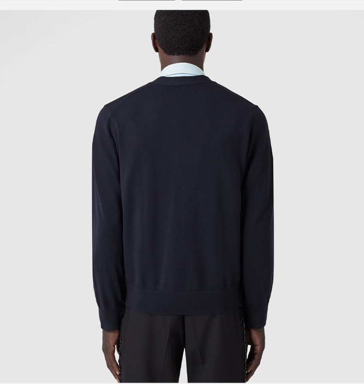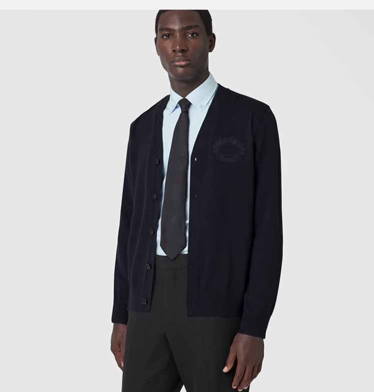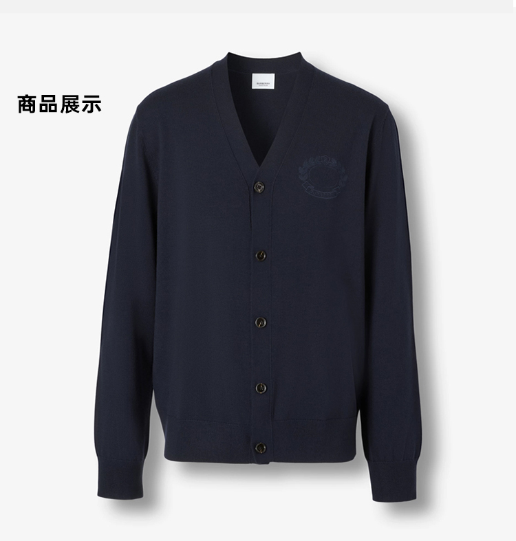 BURBERRY 巴宝莉 男士橡树叶徽章刺绣羊毛开衫 蓝色 8063637 B3590