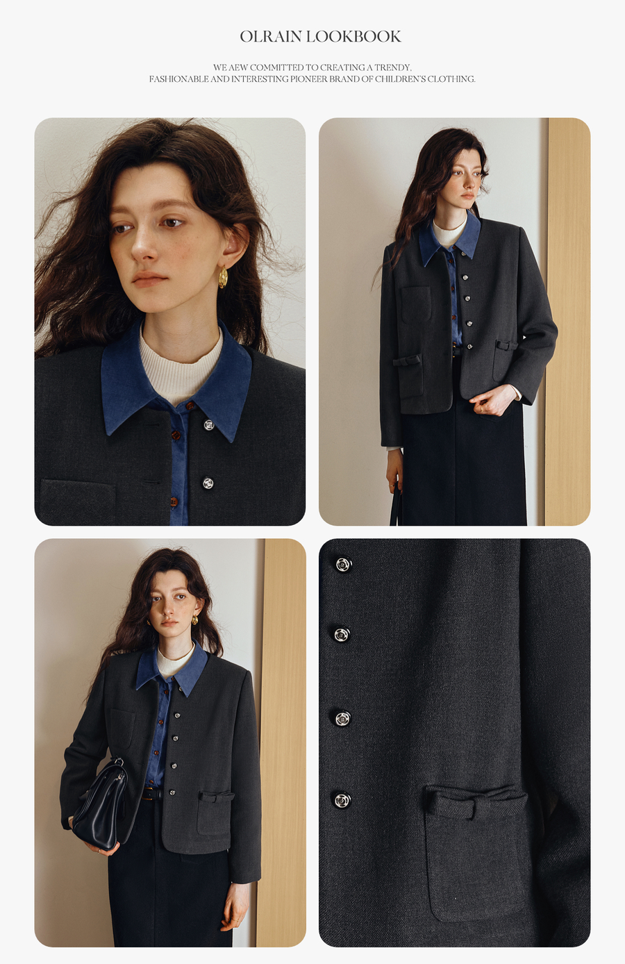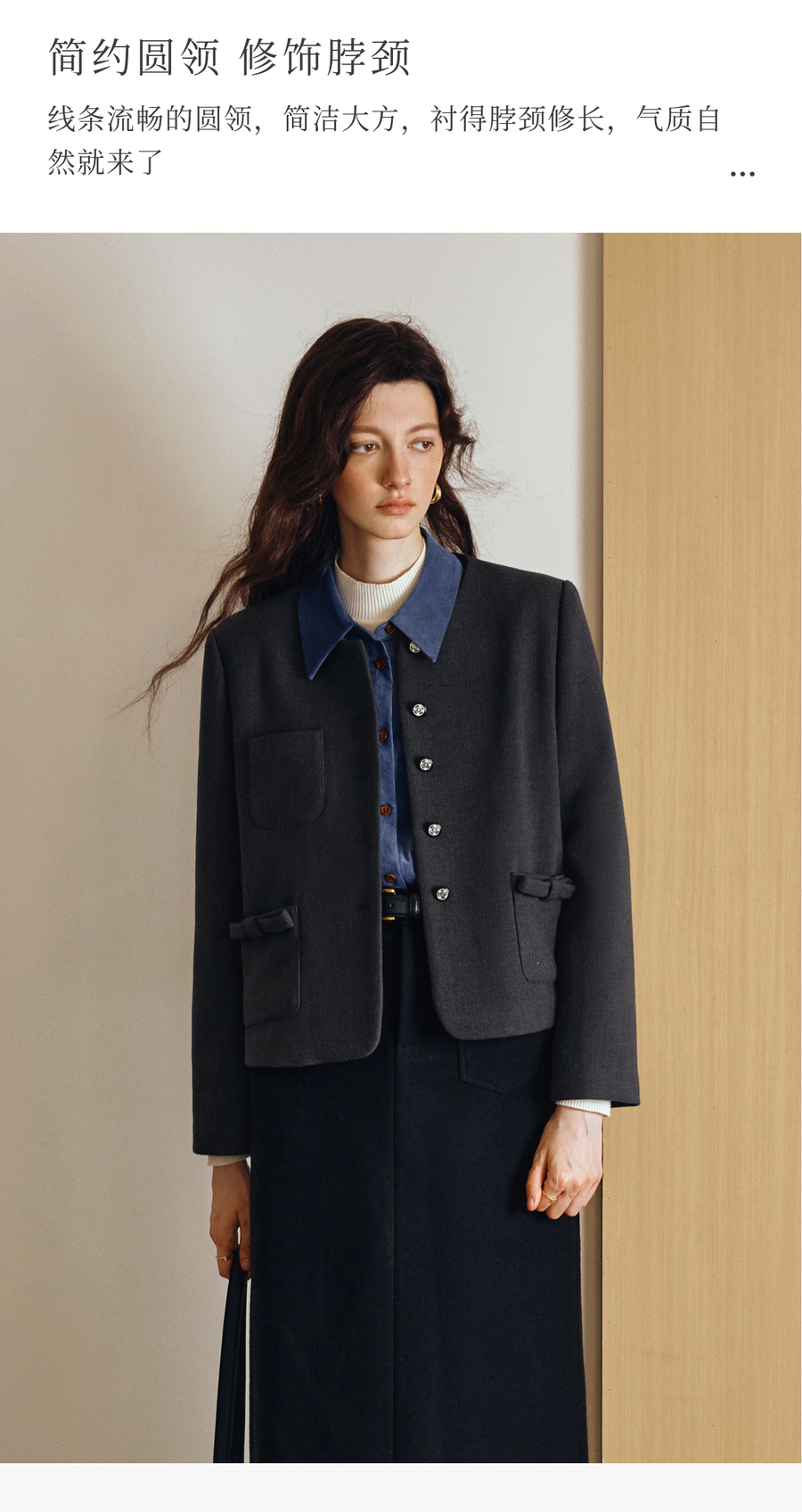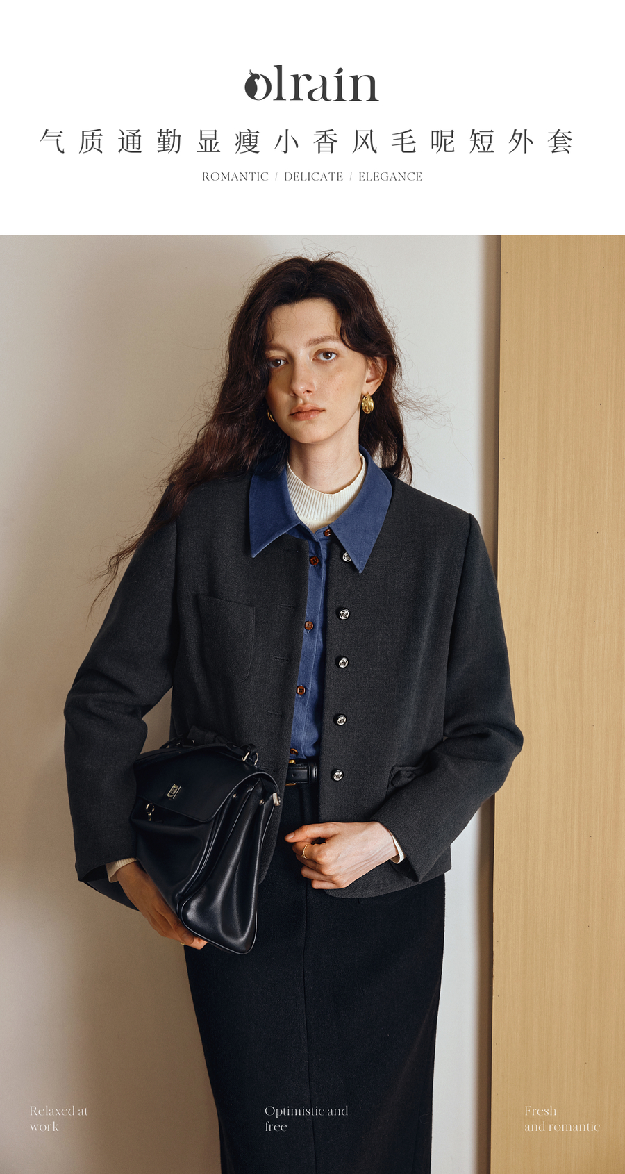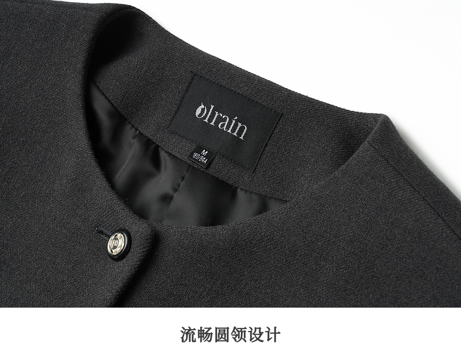 OLrain欧芮儿2025新款女秋季气质通勤显瘦圆领小香风毛呢短外套