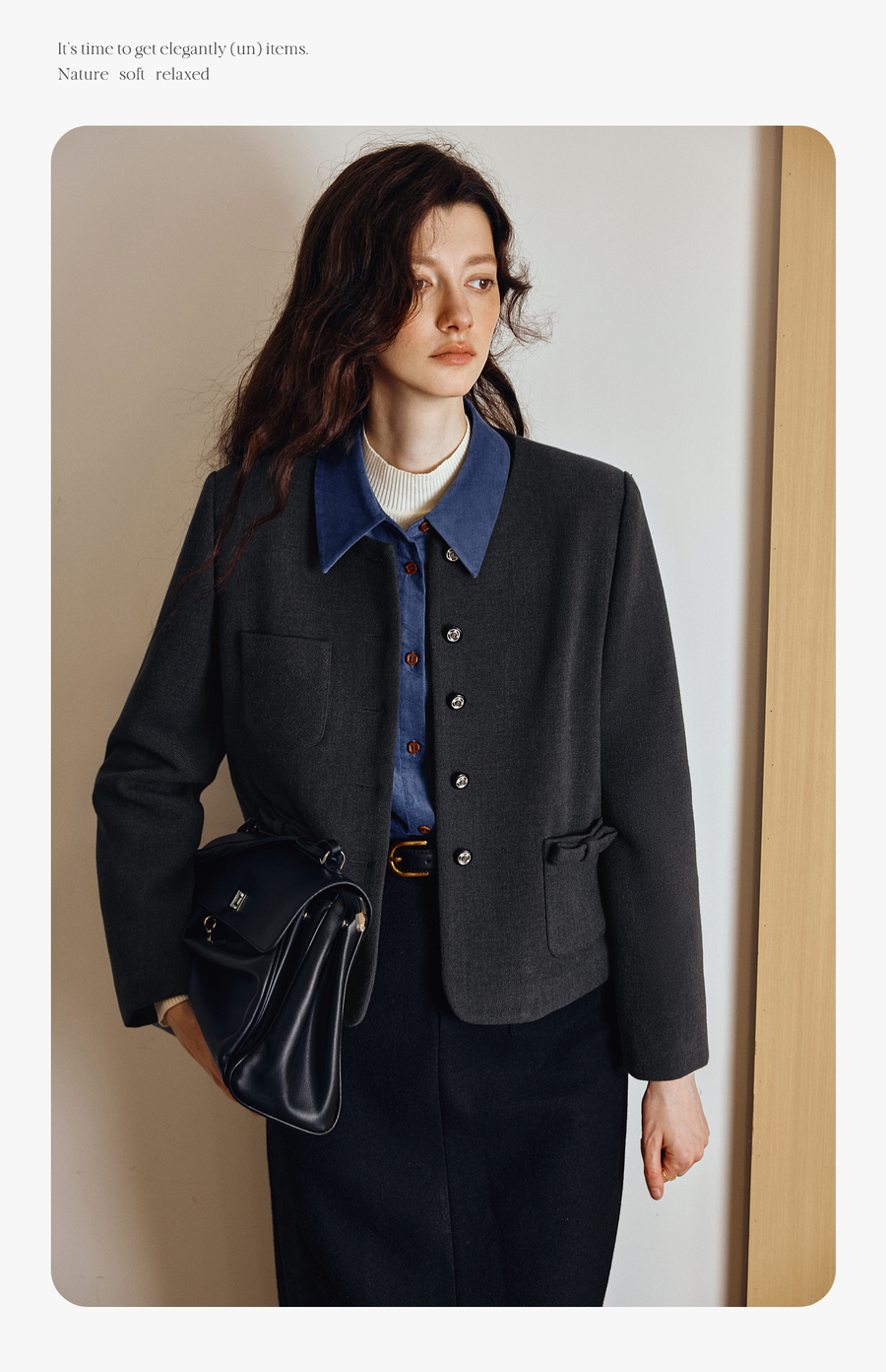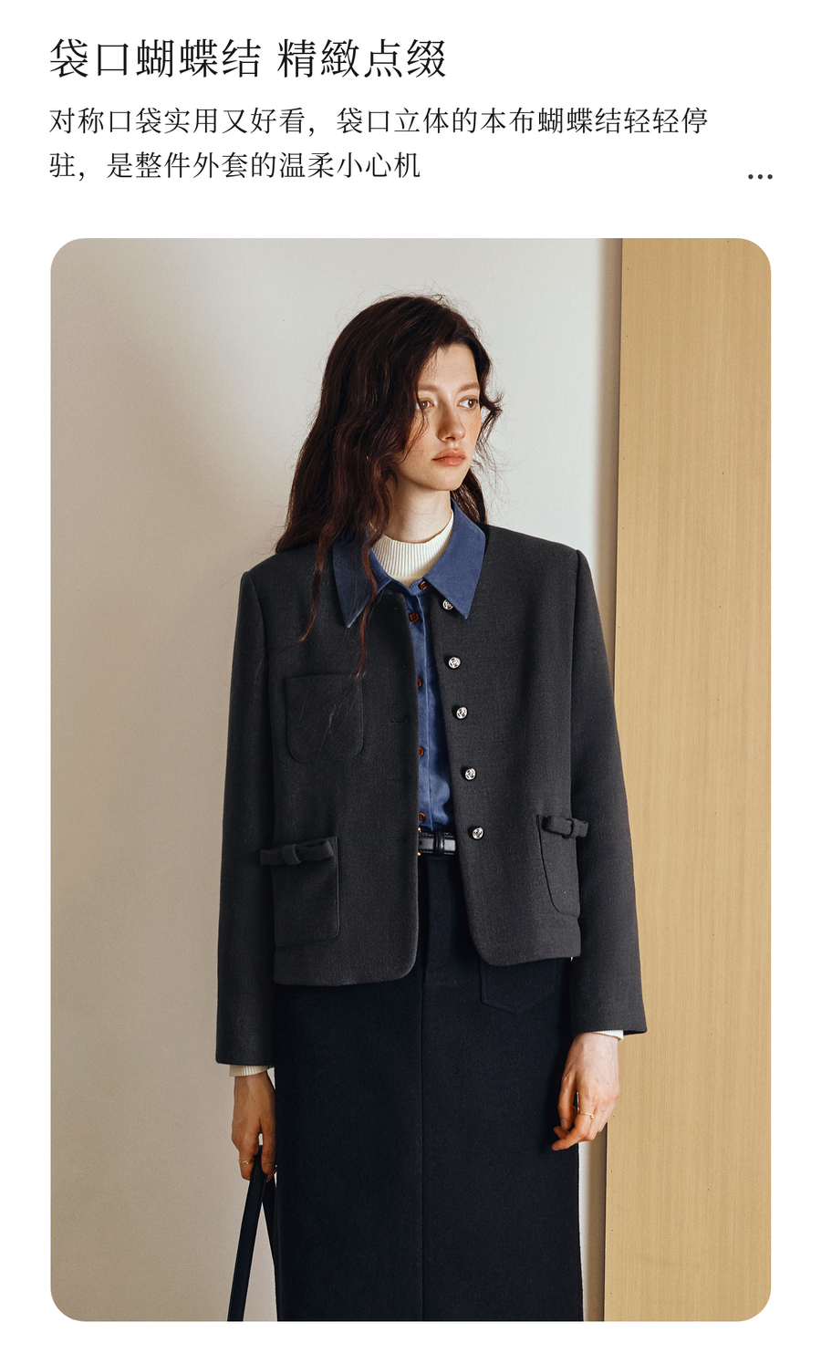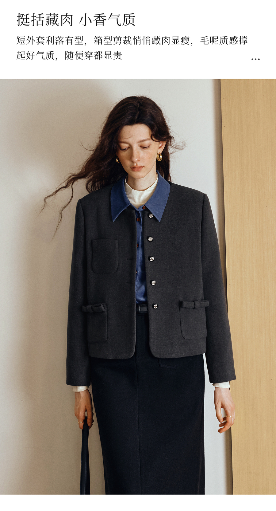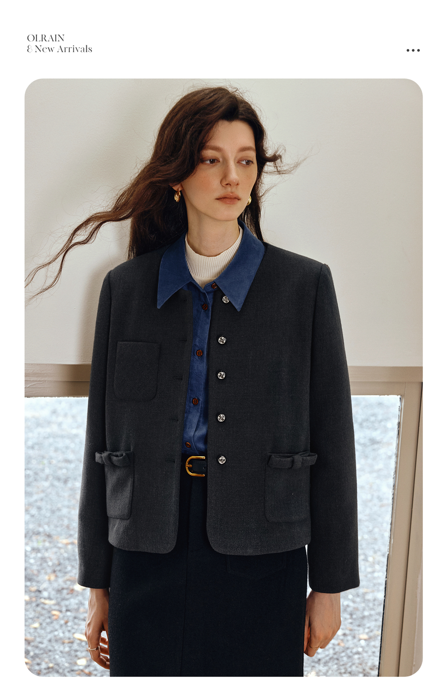 OLrain欧芮儿2025新款女秋季气质通勤显瘦圆领小香风毛呢短外套