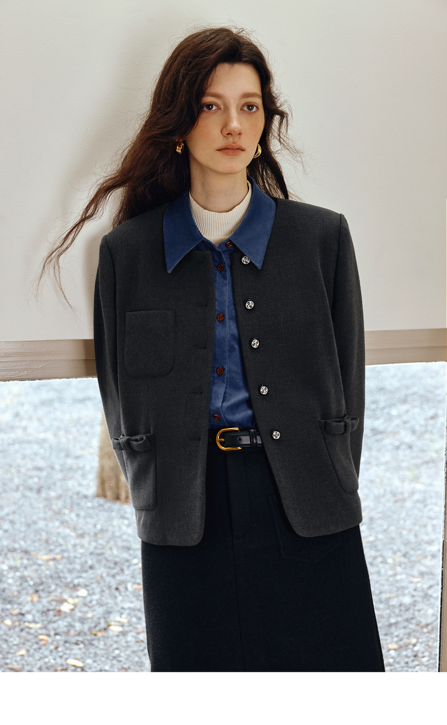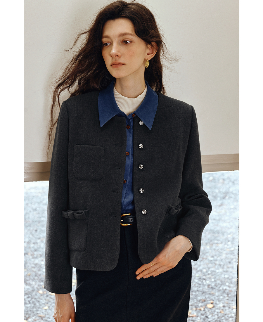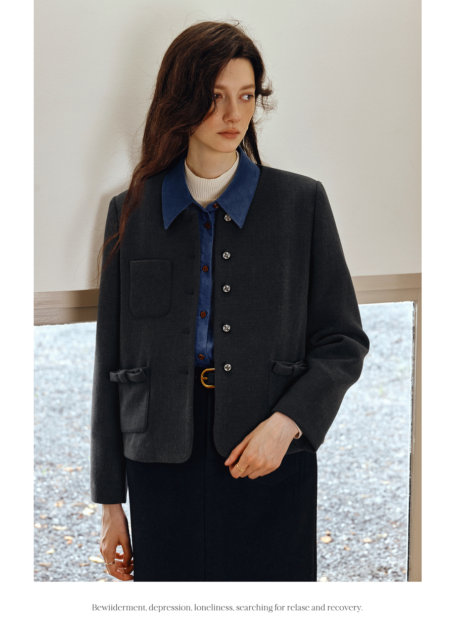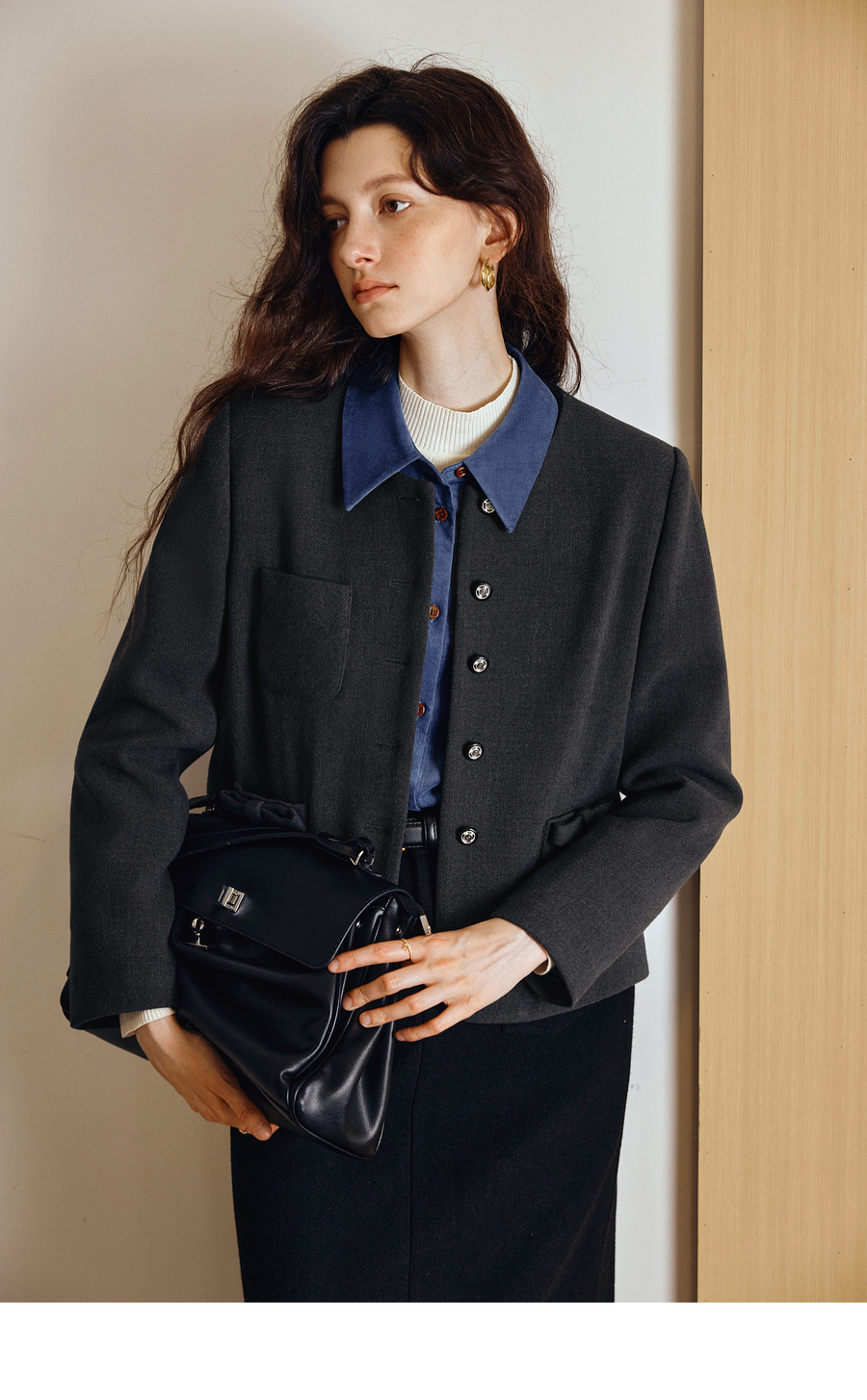 OLrain欧芮儿2025新款女秋季气质通勤显瘦圆领小香风毛呢短外套