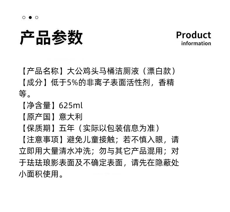 意大利进口大公鸡头马桶洁厕液625ml