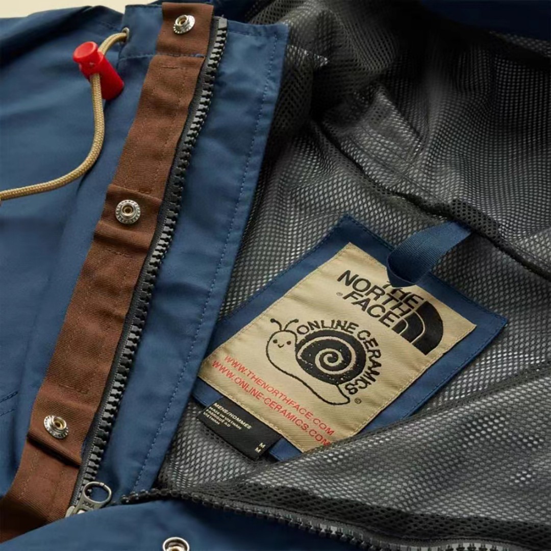 THE NORTH FACE与 ONLINE联名款冲锋衣,将户外功能性与时尚元素结合,打造别类的都市户外风格。