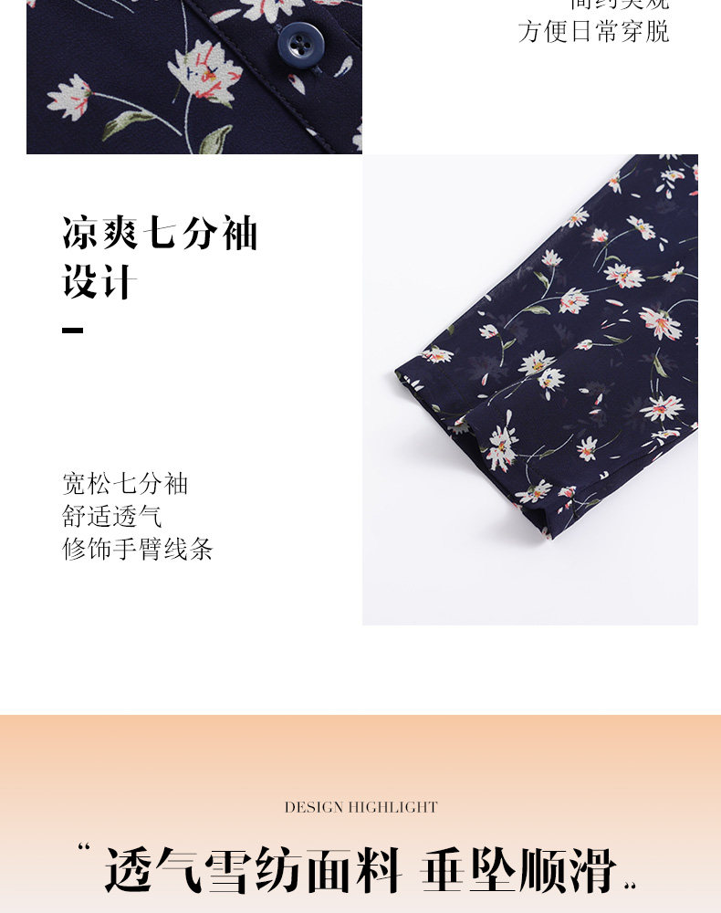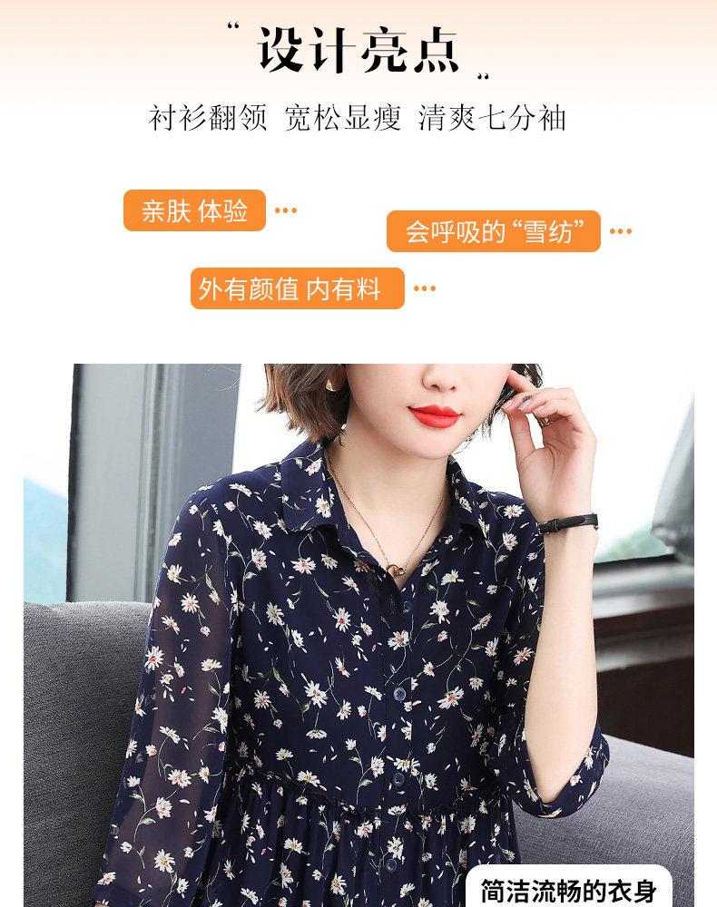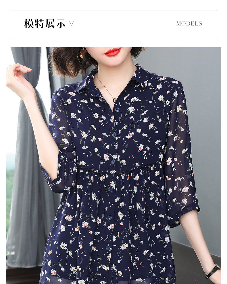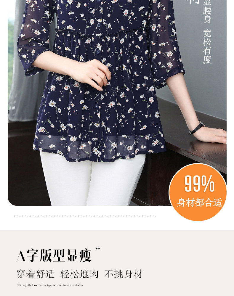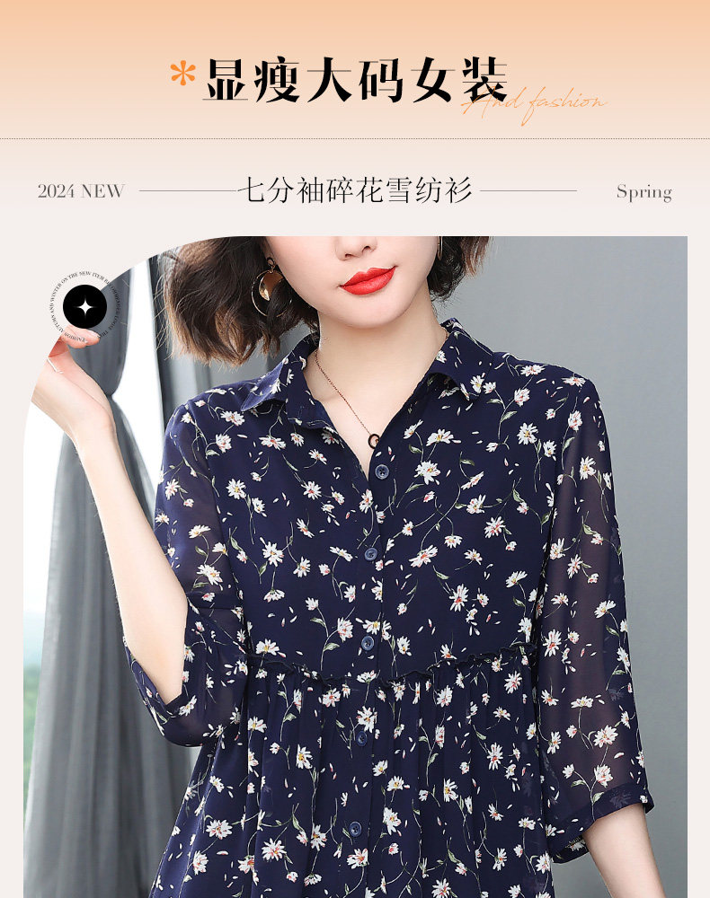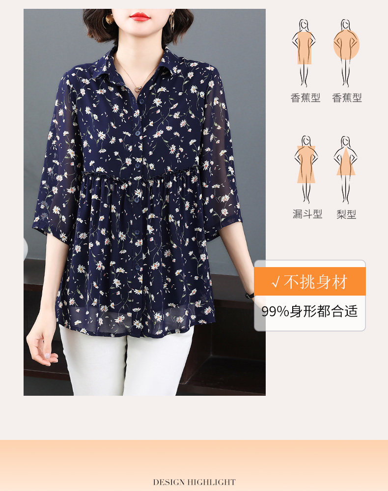 中袖雪纺衫女夏季2026年新款碎花女装上衣中年妈妈七分袖衬衫宽松