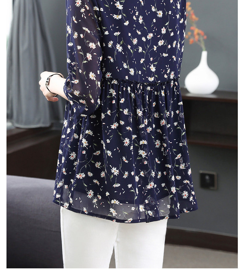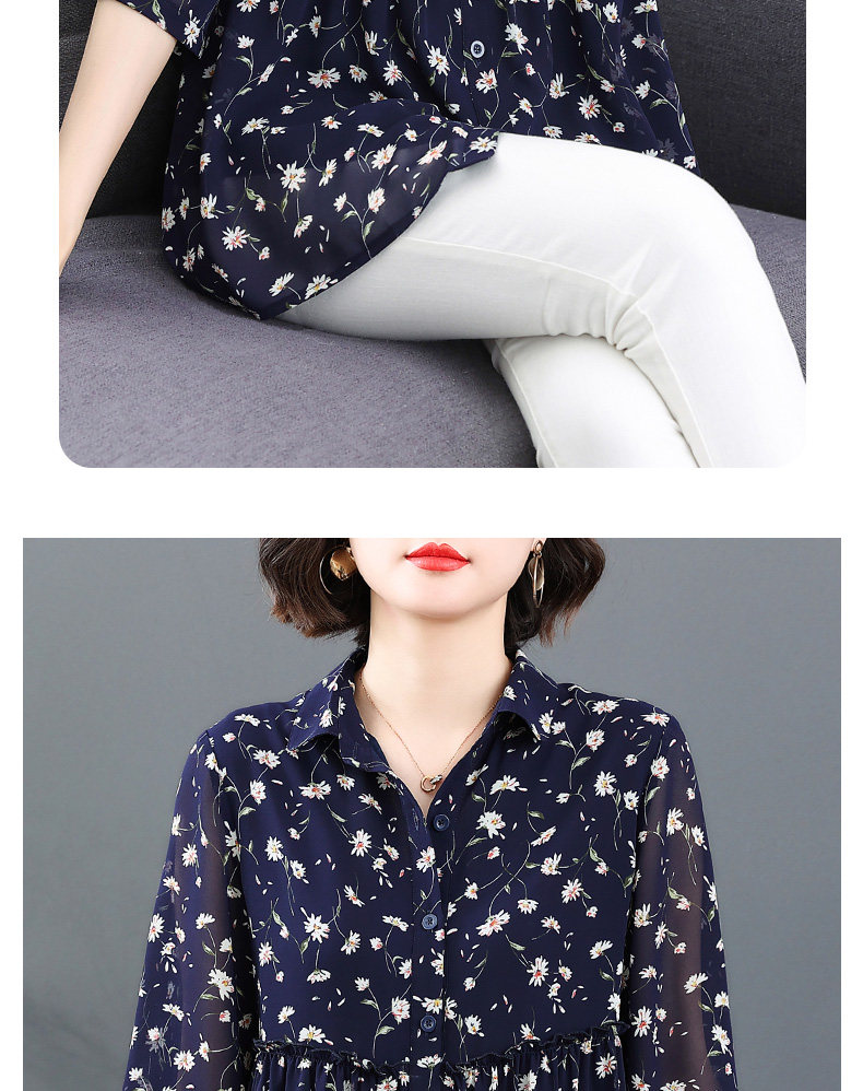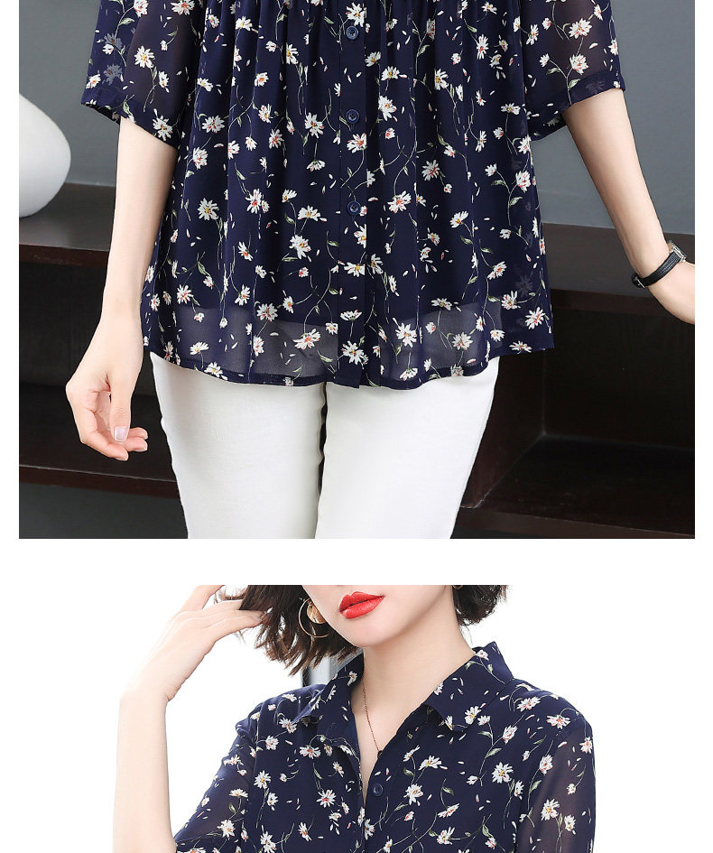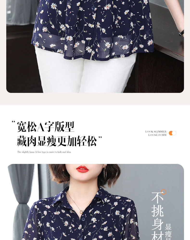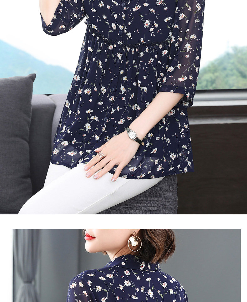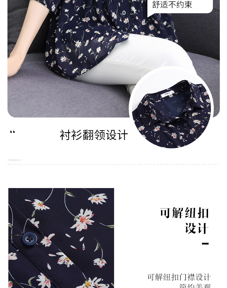 中袖雪纺衫女夏季2026年新款碎花女装上衣中年妈妈七分袖衬衫宽松