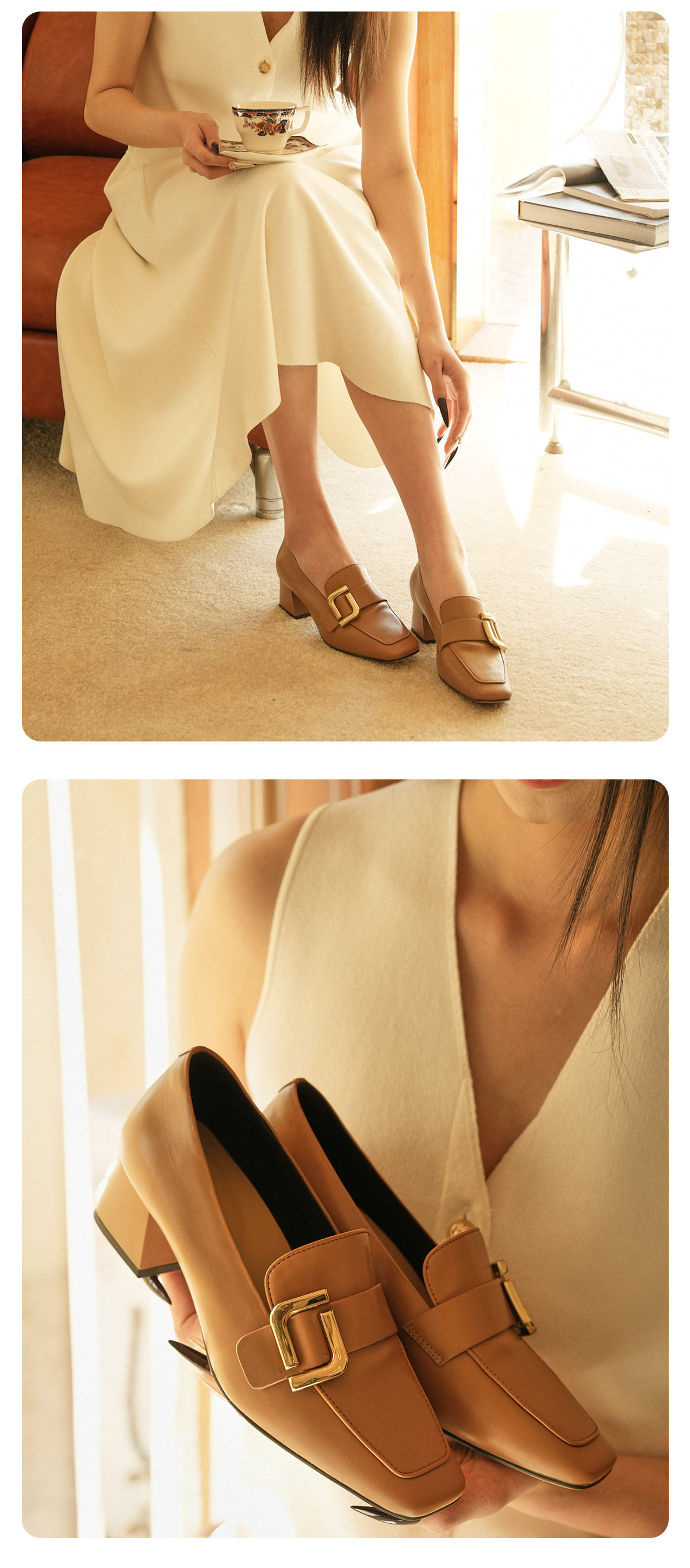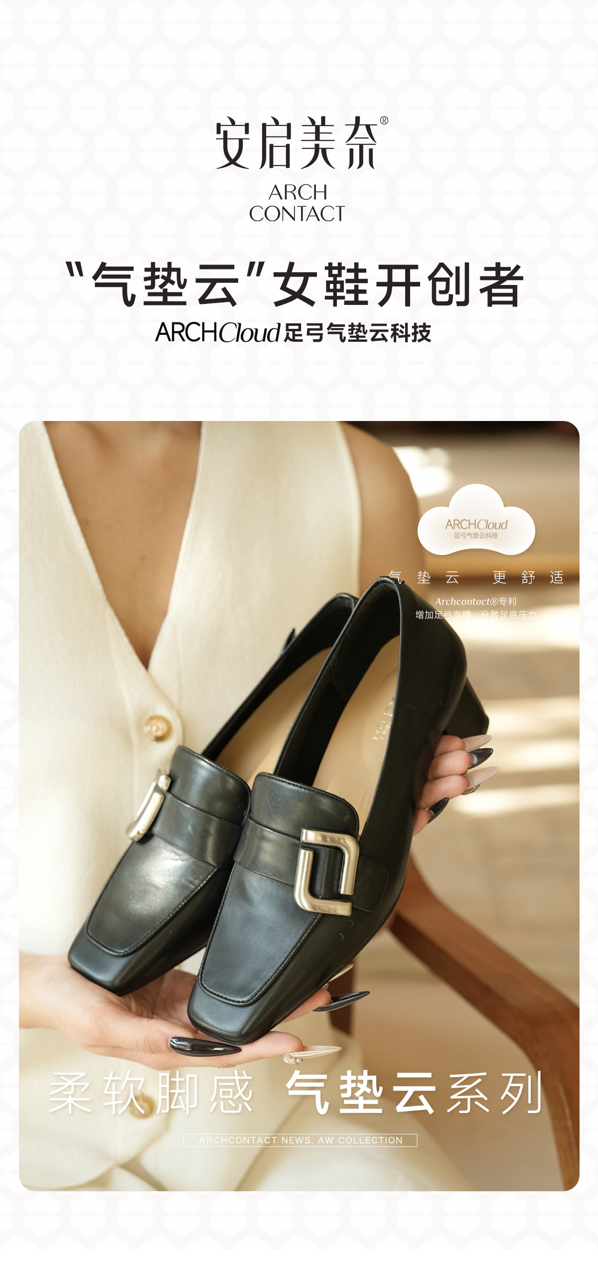 ARCHCONTACT安启美奈气垫云胎牛皮法式英伦风粗跟小皮鞋53011