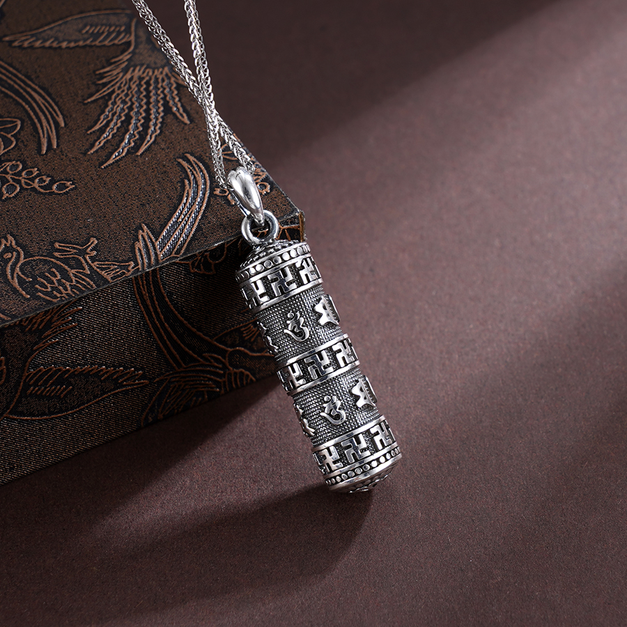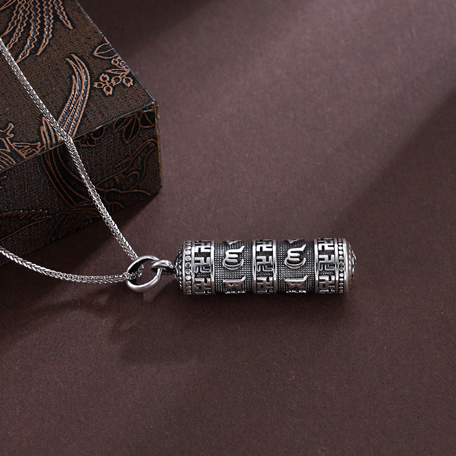 【寓意】:六字真言,内涵丰富,奥秘无穷,吊坠以其为灵感设计,应用錾刻、仿古工艺打造,灵动巧妙,随身佩戴,佛法加持,吉祥如意。