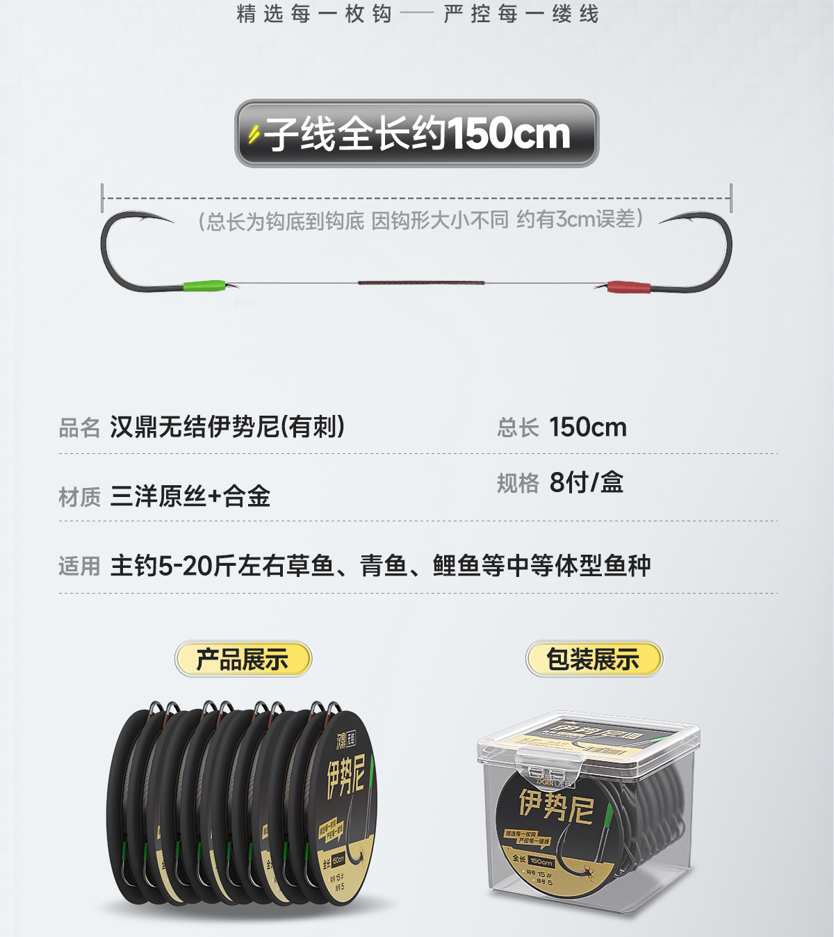 汉鼎无结伊势尼子线双钩湖库大物青草鱼钩巨物加长子线双钩成品钩