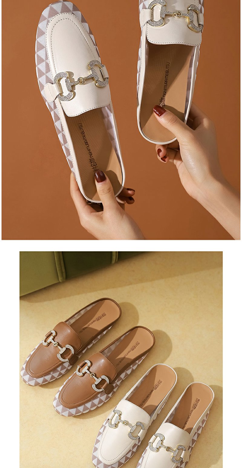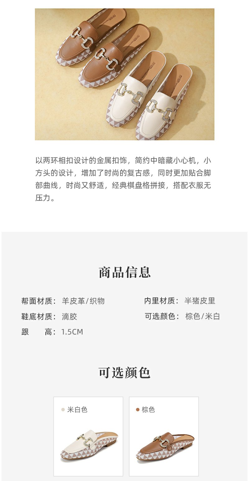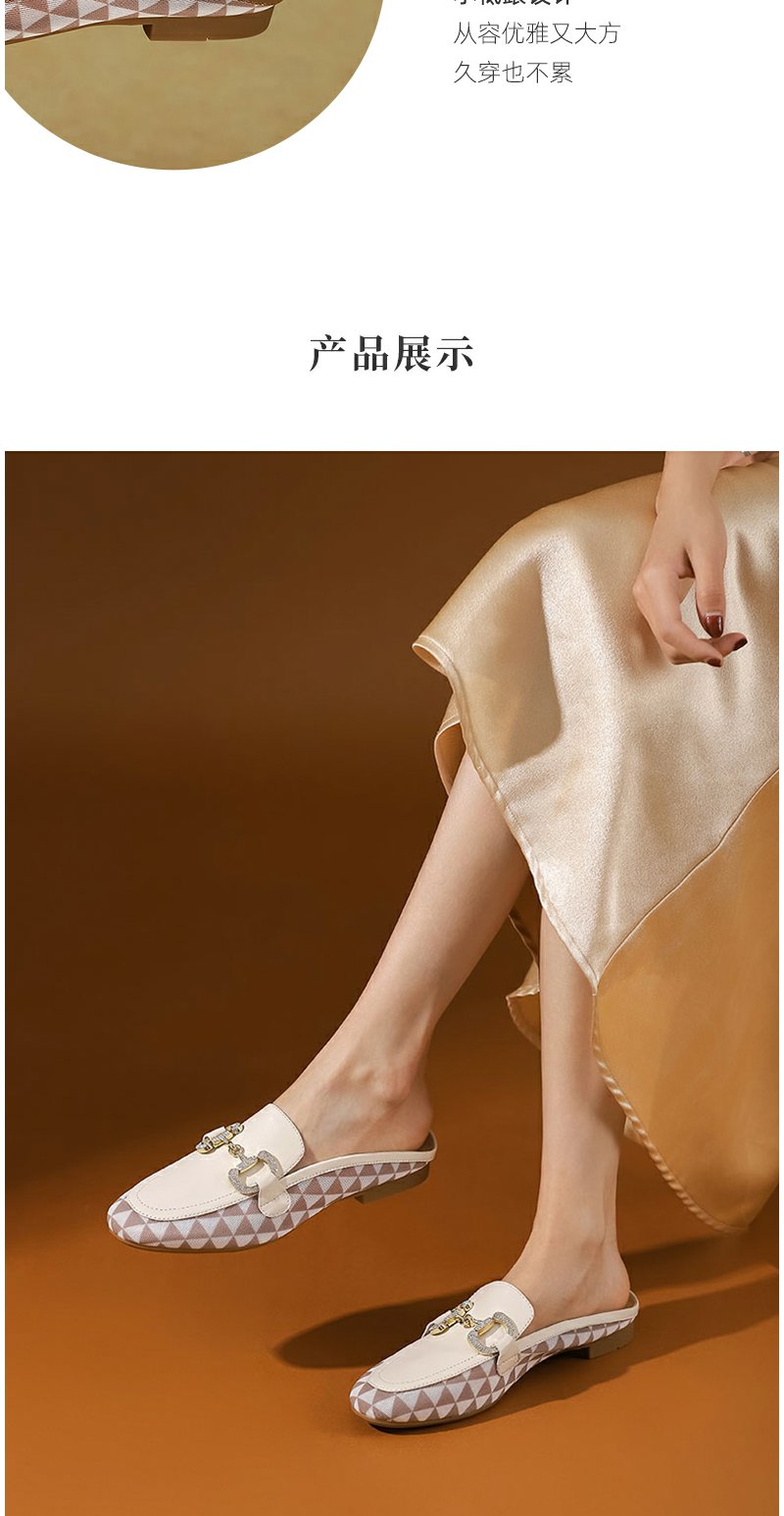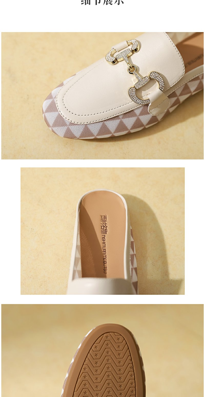 西村名物穆勒拖棋盘格女鞋法式包头拖鞋真皮2022夏季新款11741